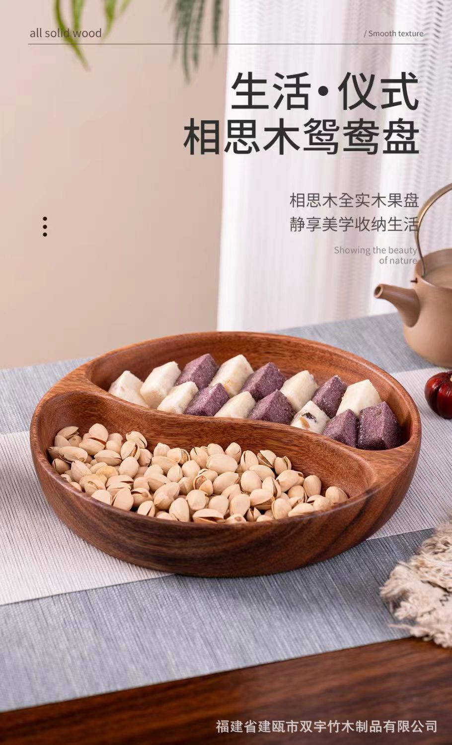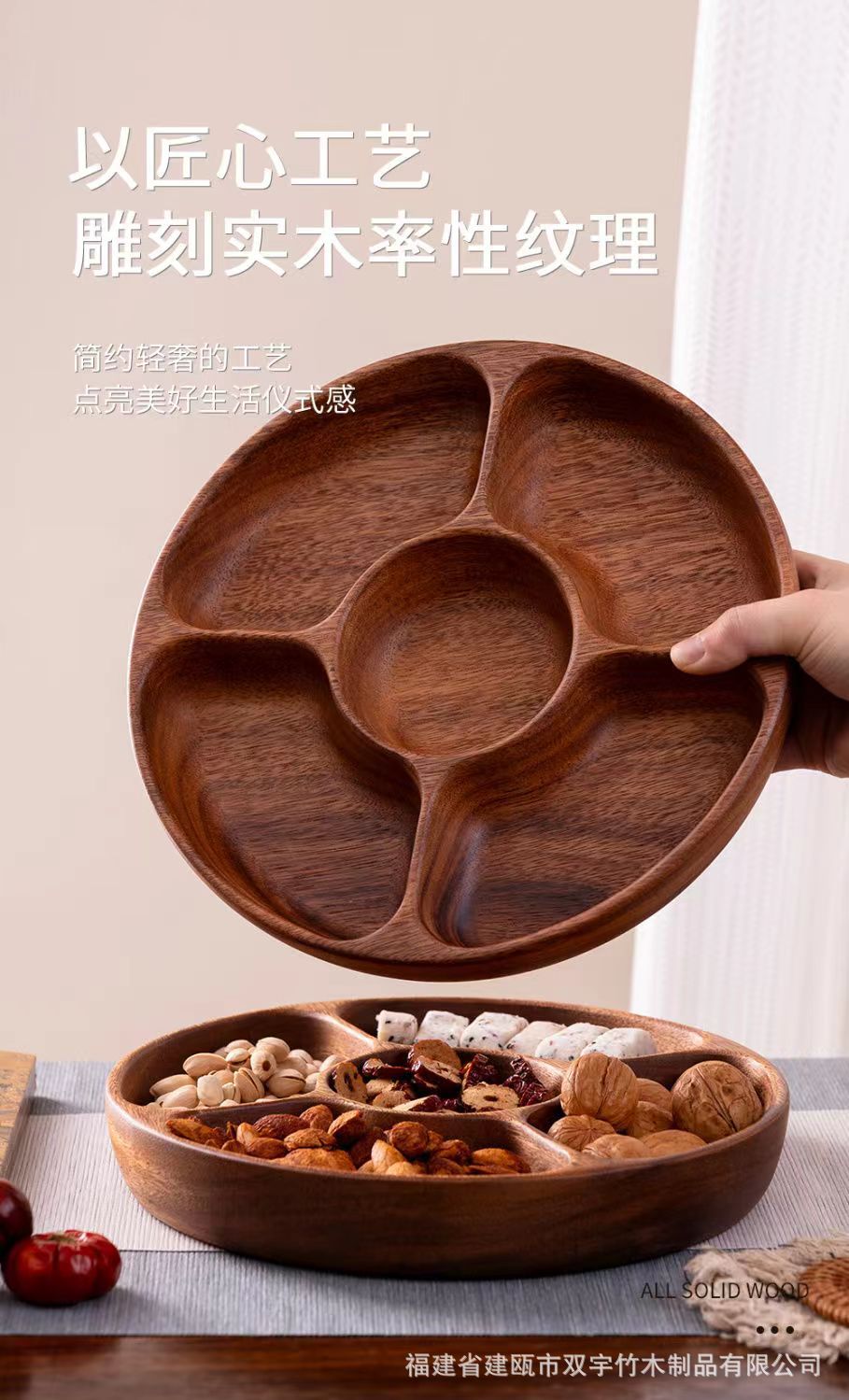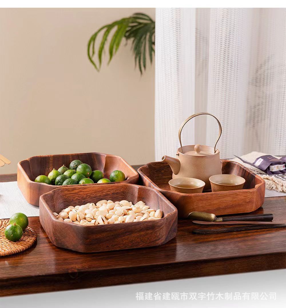 호두나무 나무 트레이 거실 원목 간식 케이크 차 소품 작은 원형 트레이 차 트레이 식기 트레이 도매 중국풍스토어 가기
