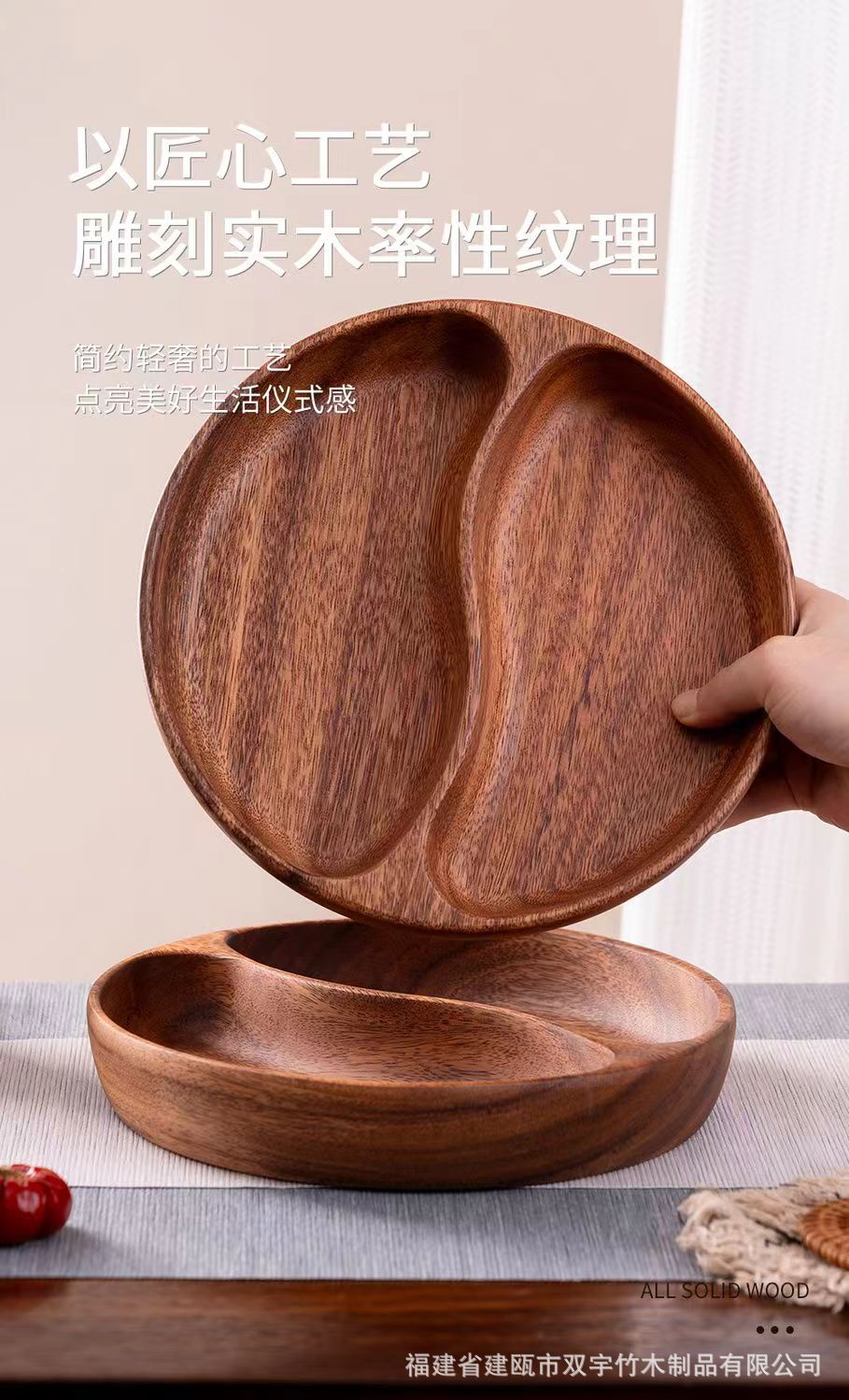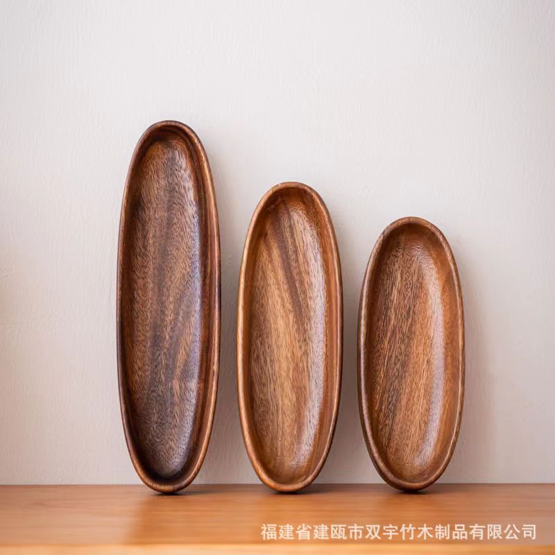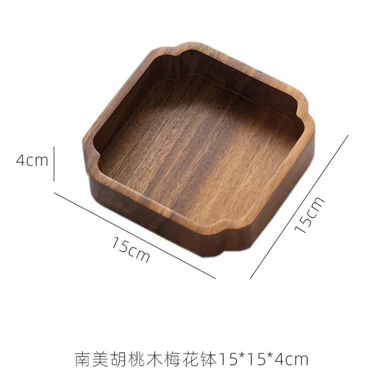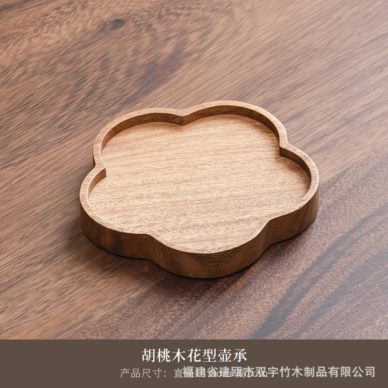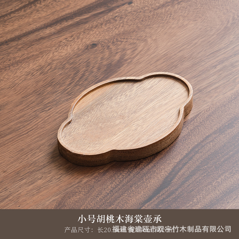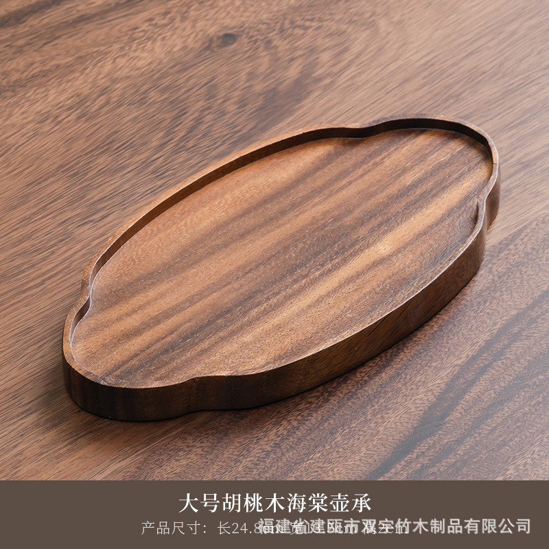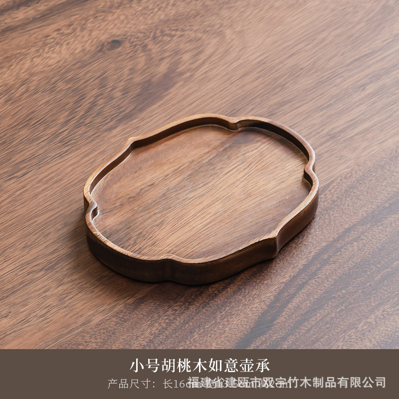 호두나무 나무 트레이 거실 원목 간식 케이크 차 소품 작은 원형 트레이 차 트레이 식기 트레이 도매 중국풍