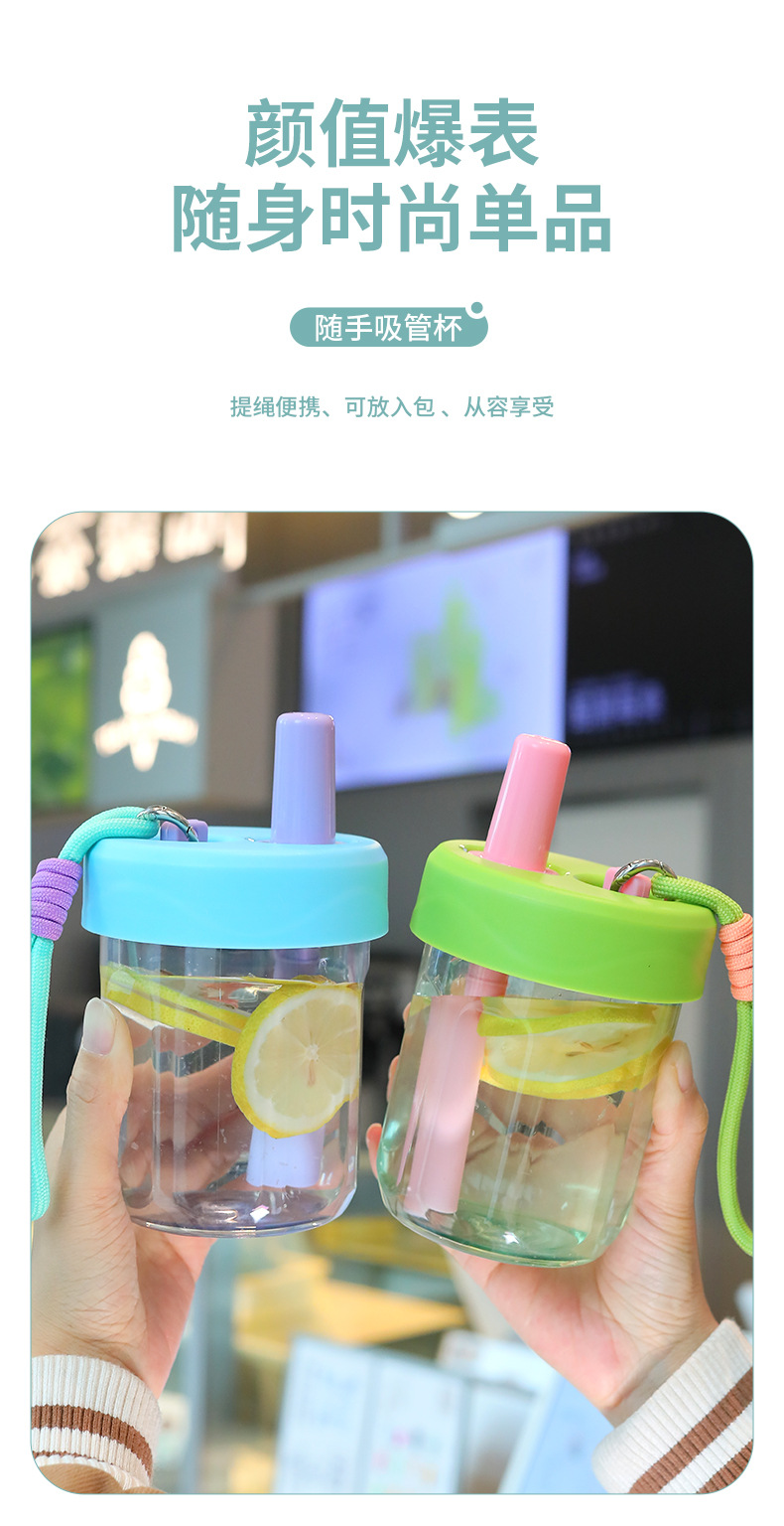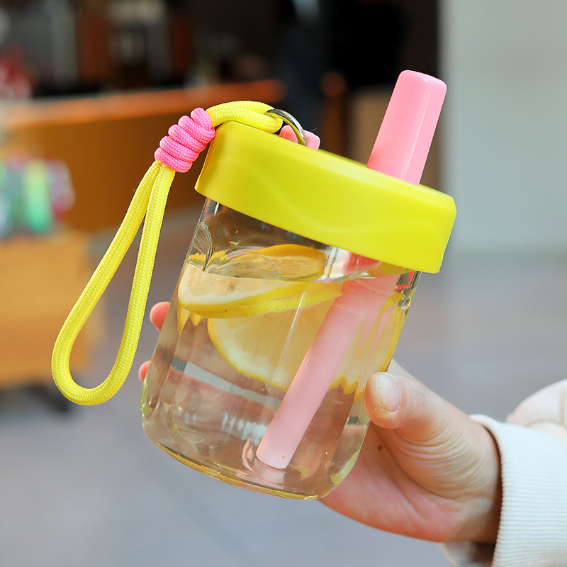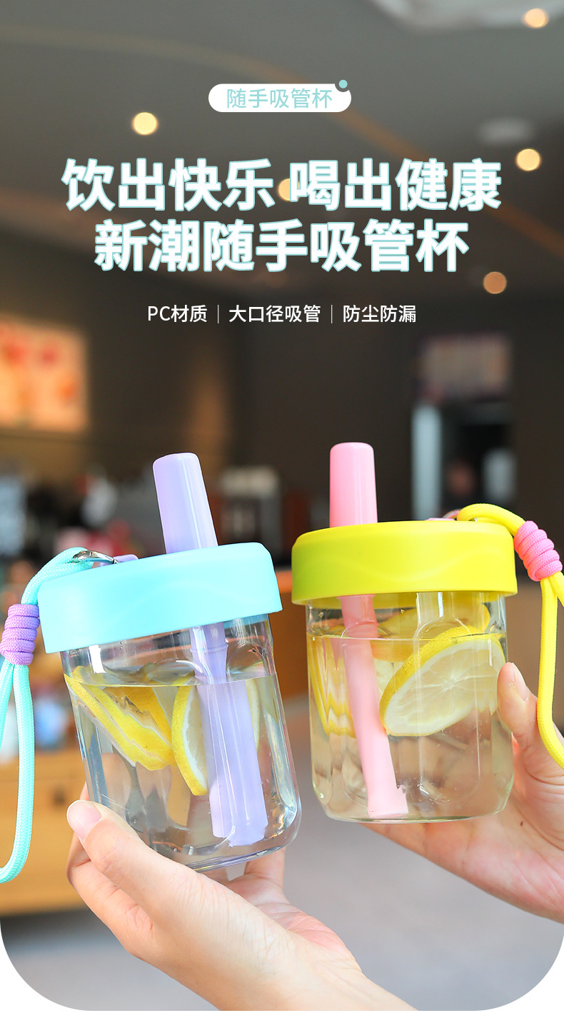 새로운 스타일의 소녀의 멋진 인터넷 연예인 플라스틱 실리콘 밀짚 컵 야외 휴대용 로프 차 분리 컵
