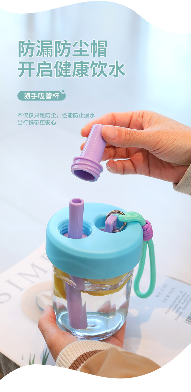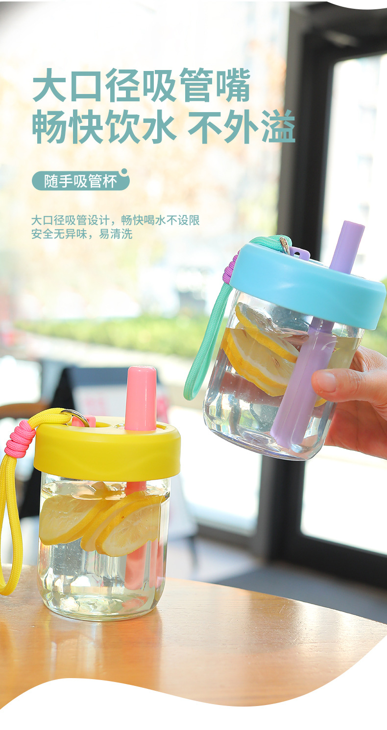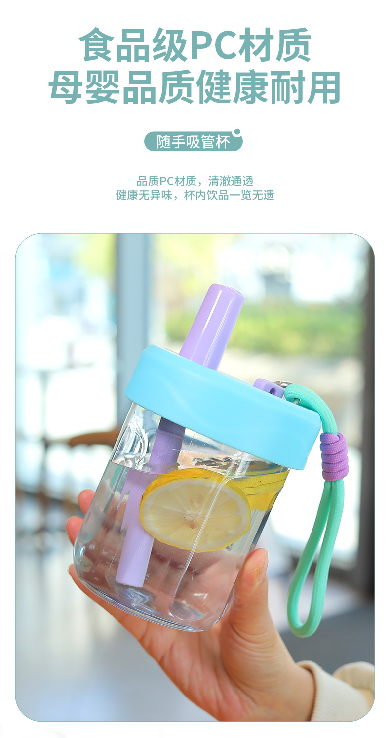 새로운 스타일의 소녀의 멋진 인터넷 연예인 플라스틱 실리콘 밀짚 컵 야외 휴대용 로프 차 분리 컵