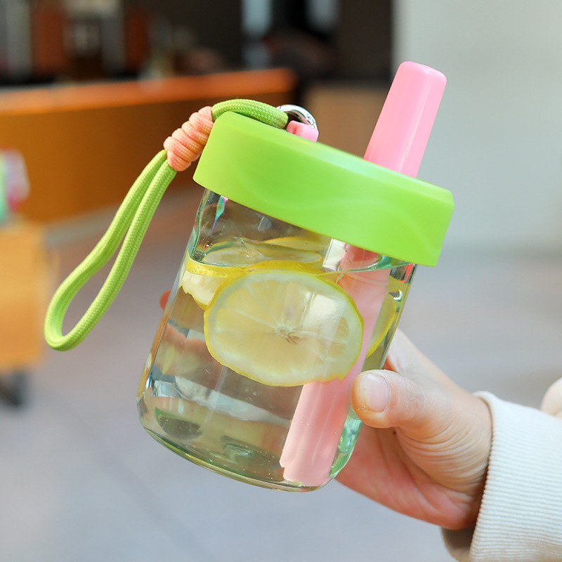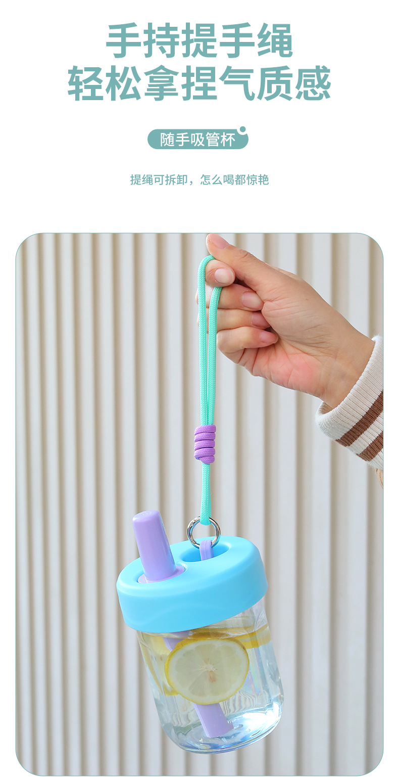 새로운 스타일의 소녀의 멋진 인터넷 연예인 플라스틱 실리콘 밀짚 컵 야외 휴대용 로프 차 분리 컵스토어 가기