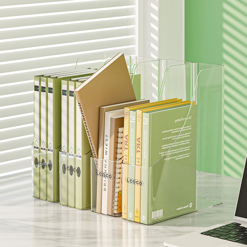 책상 보관 상자 사무실 데스크톱 책 텍스트 저장 학생 투명한 책 스탠드 간단한 마무리 유물 보관 랙