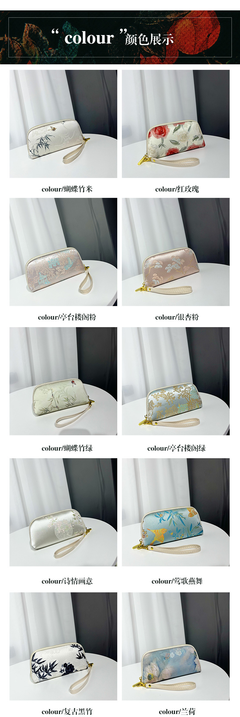 가방 여성 신년 중국 스타일 여성 가방 Xiangyun 원사 클러치 백 휴대 전화 가방 국가 스타일 청삼 새로운 중국 클러치 백