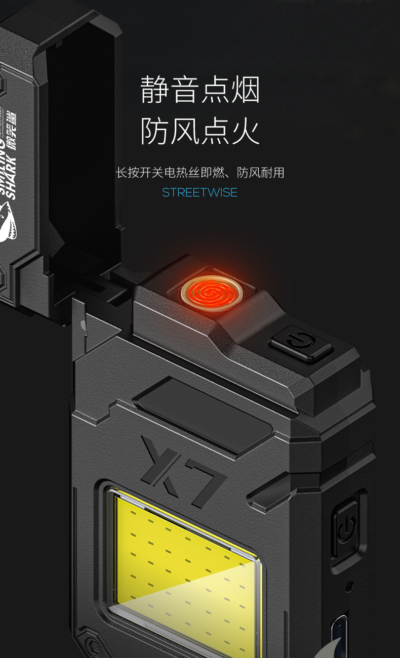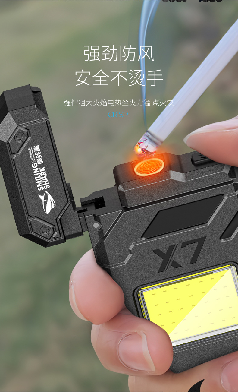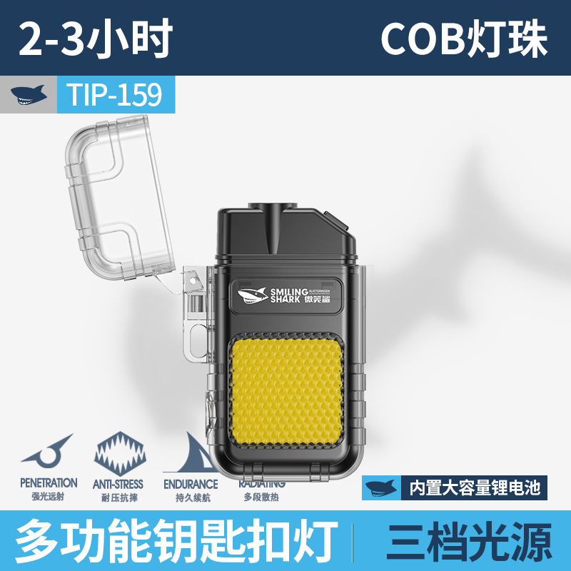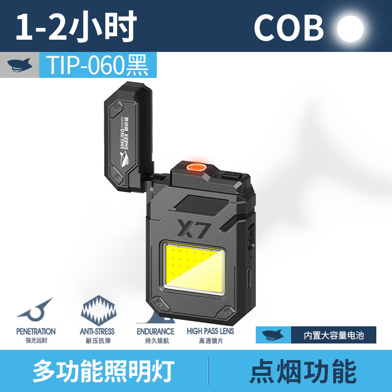 웃는 상어 다기능 키 체인 빛 전자 라이터 휴대용 작업 빛 COB 조명 손전등 담배