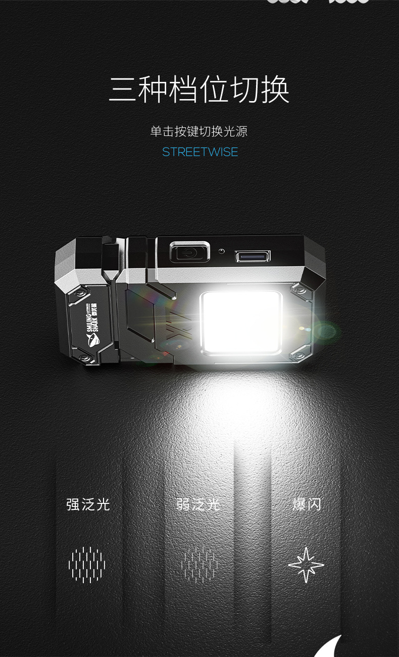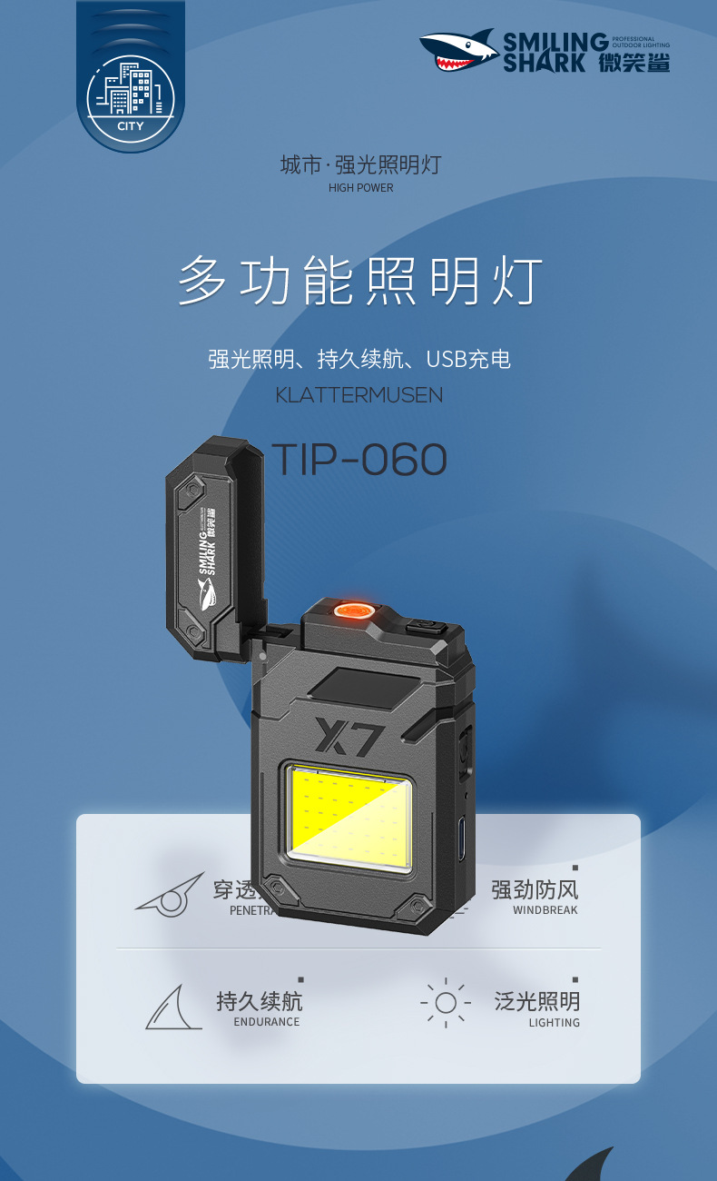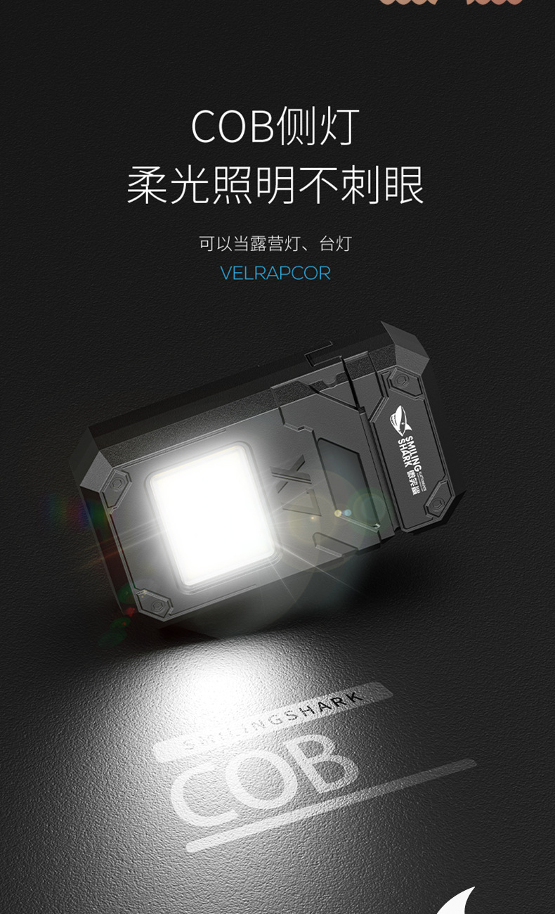 웃는 상어 다기능 키 체인 빛 전자 라이터 휴대용 작업 빛 COB 조명 손전등 담배