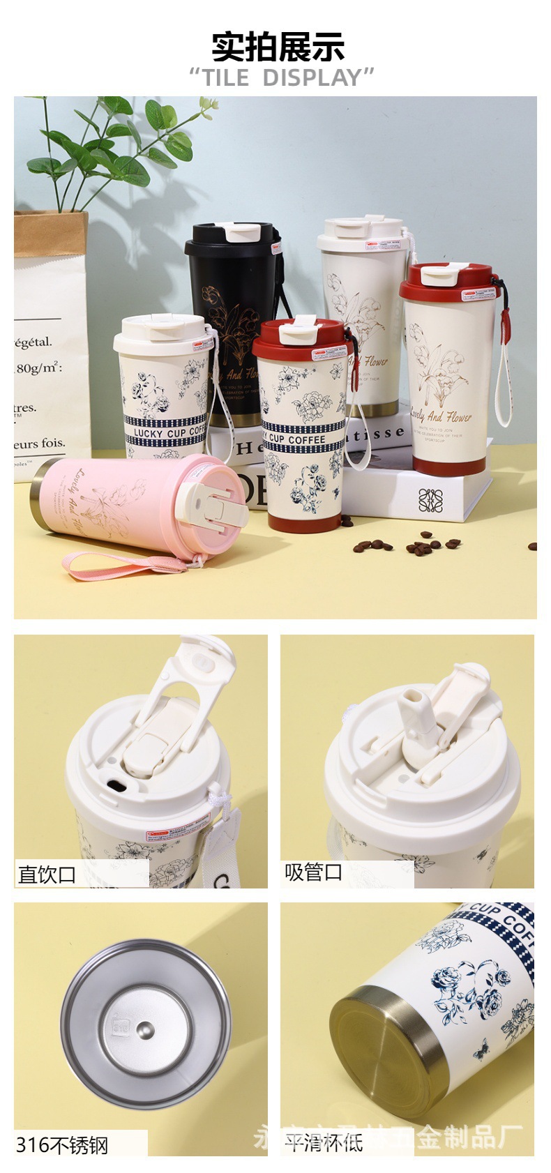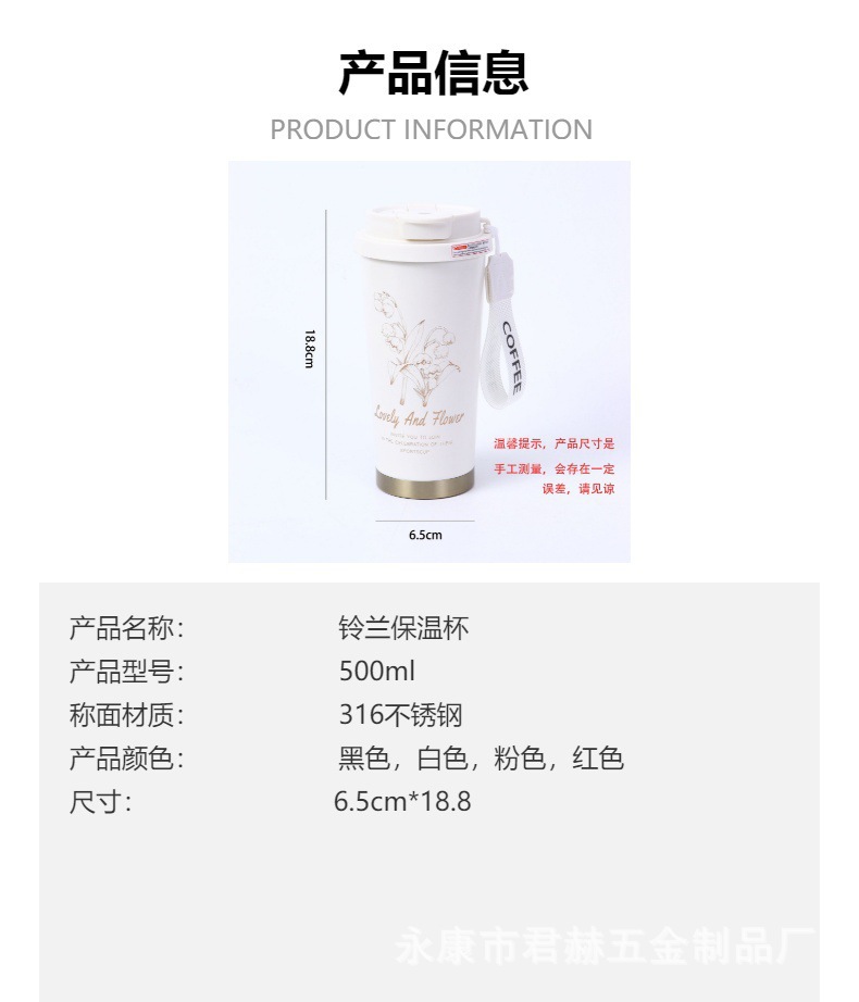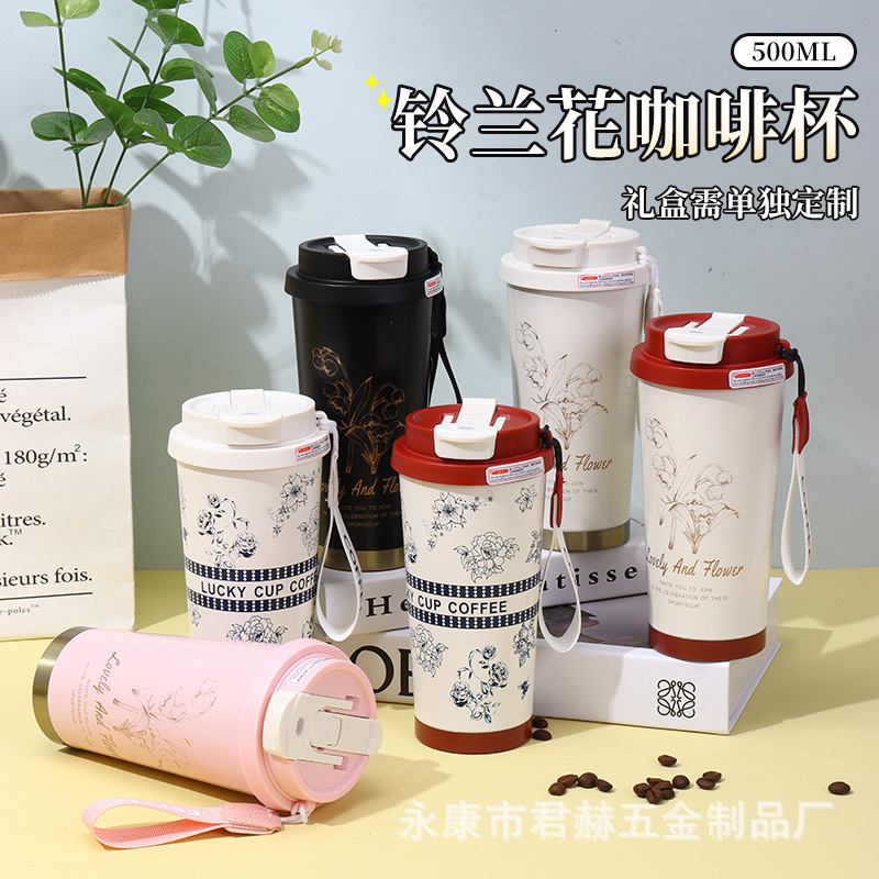 2024 라이너 릴리 밸리 커피 컵 316 스테인레스 스틸 더블 레이어 보온병 컵 높은 색상 가치 선물 컵 로고