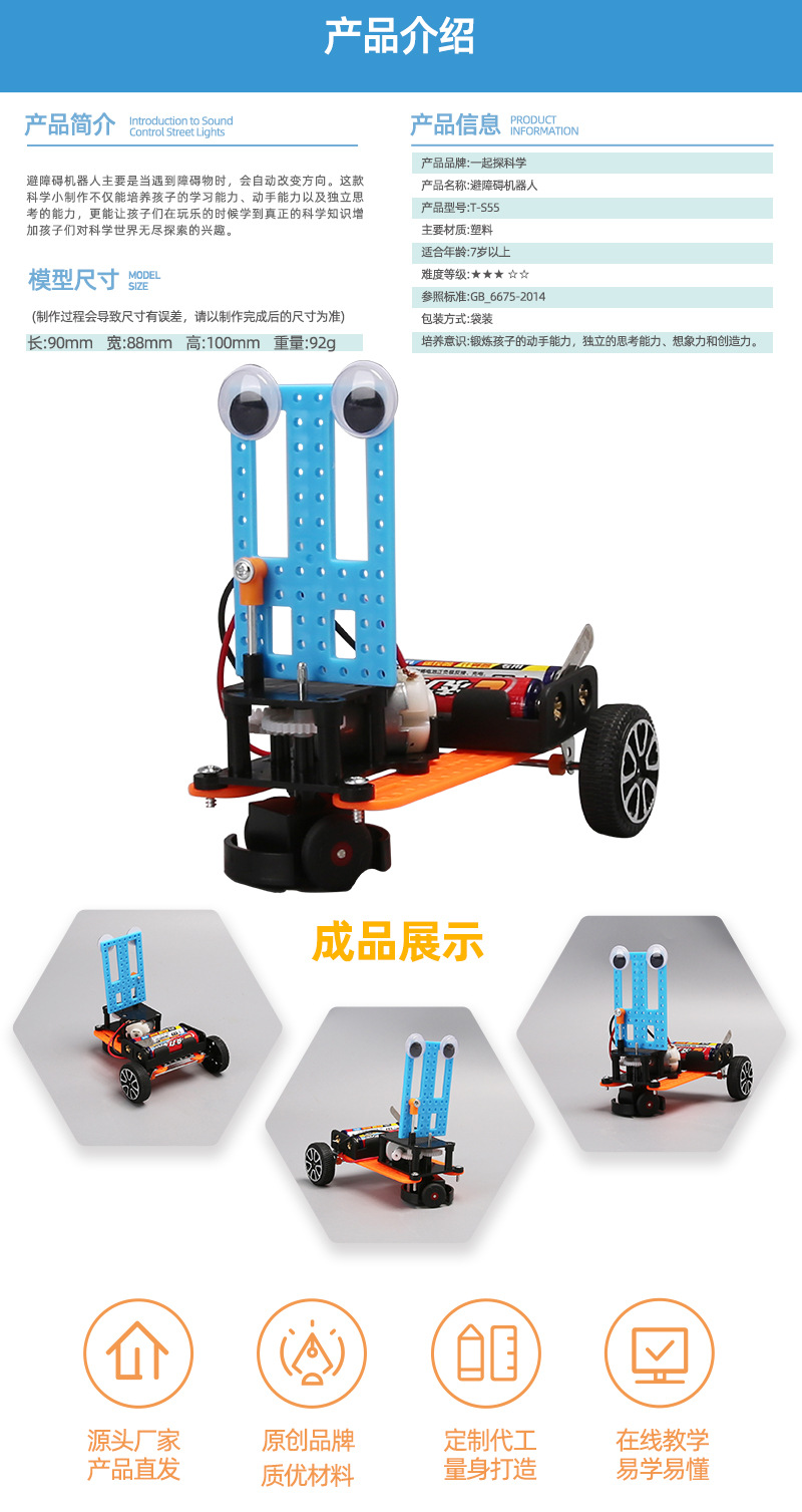장애물 회피 자동차 로봇 기술 작은 생산 어린이 과학 실험 교육 지원 작은 발명 diy 수제 재료 패키지스토어 가기