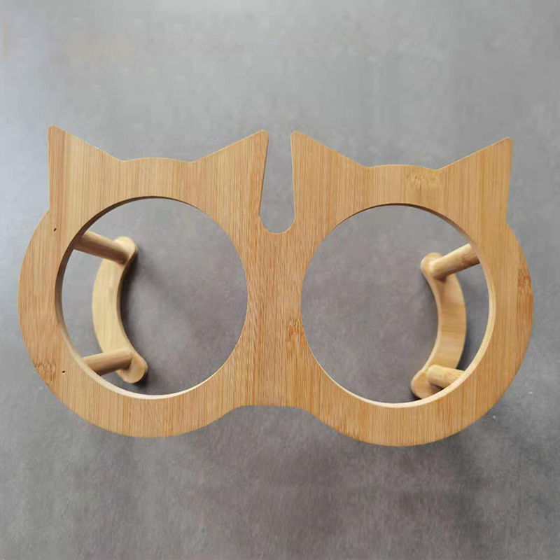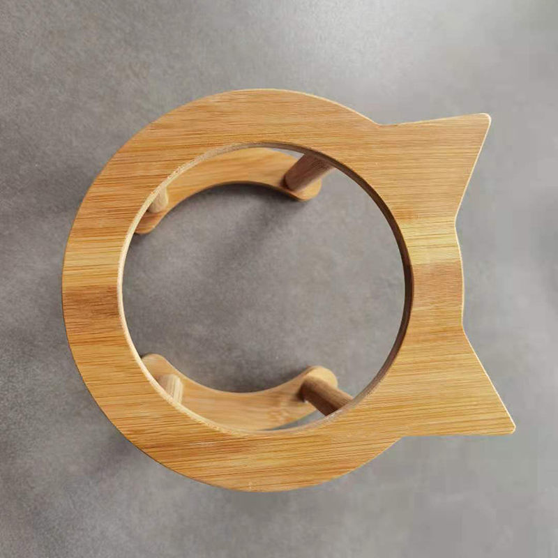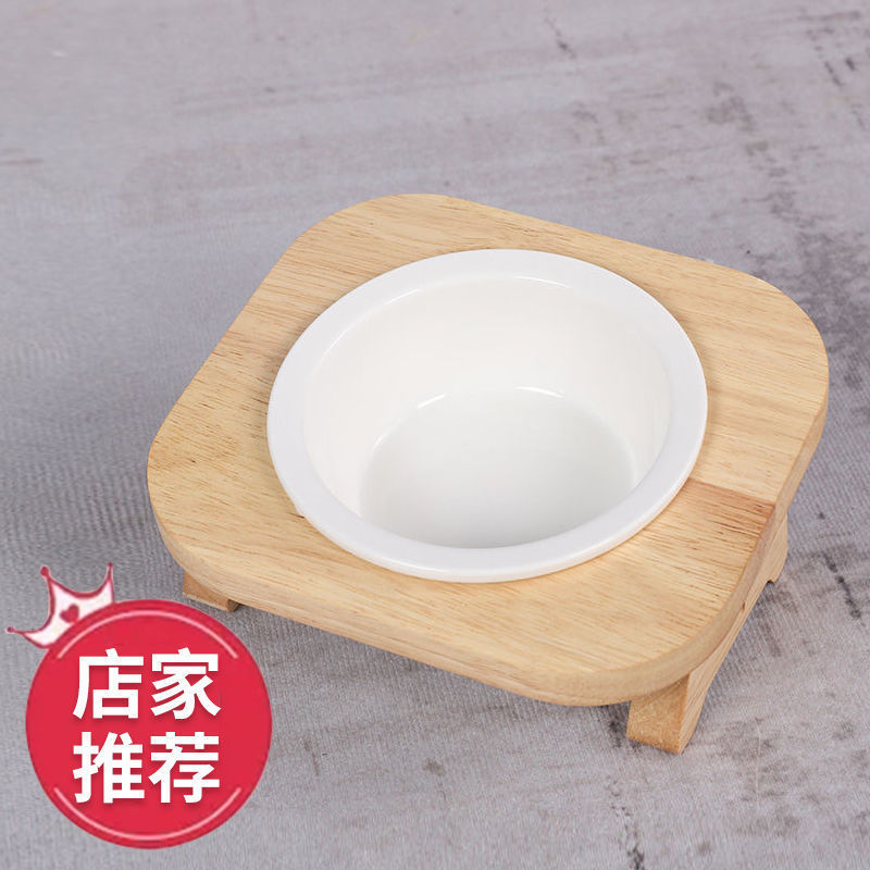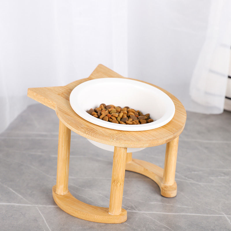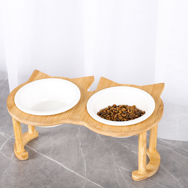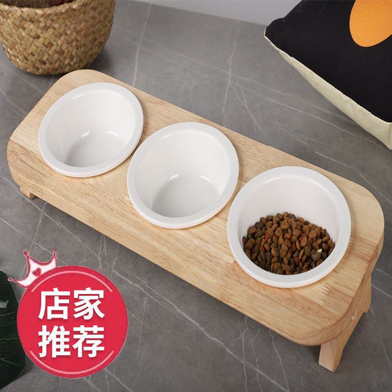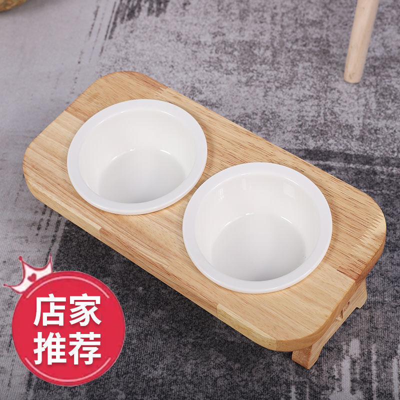 단단한 나무 통합 이중 그릇 경사 사발 높은 발 목 보호 고양이 분지 애완 동물 용품 그릇 랙 세라믹 고양이 그릇 도매스토어 가기