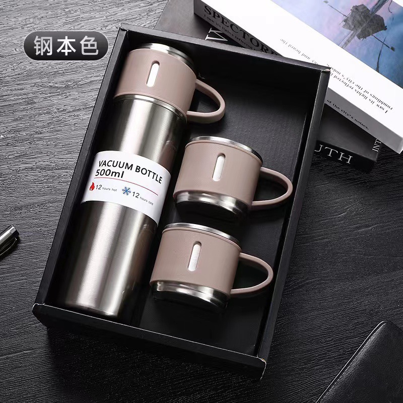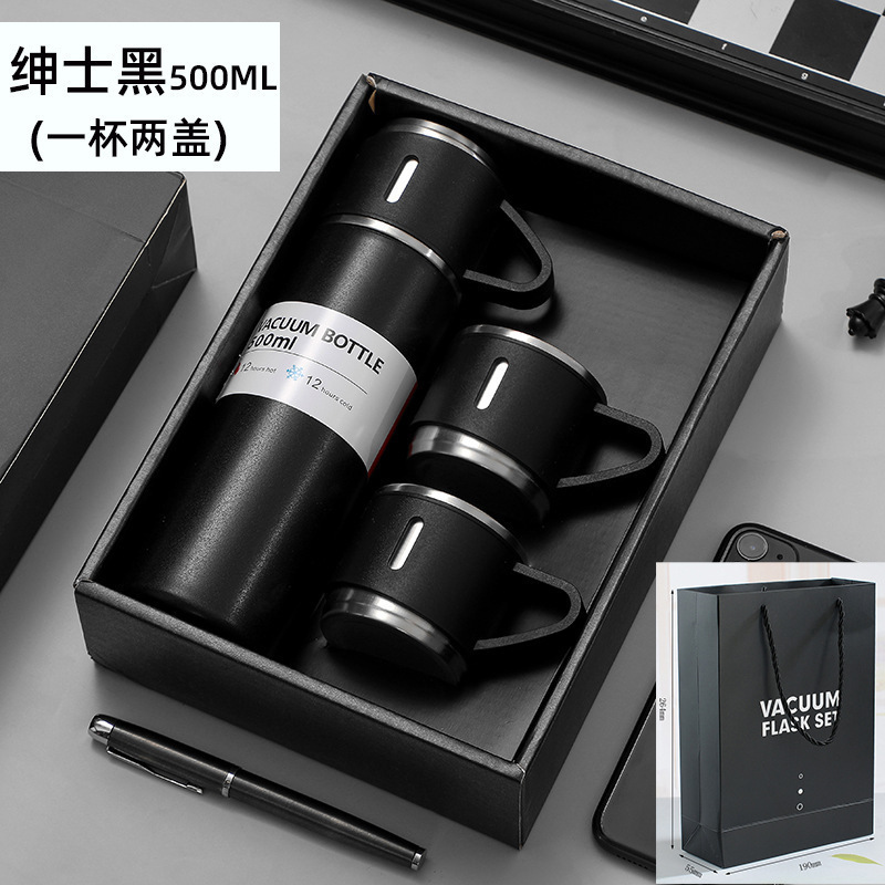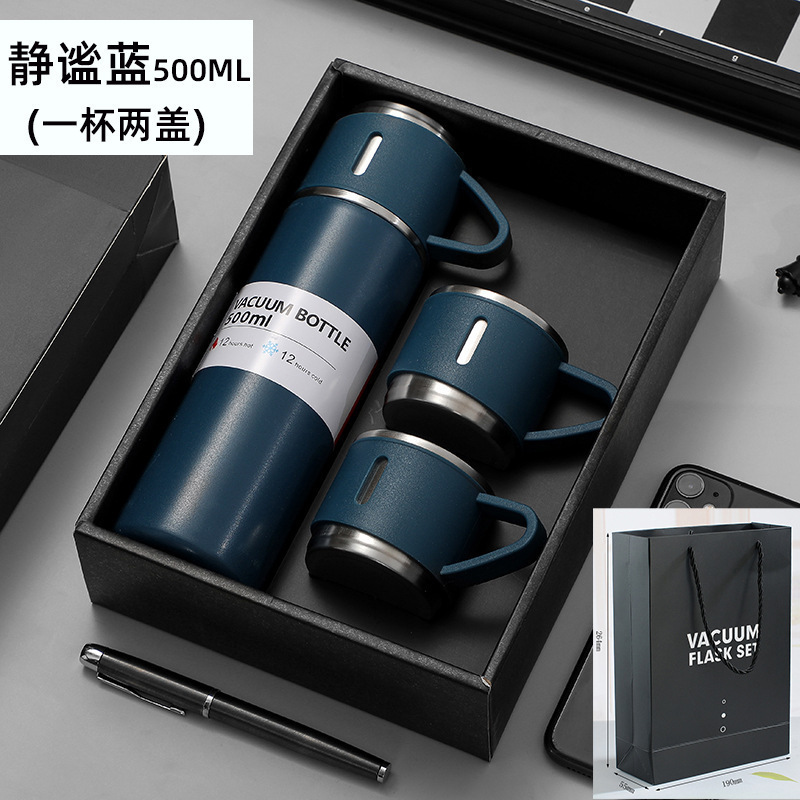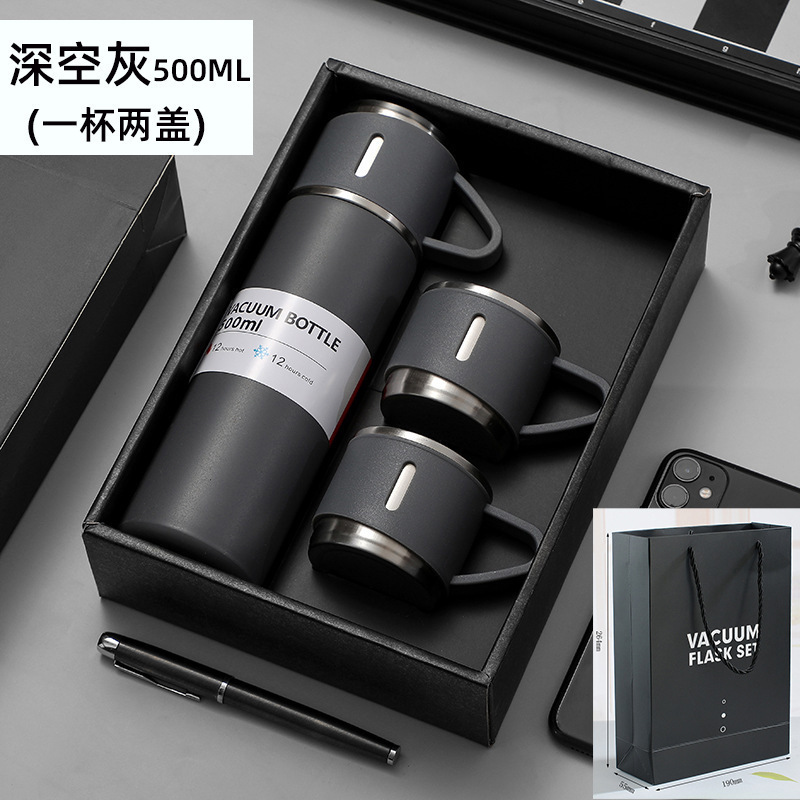 제조 업체 미국 보온병 컵 세트 하나의 커버 이중 목적 스테인레스 스틸 보온병 컵 핸들 휴대용 비즈니스 광고 선물 컵