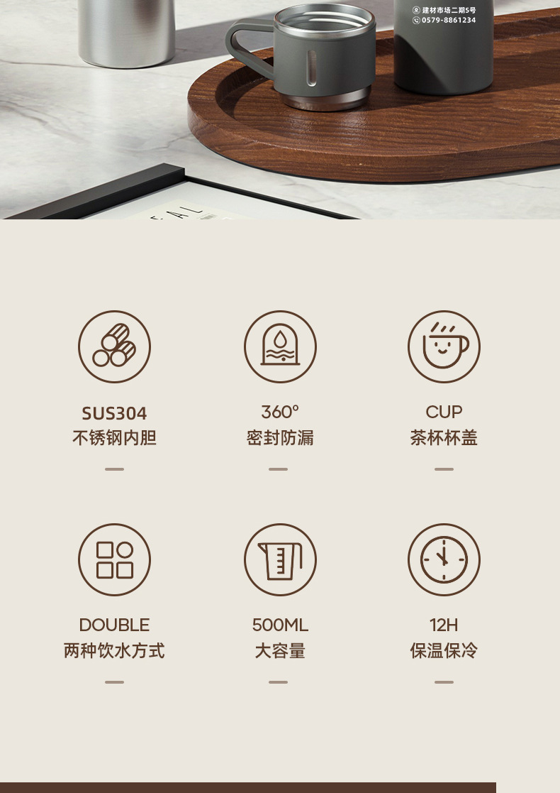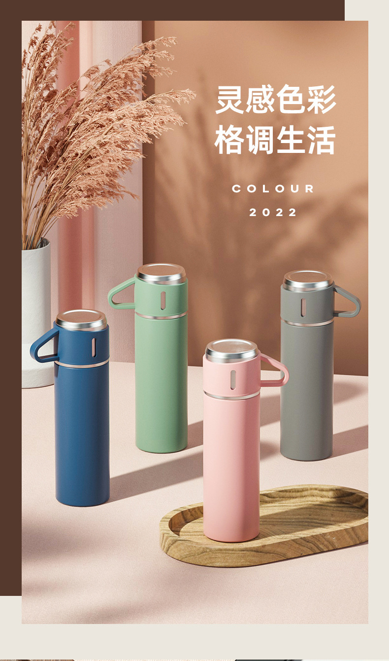 제조 업체 미국 보온병 컵 세트 하나의 커버 이중 목적 스테인레스 스틸 보온병 컵 핸들 휴대용 비즈니스 광고 선물 컵스토어 가기