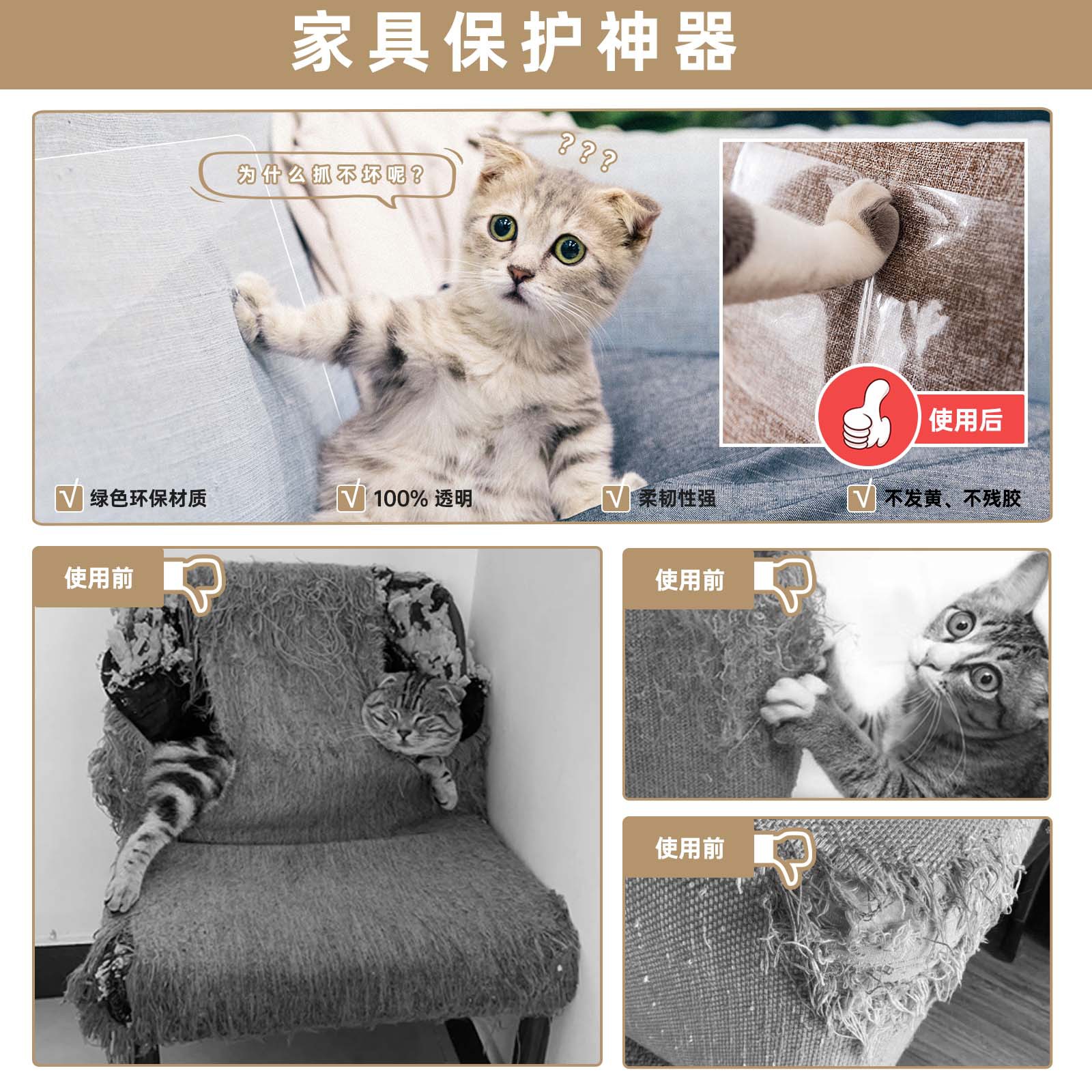 안티 고양이 스크래치 소파 스티커 PVC 이동식 투명 스티커 고양이와 개 스크래치 도어 연삭 발톱 안티 바이트 가구 보호 스티커 크로스 보더 핫 세일스토어 가기