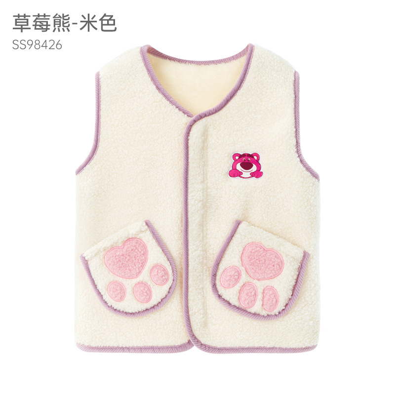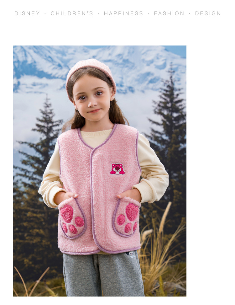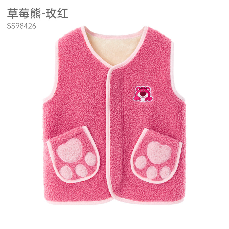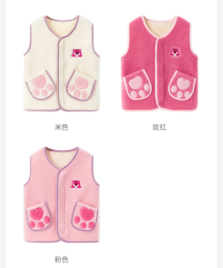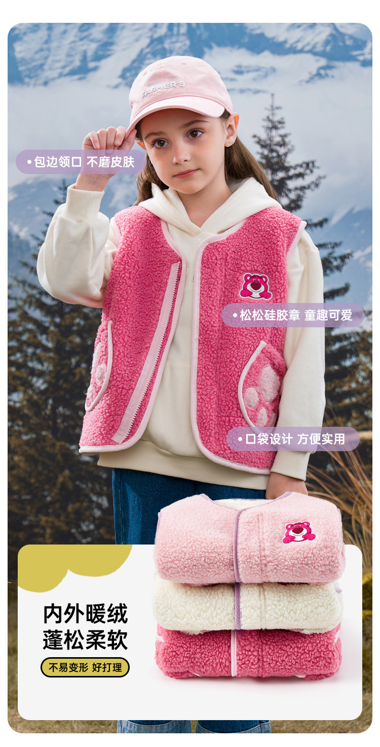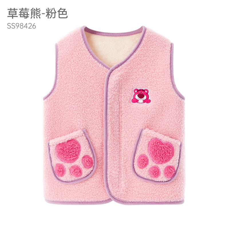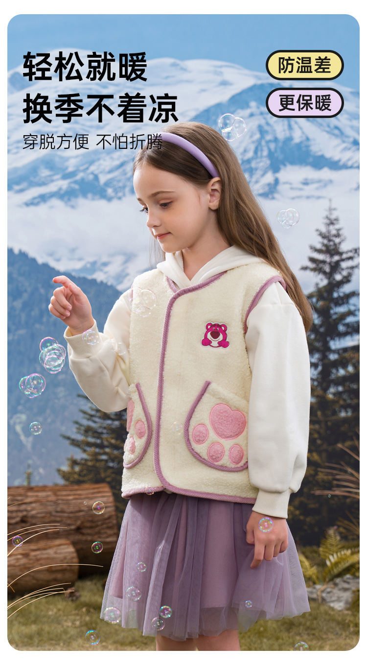 【피부 친화적인 따뜻한 양털】딸기곰 아동 조끼 25 가을 겨울 신상 여아 조끼 민소매 자켓스토어 가기