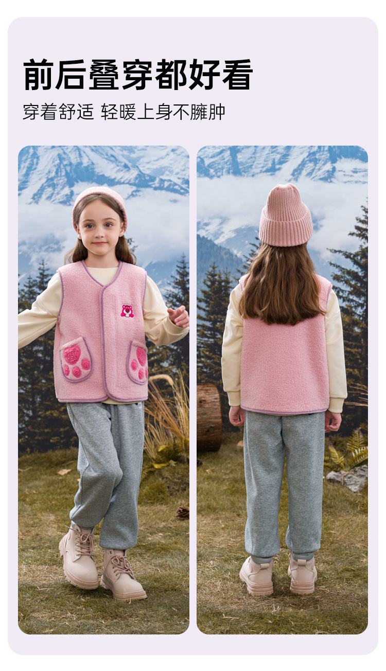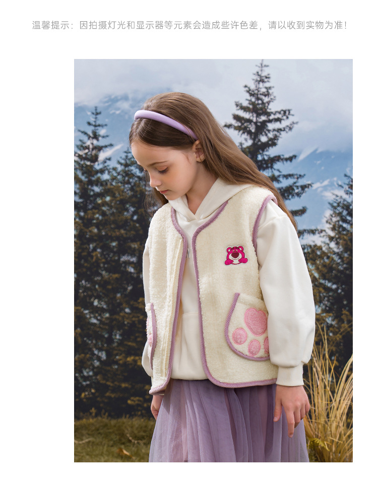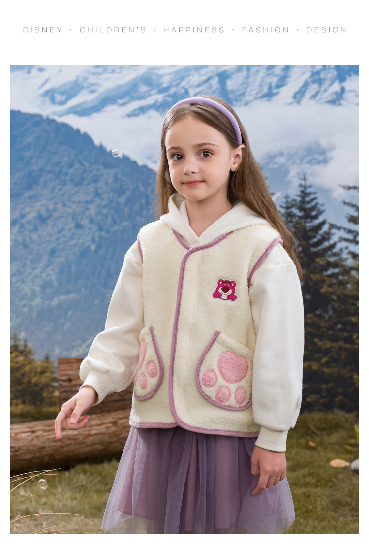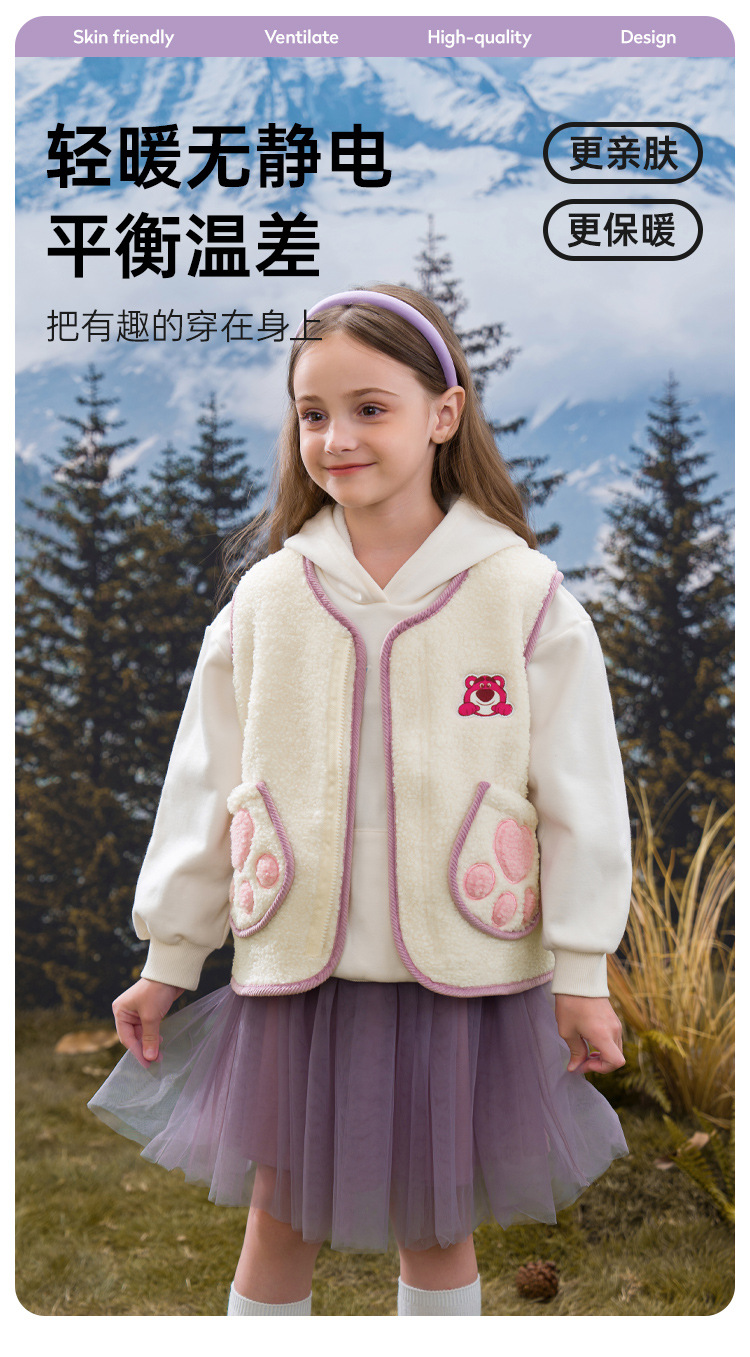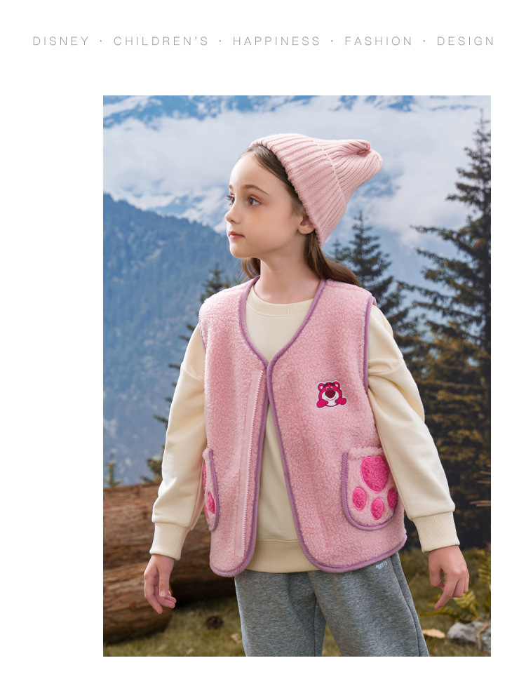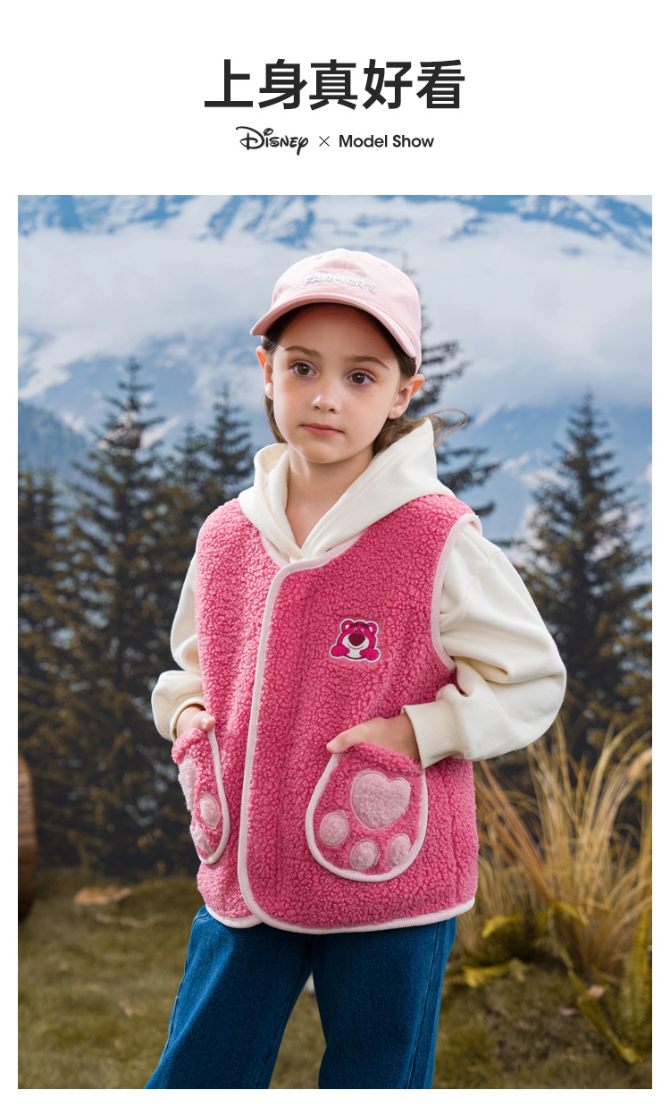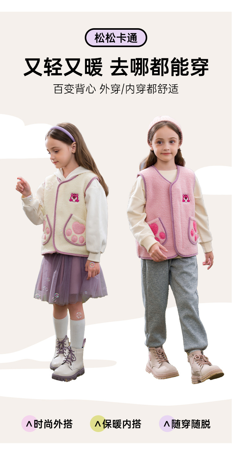 【피부 친화적인 따뜻한 양털】딸기곰 아동 조끼 25 가을 겨울 신상 여아 조끼 민소매 자켓스토어 가기