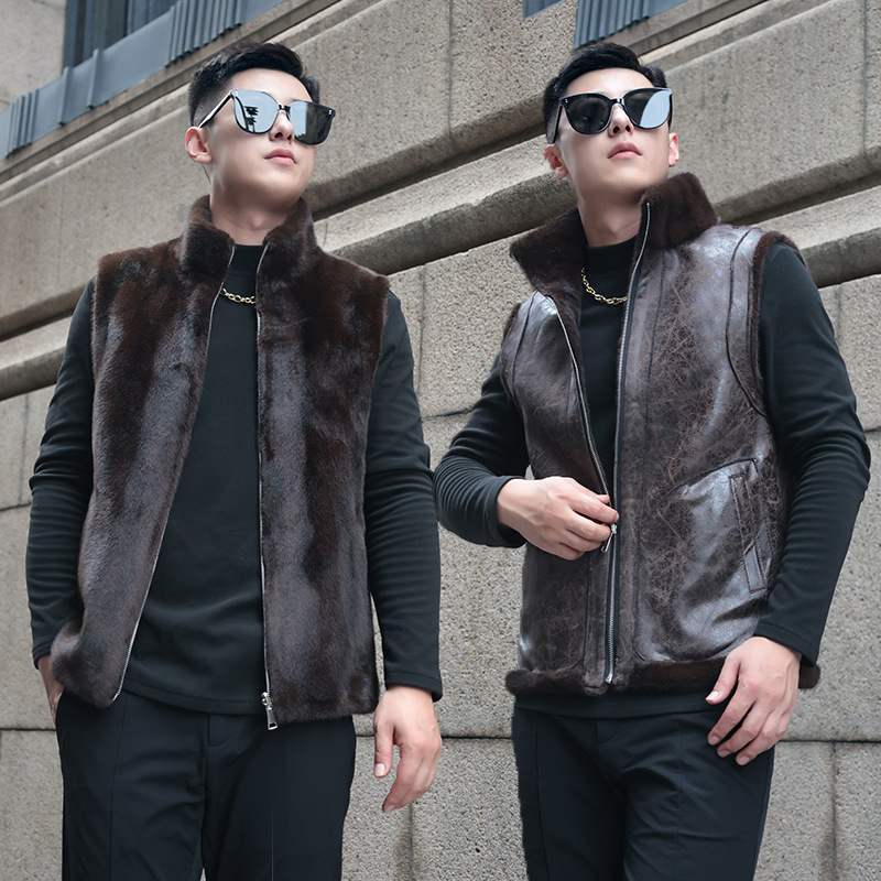 밍크 가죽 조끼 남자의 겨울 따뜻한 모피 모방 밍크 벨벳 투페이스 착용 2023 새로운 겨울 모피 한 조끼
