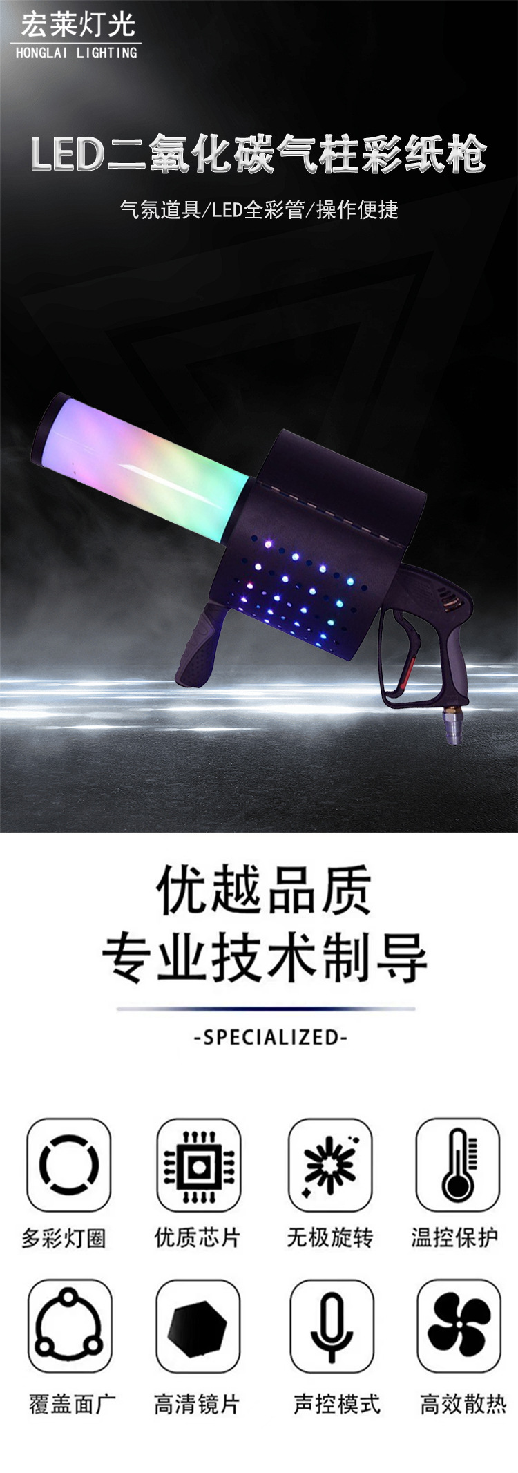 바 인터랙티브 분위기 소품 LED 이산화탄소 가스 칼럼 총 부는 종이 총 무대 led 발광 스프레이 컬러 종이 총