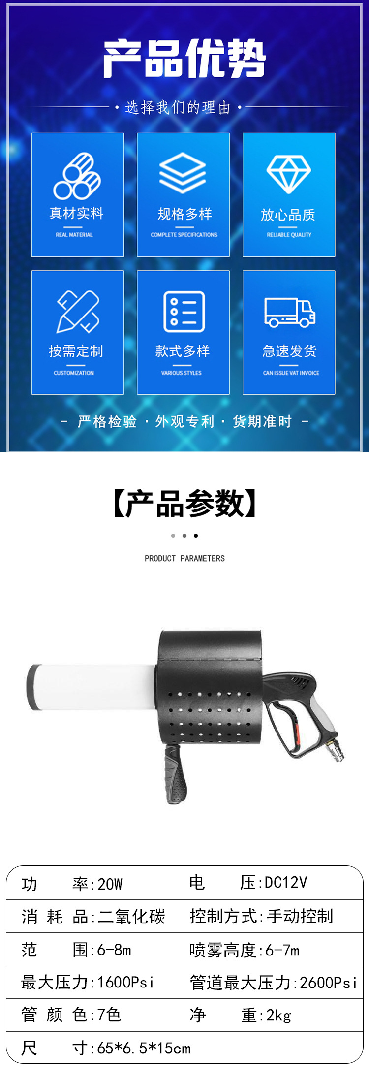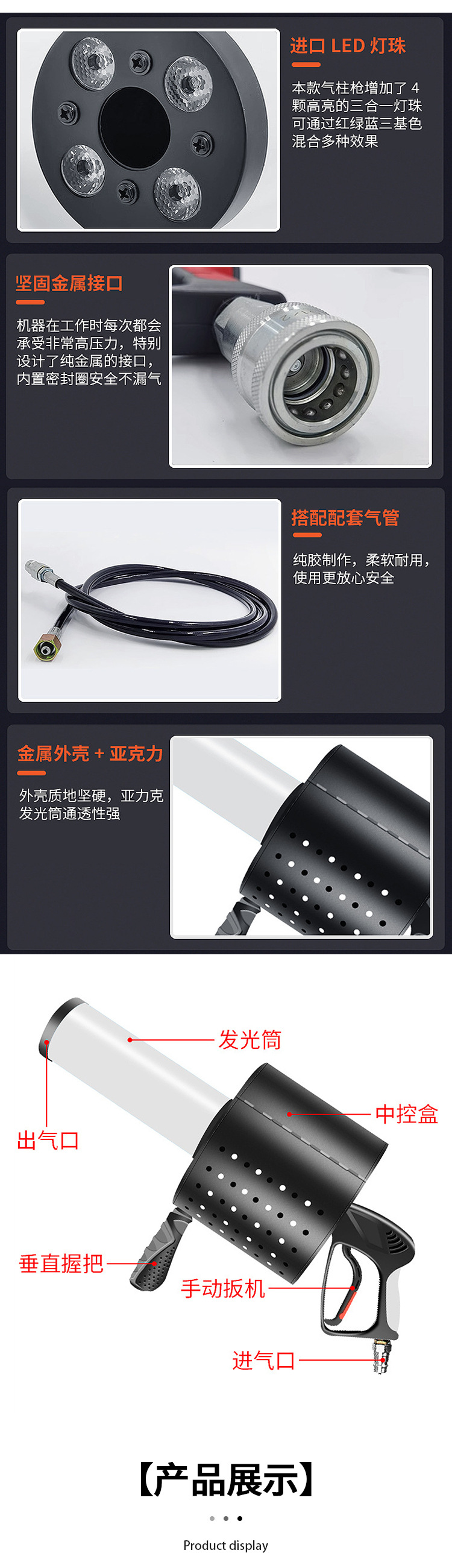 바 인터랙티브 분위기 소품 LED 이산화탄소 가스 칼럼 총 부는 종이 총 무대 led 발광 스프레이 컬러 종이 총스토어 가기