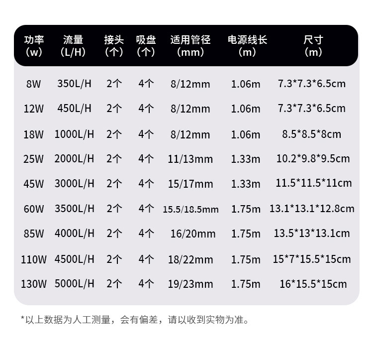 • 빨간색과 흰색 조절 가능한 흐름 바닥 흡입 펌프 8W
