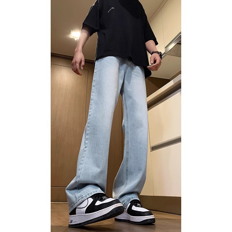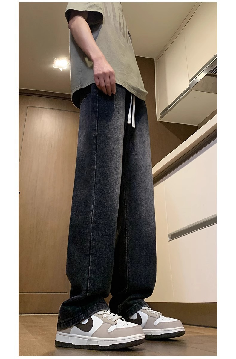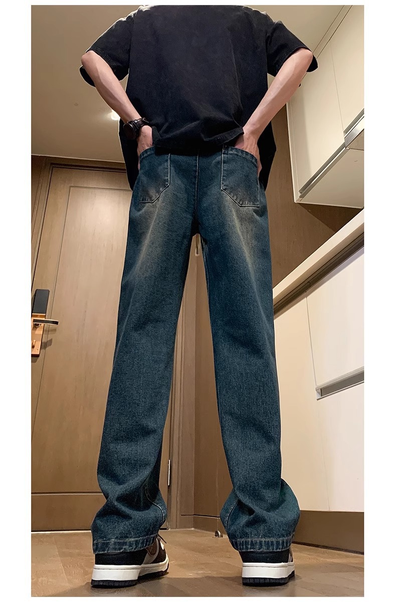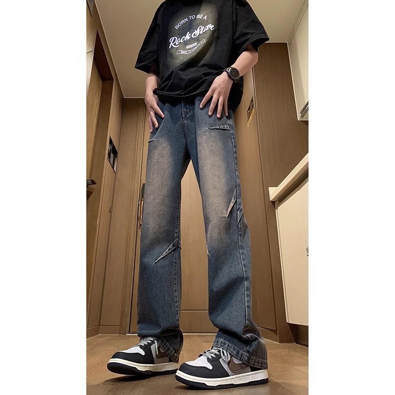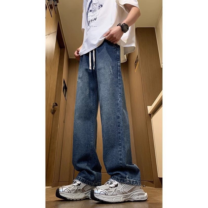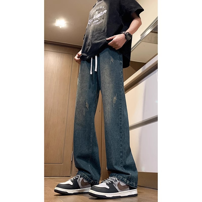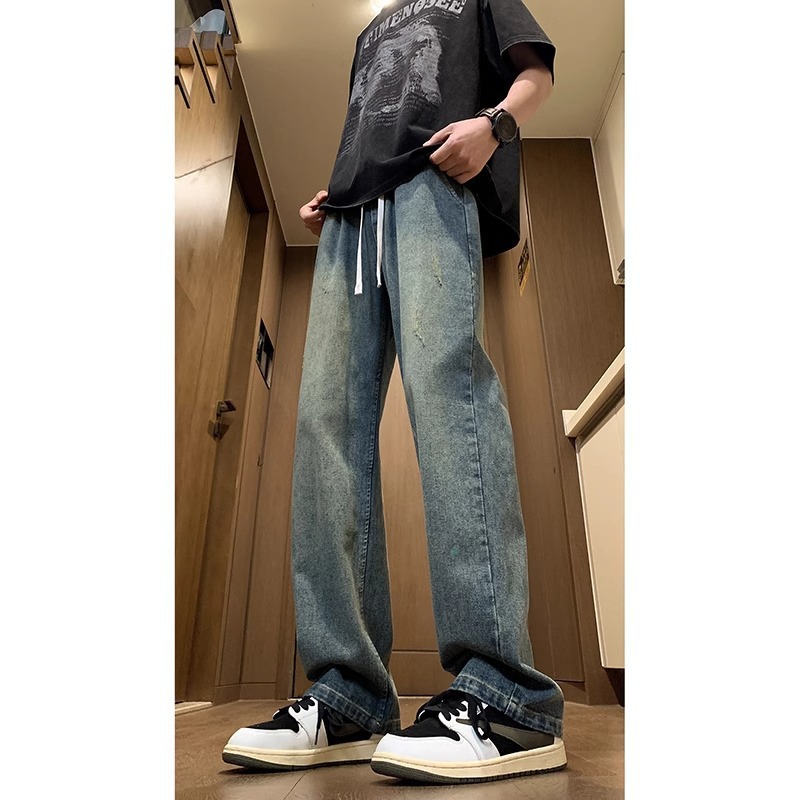NASA American Retro Straight Jeans 남성용 2024 년 새로운 봄과 가을 느슨한 마이크로 드로 스트링 캐주얼 바지스토어 가기