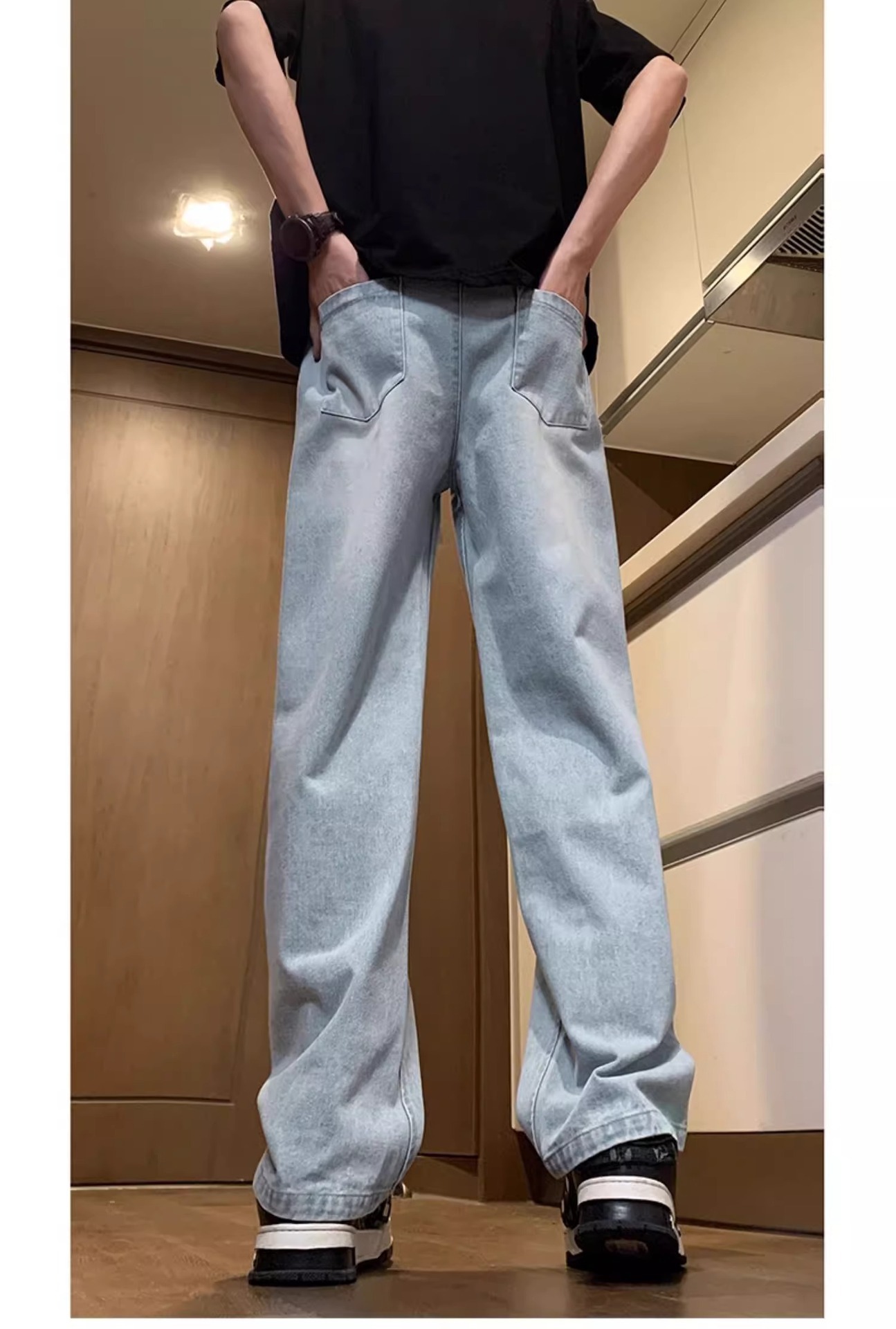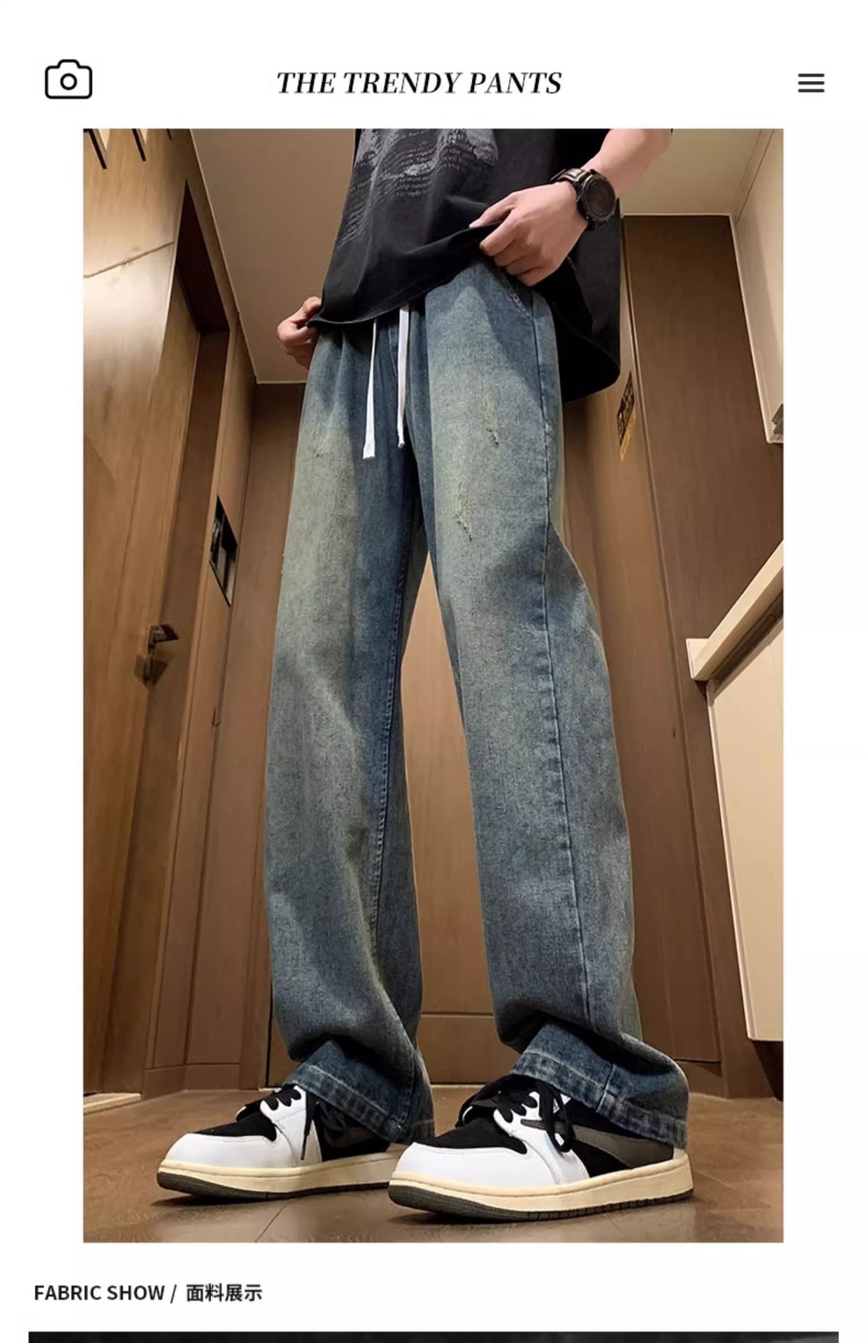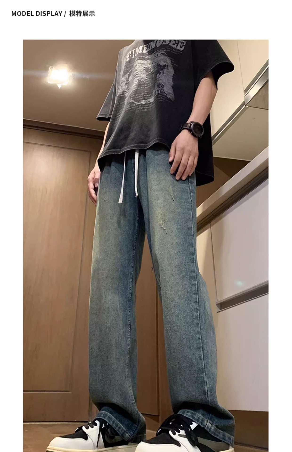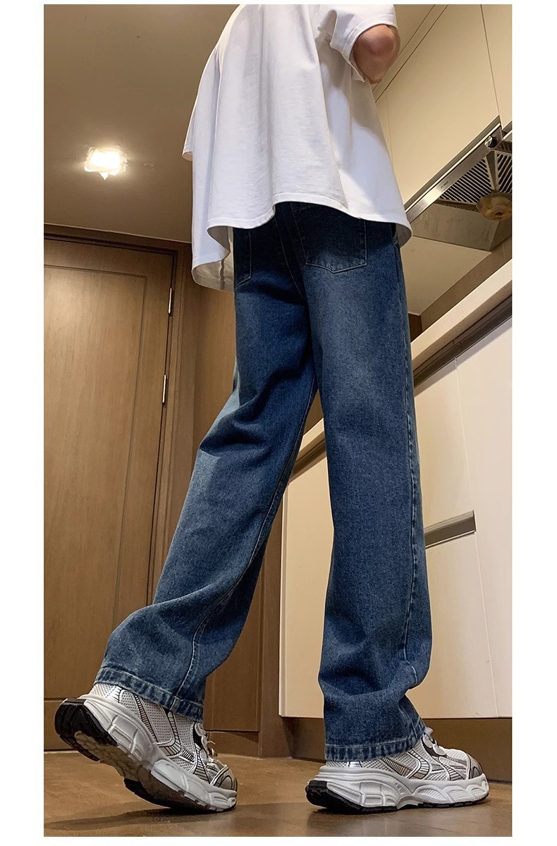 NASA American Retro Straight Jeans 남성용 2024 년 새로운 봄과 가을 느슨한 마이크로 드로 스트링 캐주얼 바지스토어 가기