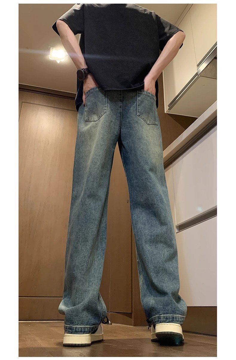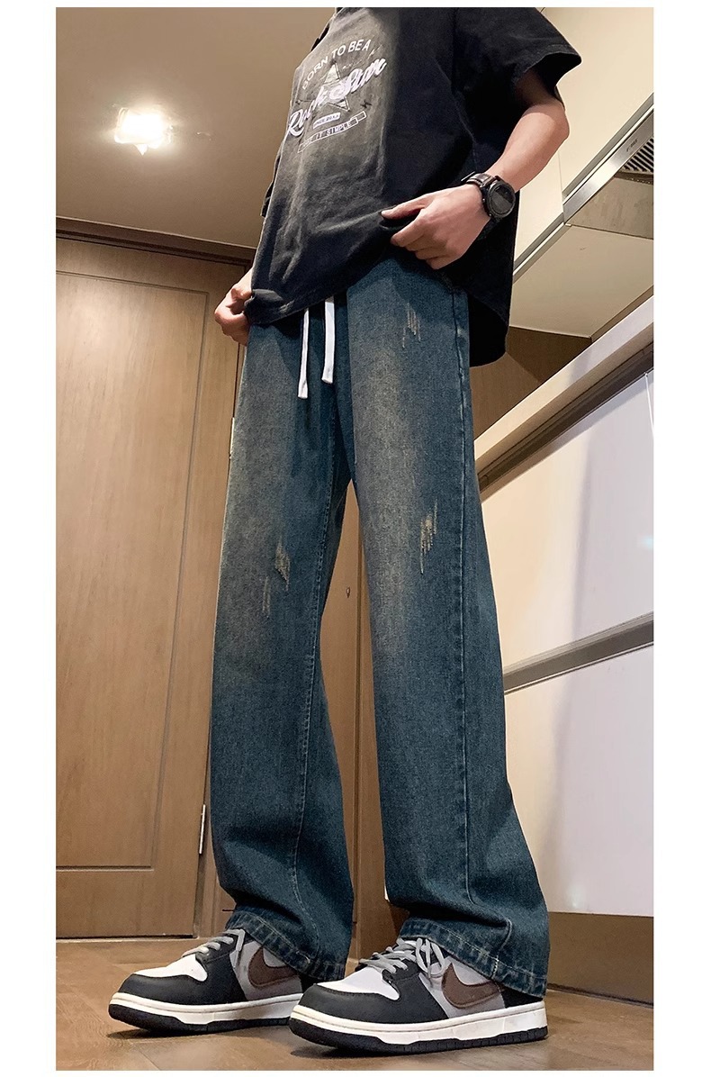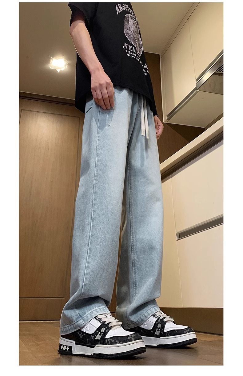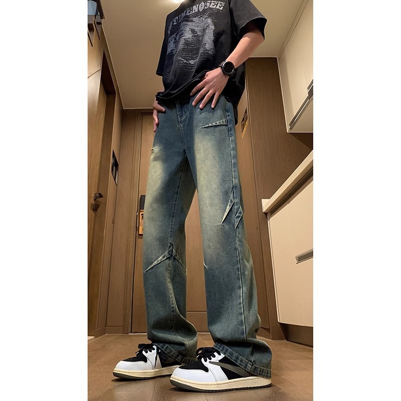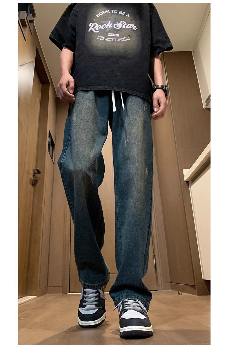 NASA American Retro Straight Jeans 남성용 2024 년 새로운 봄과 가을 느슨한 마이크로 드로 스트링 캐주얼 바지