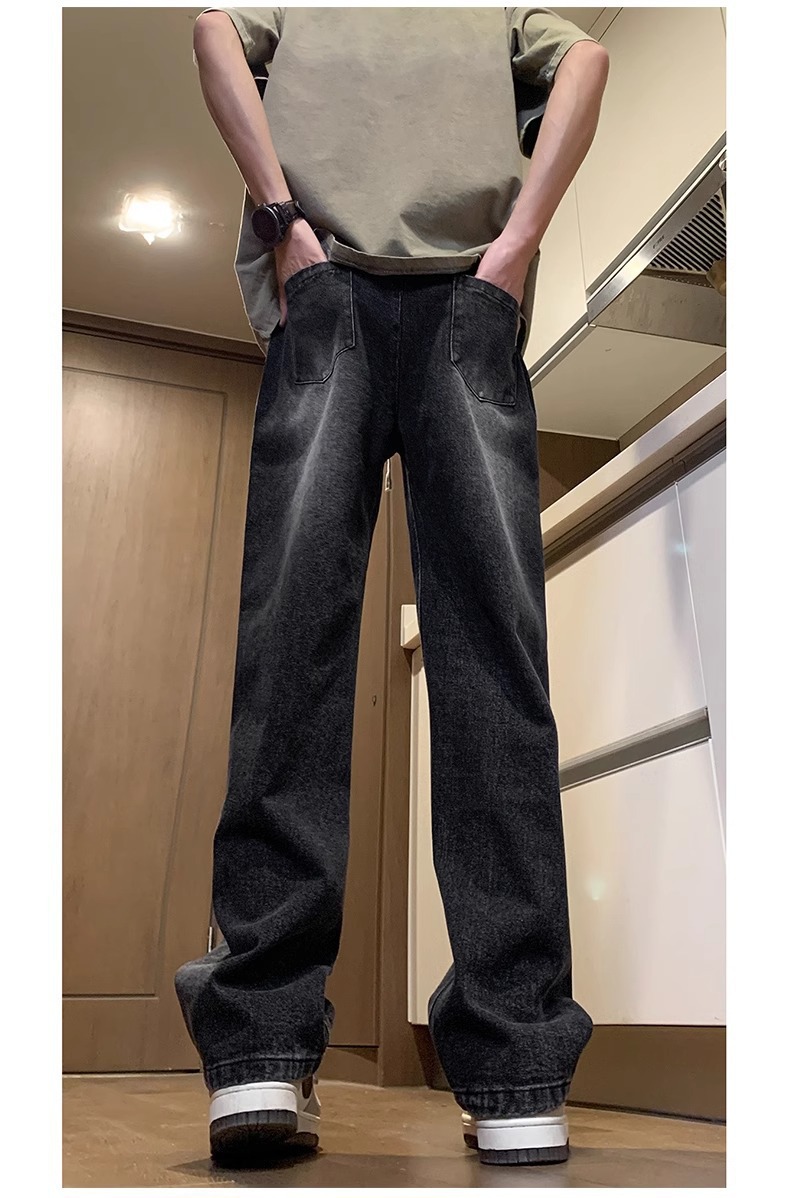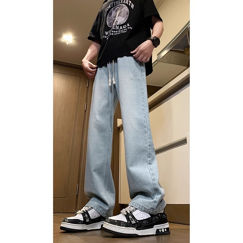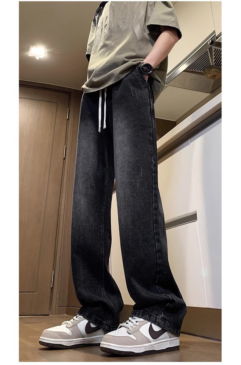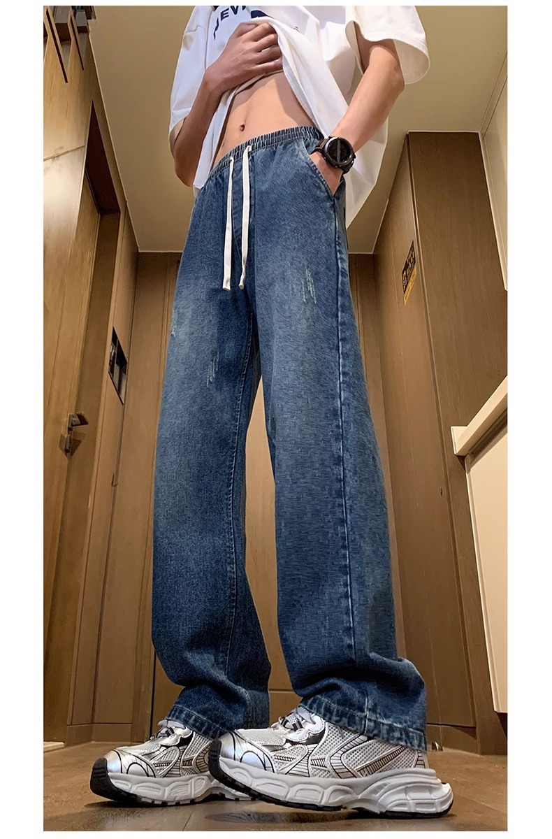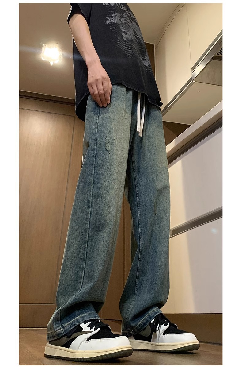 NASA American Retro Straight Jeans 남성용 2024 년 새로운 봄과 가을 느슨한 마이크로 드로 스트링 캐주얼 바지