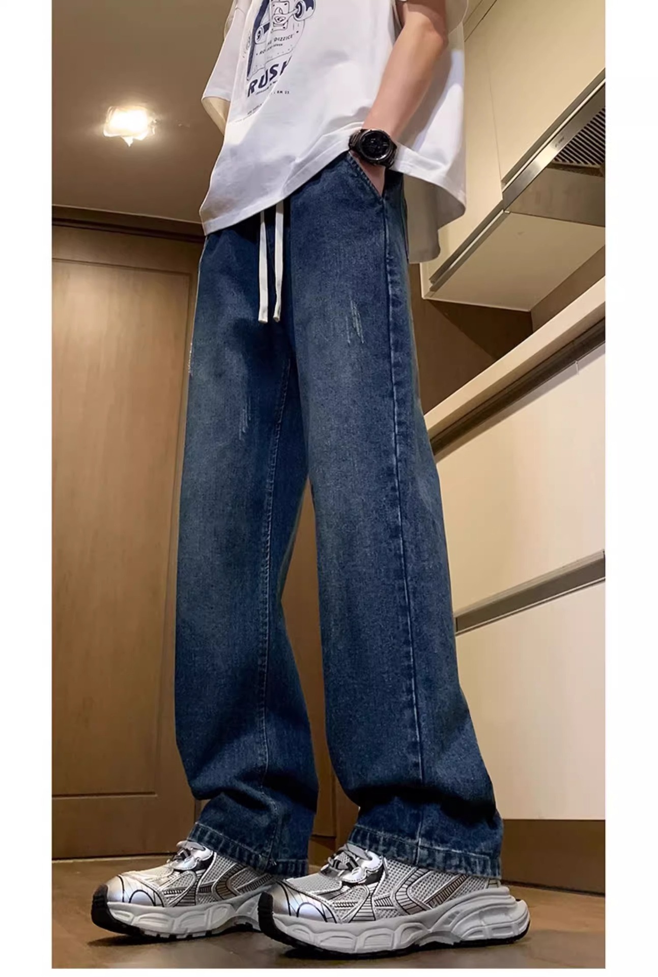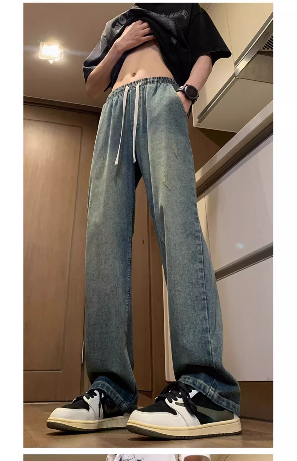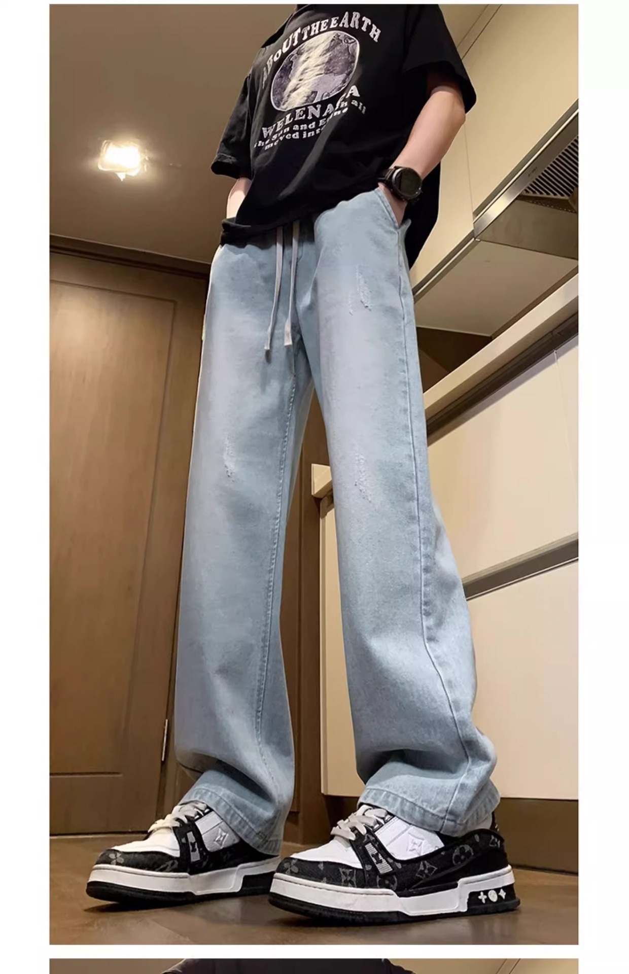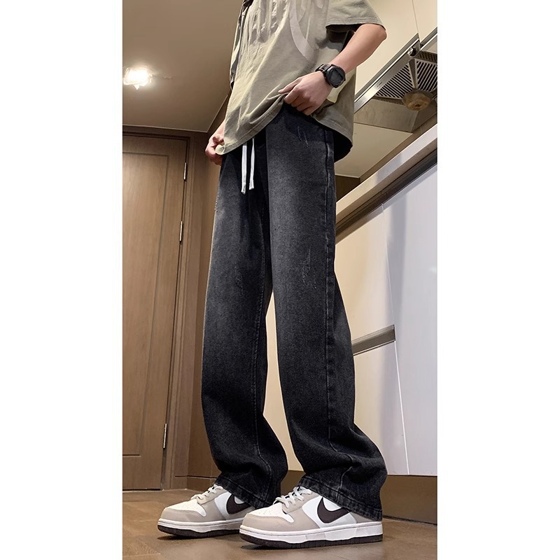NASA American Retro Straight Jeans 남성용 2024 년 새로운 봄과 가을 느슨한 마이크로 드로 스트링 캐주얼 바지