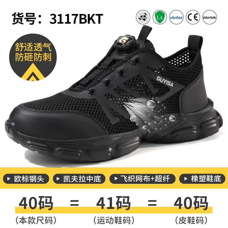 남성용 크로스보더 안전화, 충격방지 및 펑크방지, 여름용 스틸토 슈즈, 회전식 버클, 끈 없이 편하게 신을 수 있는, 장시간 서 있어도 피곤하지 않은 작업화