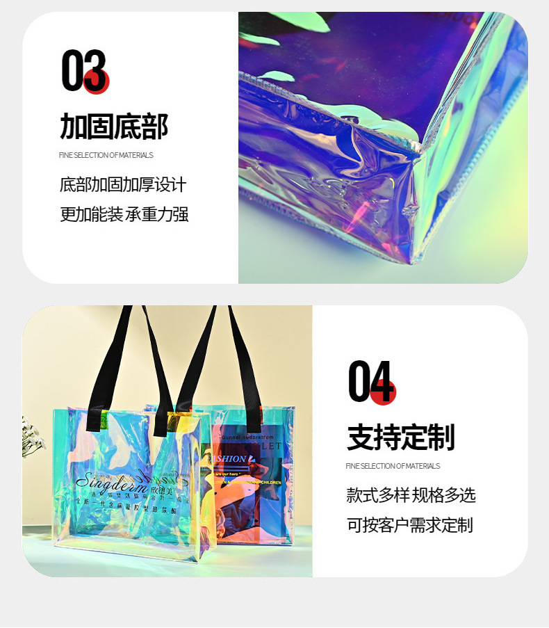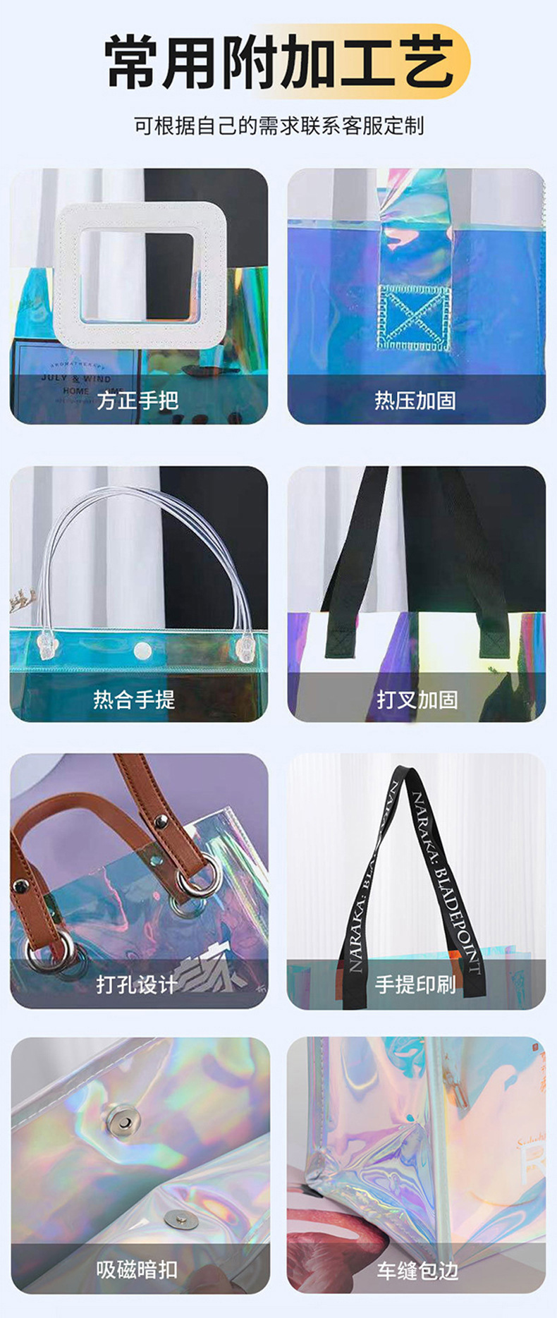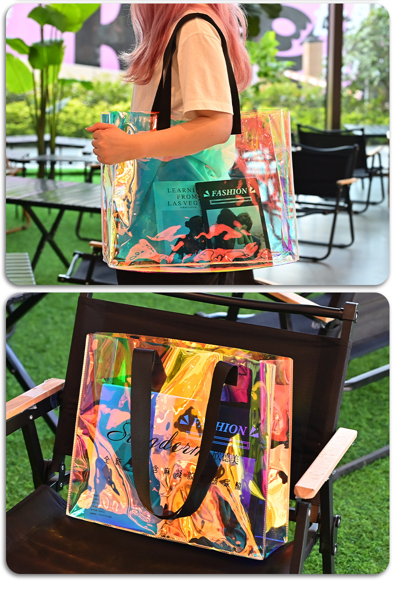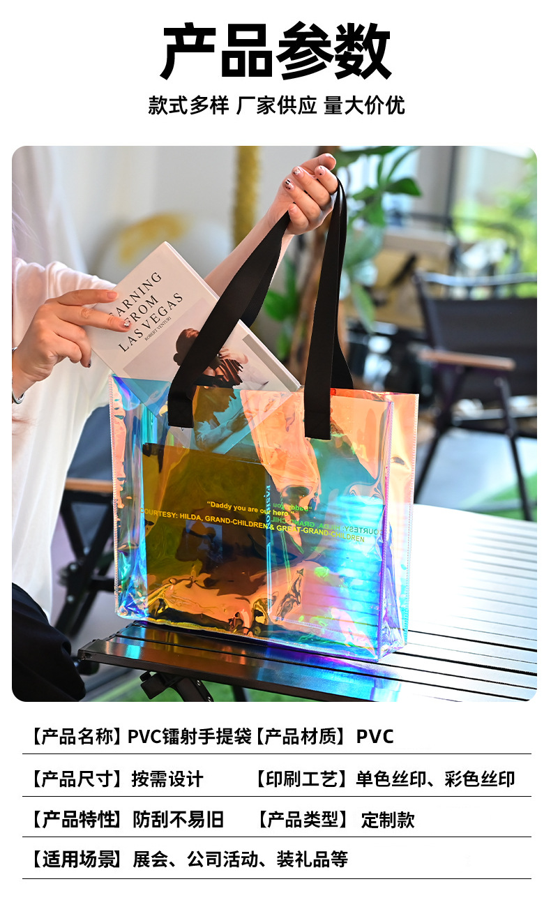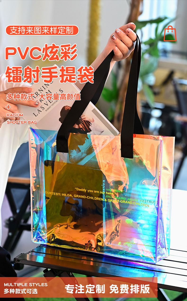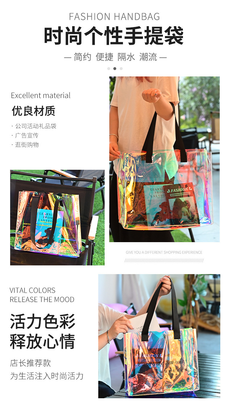 PVC 레이저 핸드백 맞춤형 고급 투명 기념품 선물 가방 플라스틱 핸드백 다채로운 젤리 가방스토어 가기