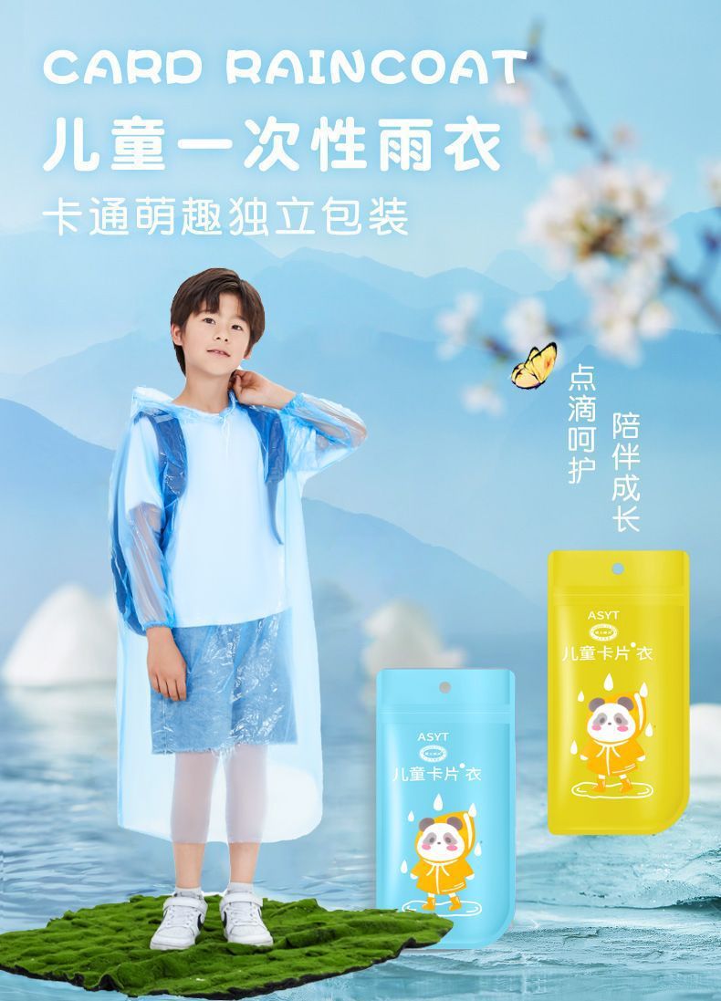 카드 일회용 비옷 두꺼운 휴대용 긴 판초 비 방지 전신 등산 어린이 하이킹 학교 비 방지스토어 가기