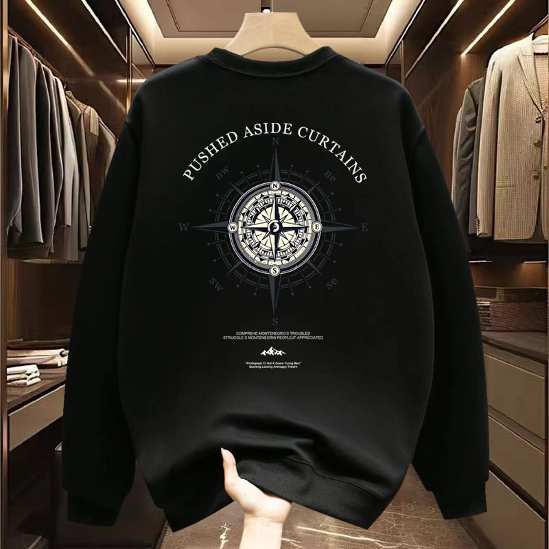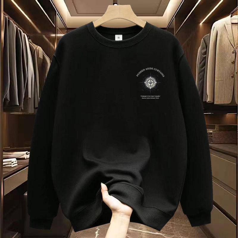 아메리칸 스타일 트렌디 브랜드 인터넷 연예인 땀 남자 2024 새로운 가을과 겨울 남자 느슨한 간단한 인쇄 긴 소매 올 매치 탑스토어 가기
