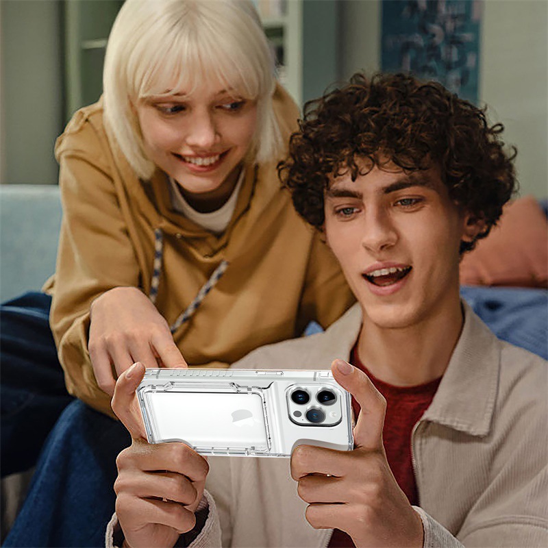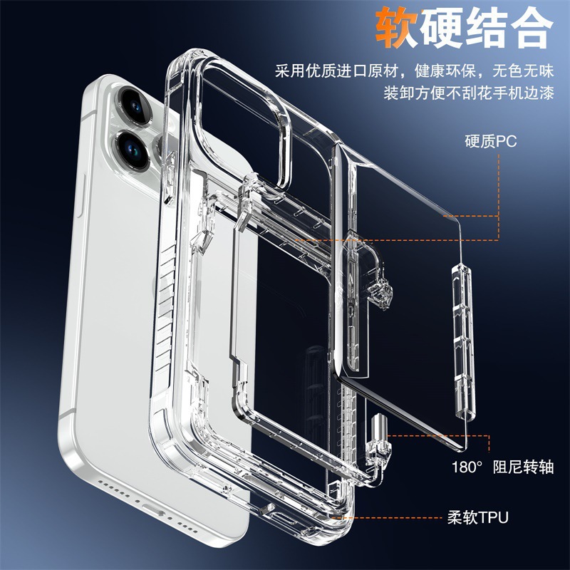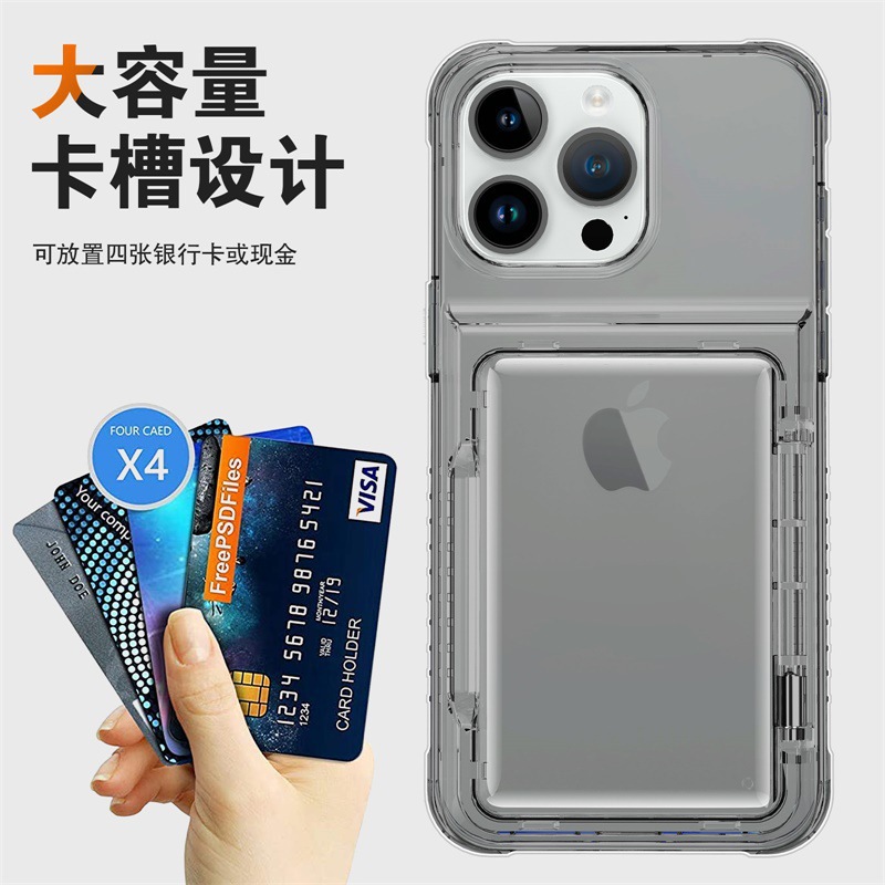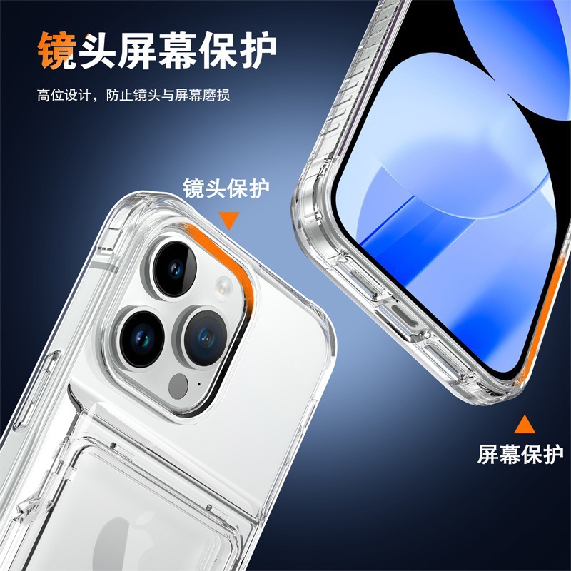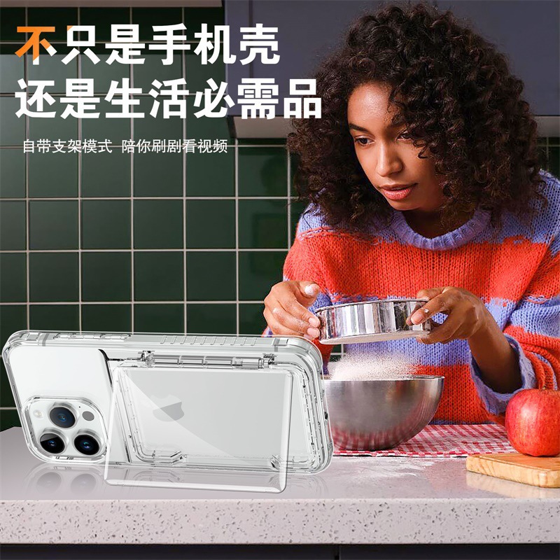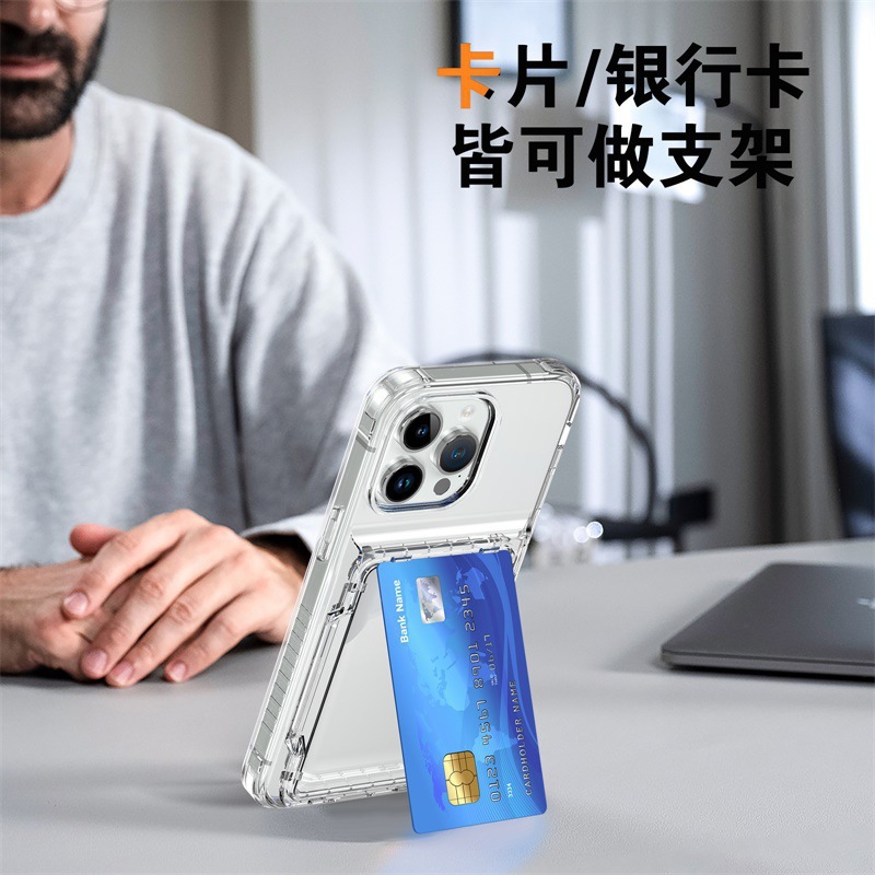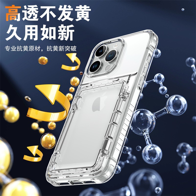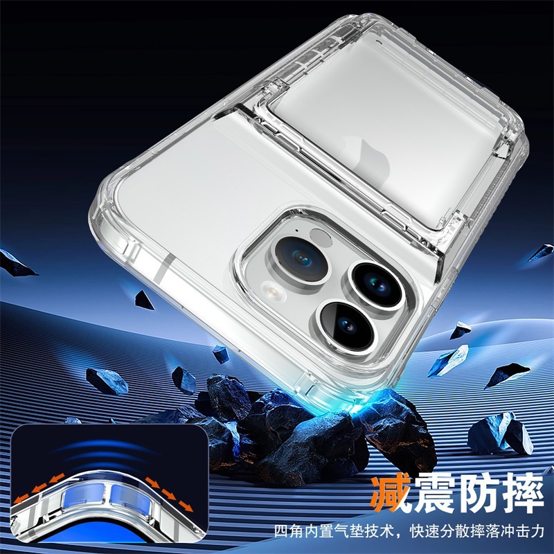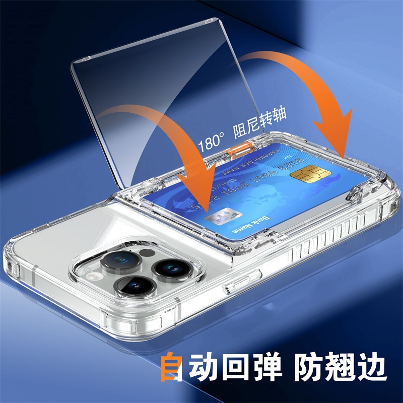 애플 17프로 투명 휴대폰 케이스, 삼성 S25 케이스, 플립형 카드 슬롯 스탠드, 아이폰16/15 낙하 방지
