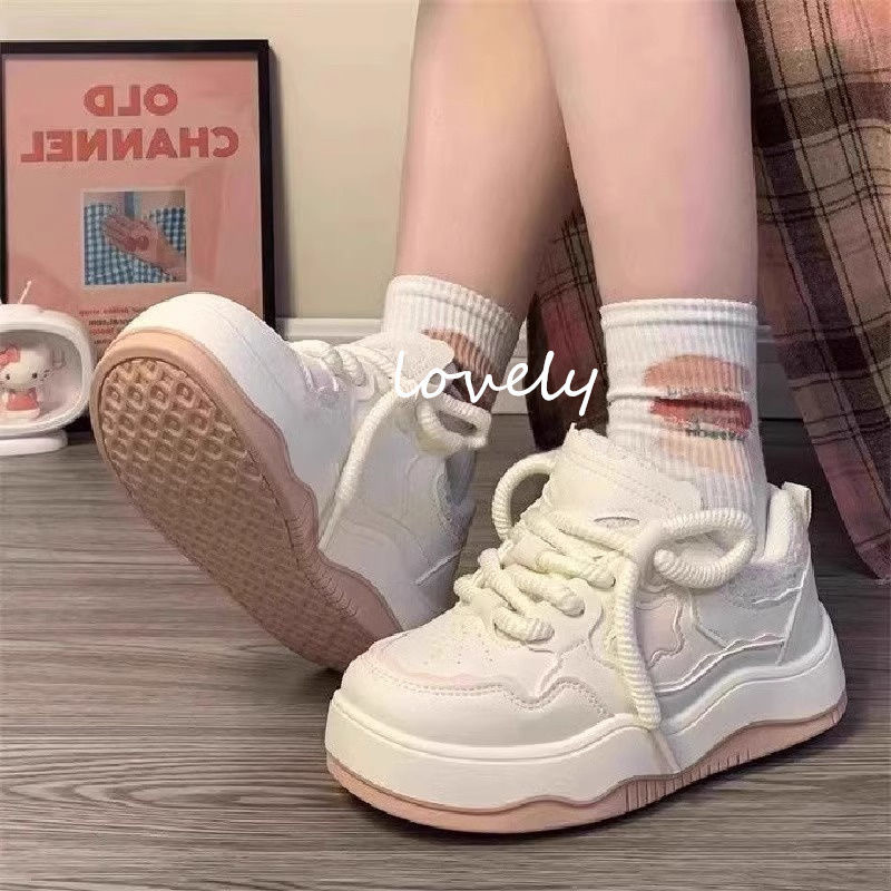 2024 새로운 두꺼운 밑창 기모 신발 봄과 가을 다재다능한 흰색 신발 여성 캐주얼 보드 신발 여학생 따뜻한 면화 신발