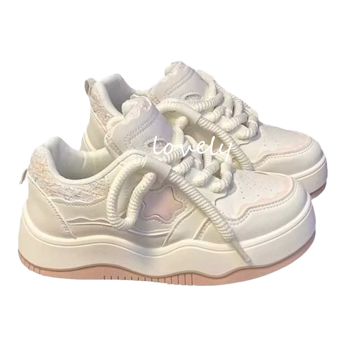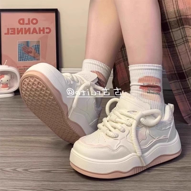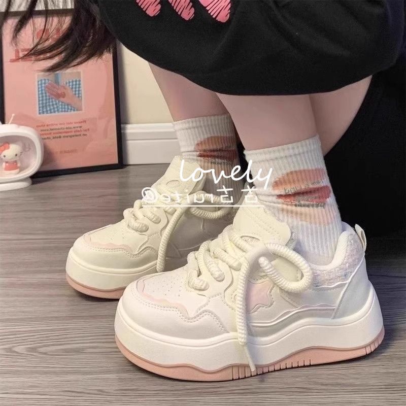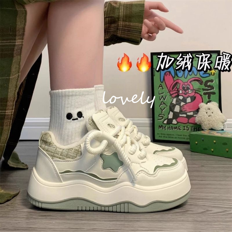 2024 새로운 두꺼운 밑창 기모 신발 봄과 가을 다재다능한 흰색 신발 여성 캐주얼 보드 신발 여학생 따뜻한 면화 신발스토어 가기