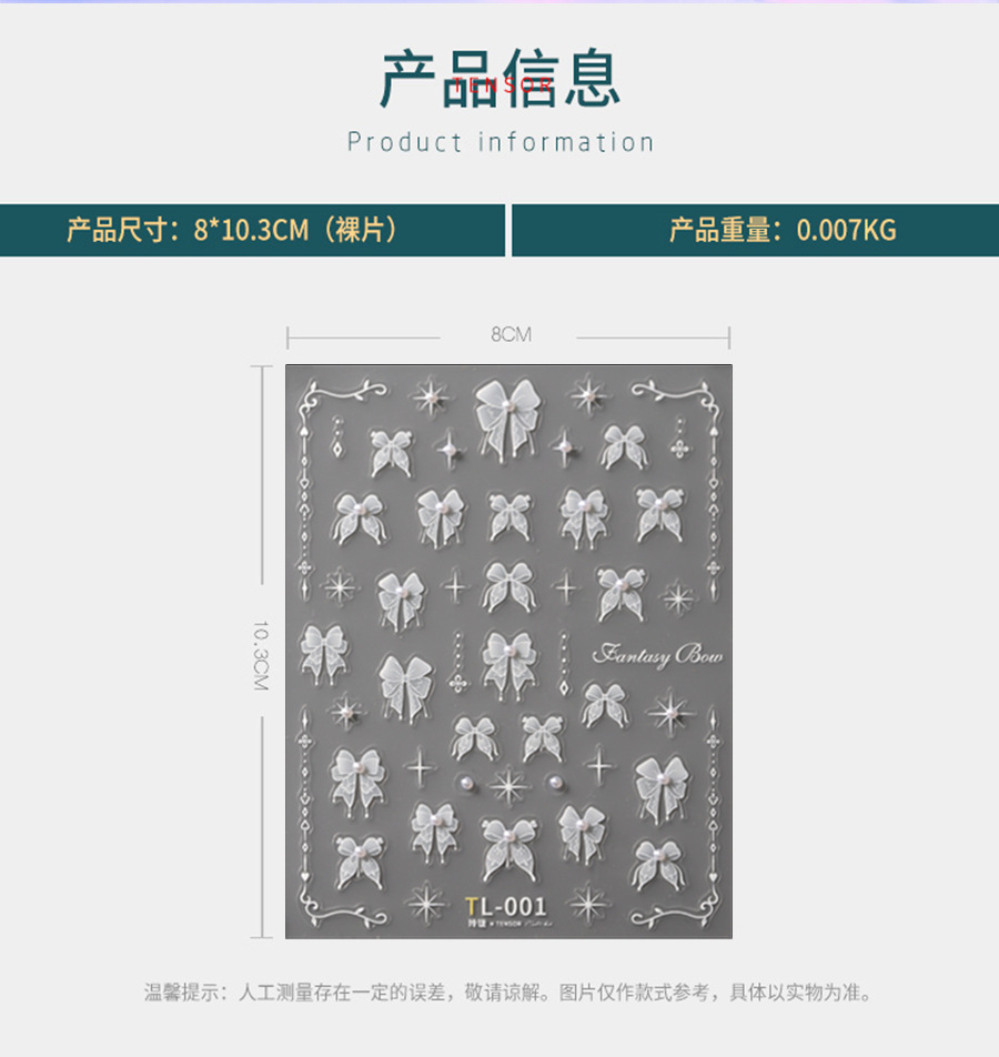 철제처럼 달콤한 소녀 감성의 리본 네일 스티커 TL-264 심플하고 정교한 나비 크리스탈 다이아몬드 네일 스티커