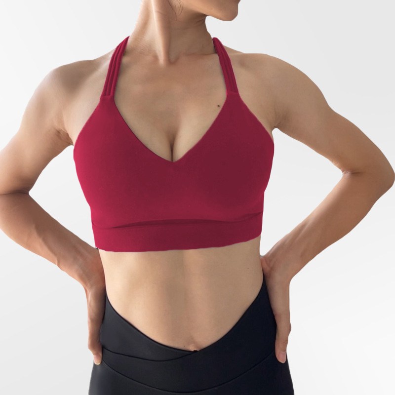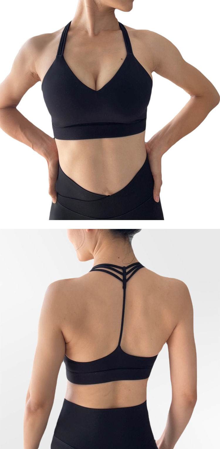 여성용 크로스보더 탈착식 가슴 패드 스포츠 브라, T자형 등 트레이닝 아우터웨어, 런닝 피트니스 요가 브라