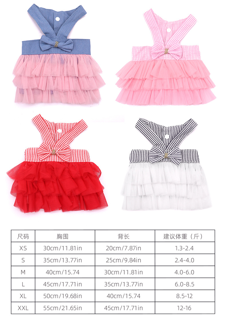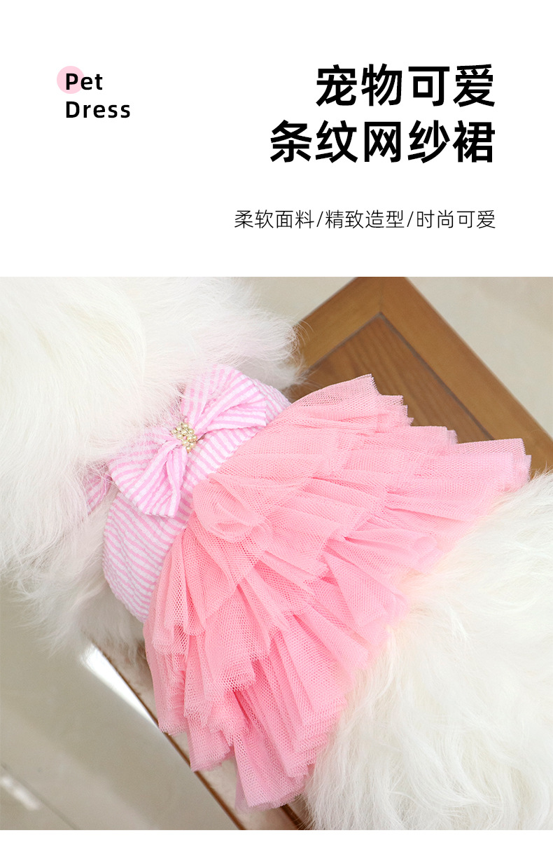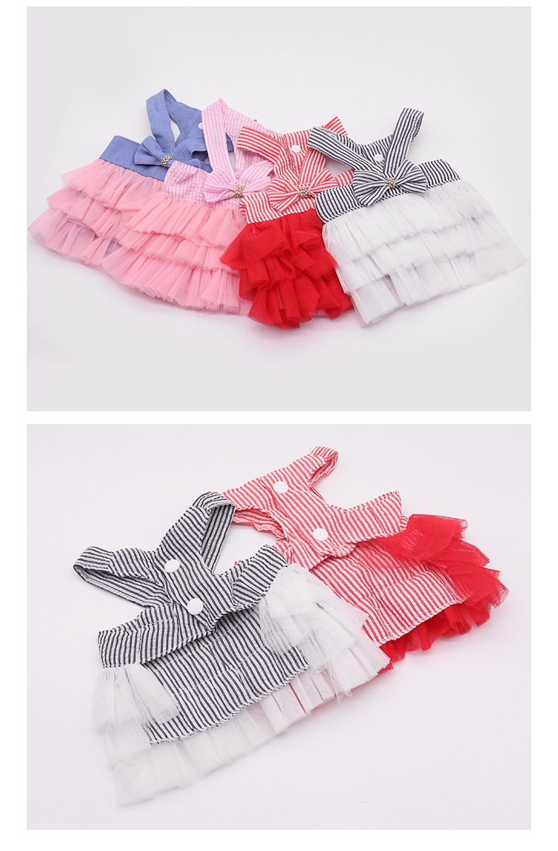 애완 동물 의류 메쉬 스커트 작은 개 테디 보메이 의류 개 스커트 귀여운 스트라이프 스트랩 고양이 스커트스토어 가기