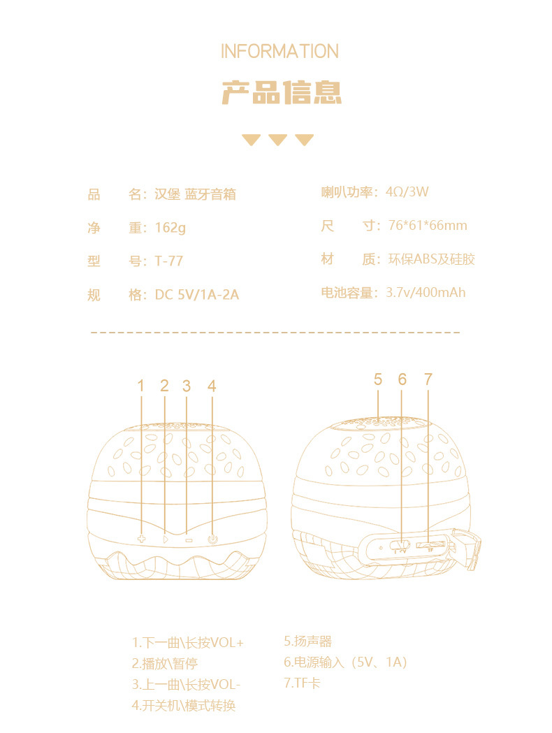 새로운 만화 함부르크 블루투스 스피커 선물 야외 방수 휴대용 창조적 인 귀여운 국경 품질 노동자스토어 가기