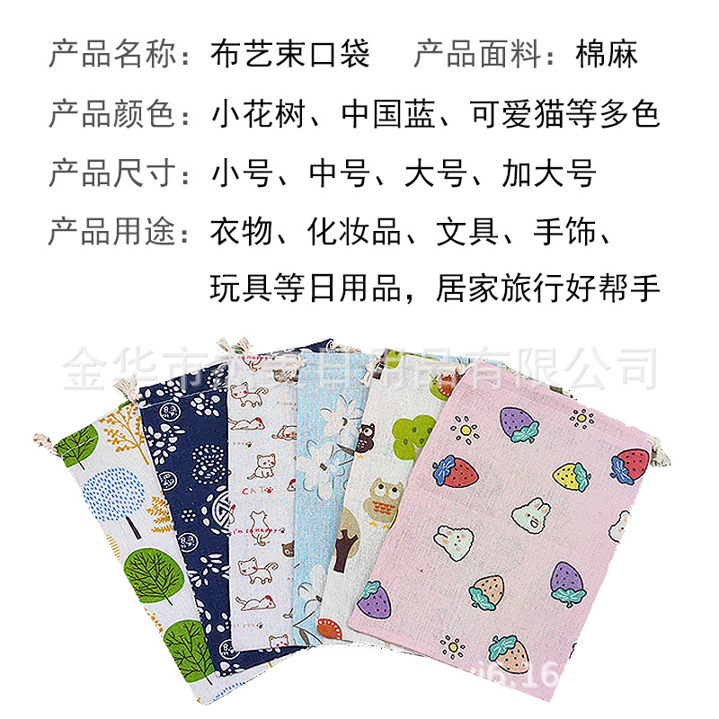 프린트 면/린넨 드로스트링 주머니, 린넨 가방, 잡화/속옷 수납 가방, 여행용 수납 가방, 선물 가방, 휴대용