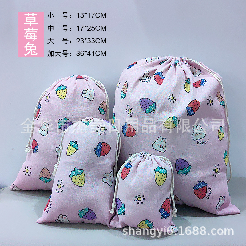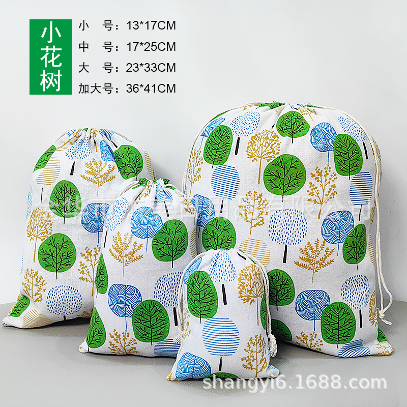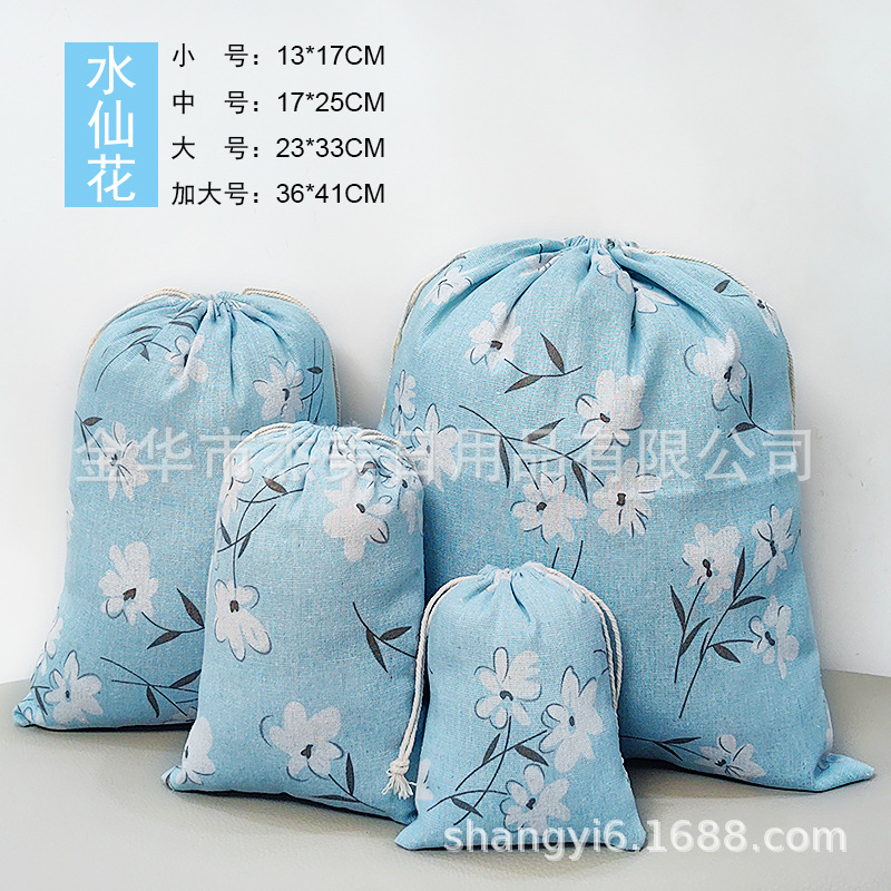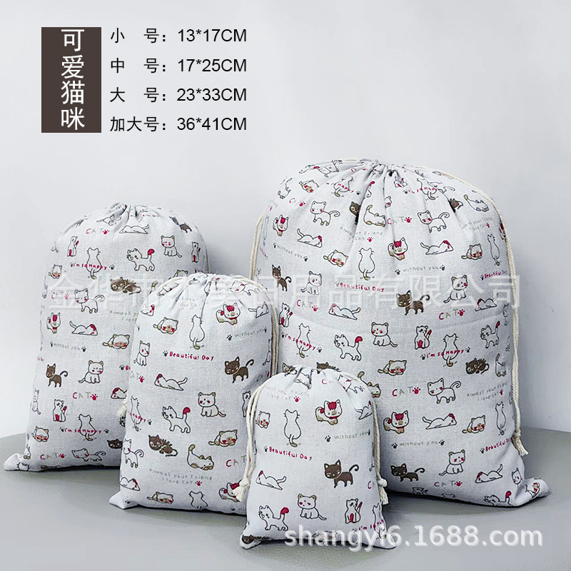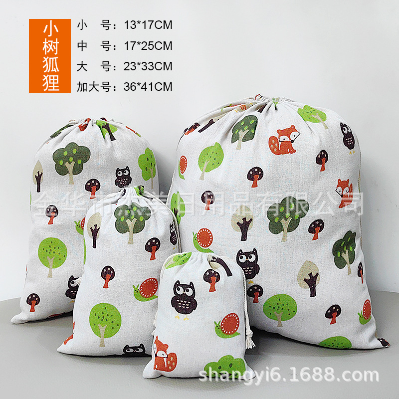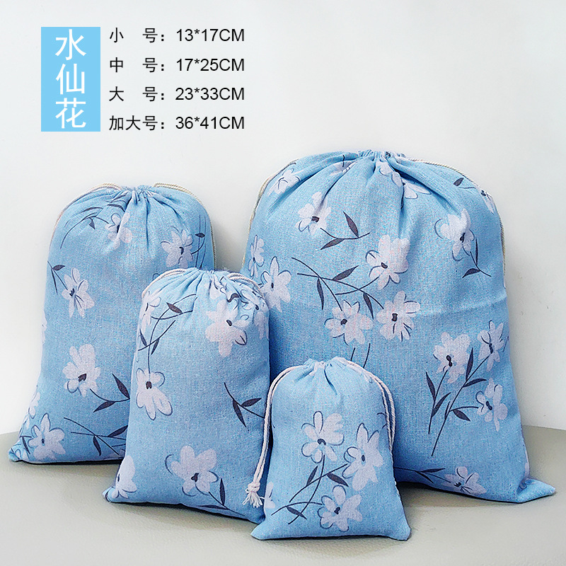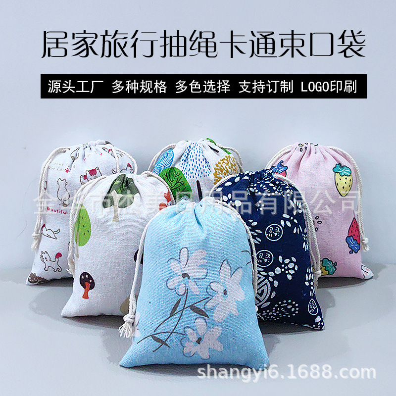 프린트 면/린넨 드로스트링 주머니, 린넨 가방, 잡화/속옷 수납 가방, 여행용 수납 가방, 선물 가방, 휴대용스토어 가기