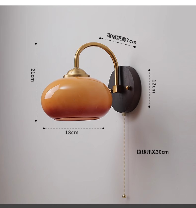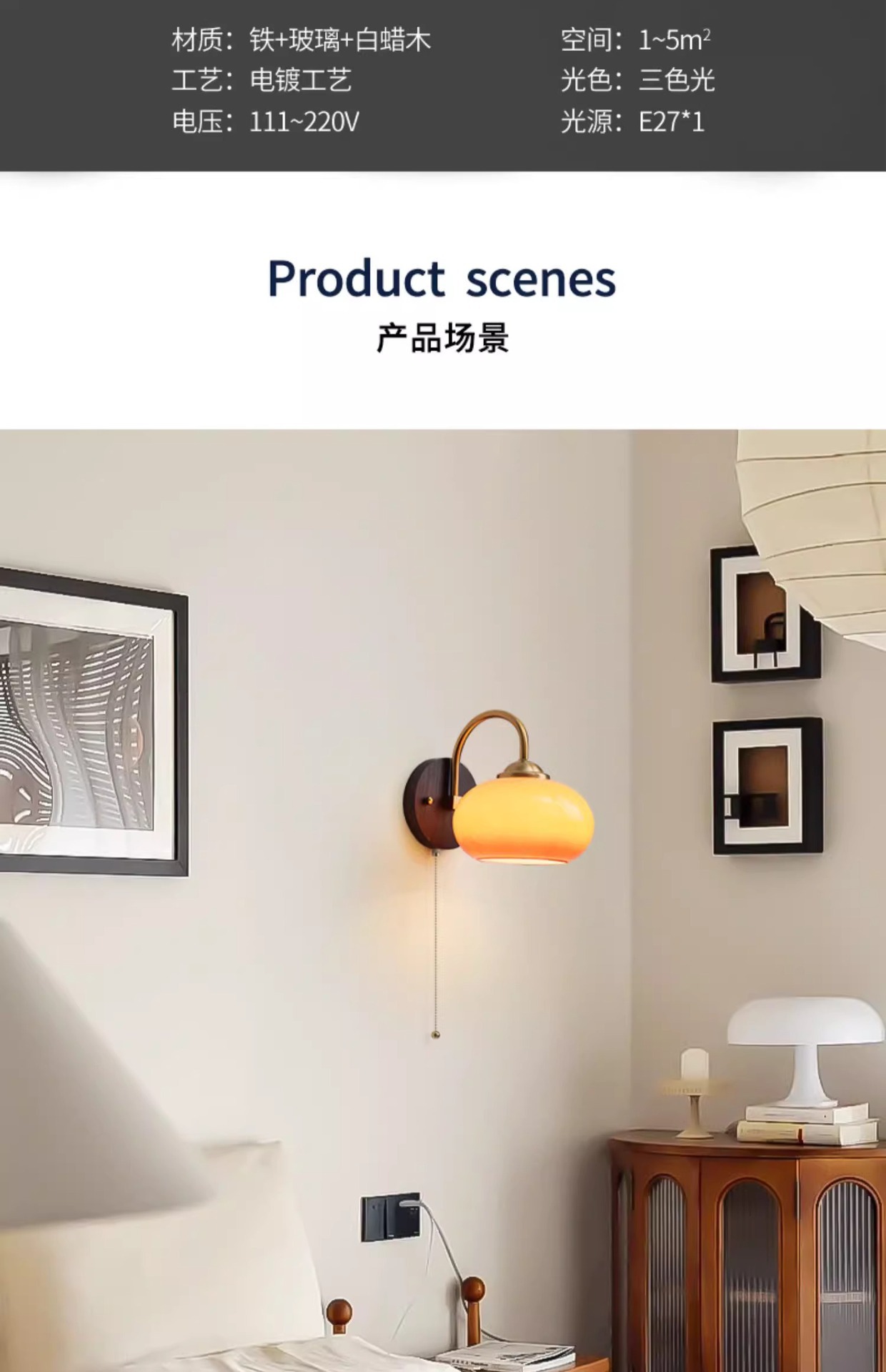 사일런트 크림 스타일 침실 침실 LED 벽 램프 레트로 발코니 통로 복도 배경 벽 유리 중간 고대 벽 램프