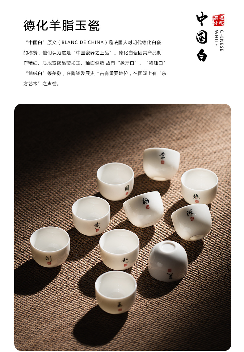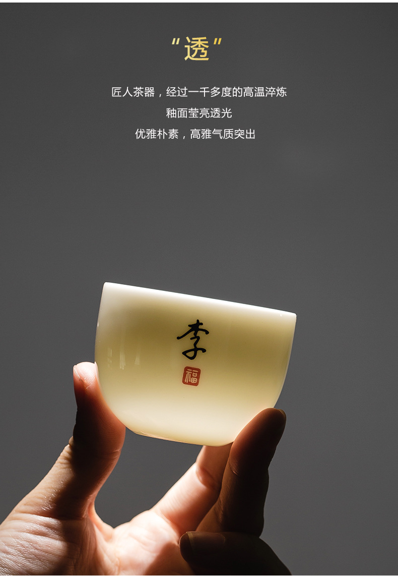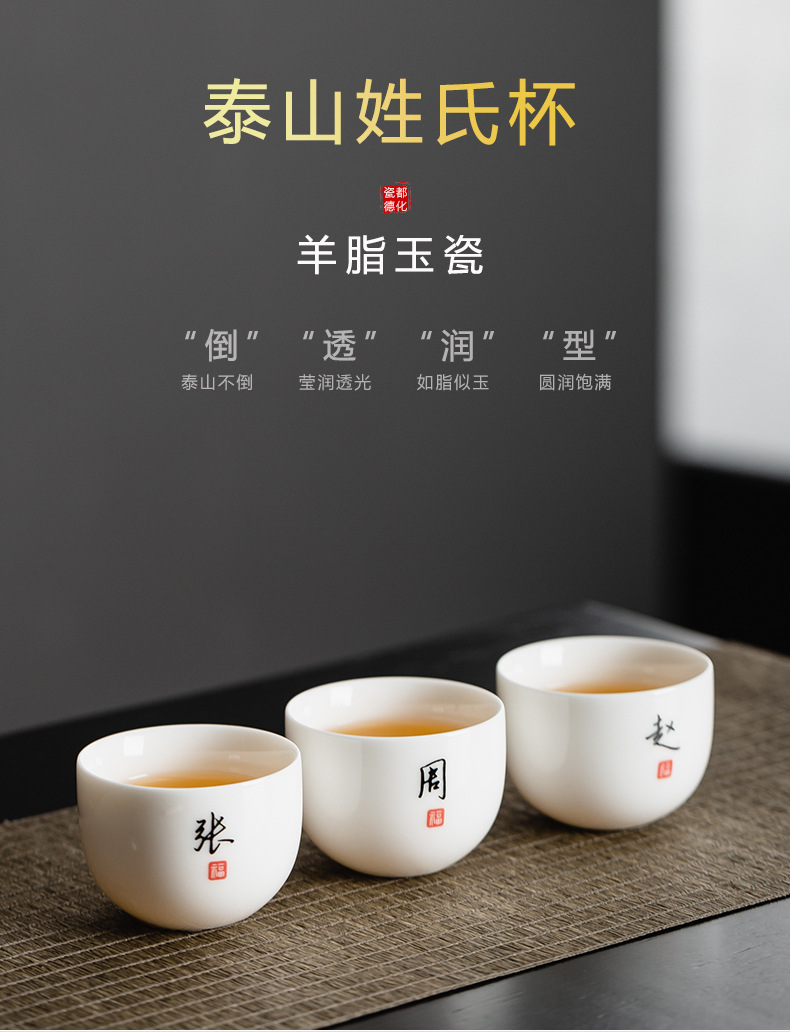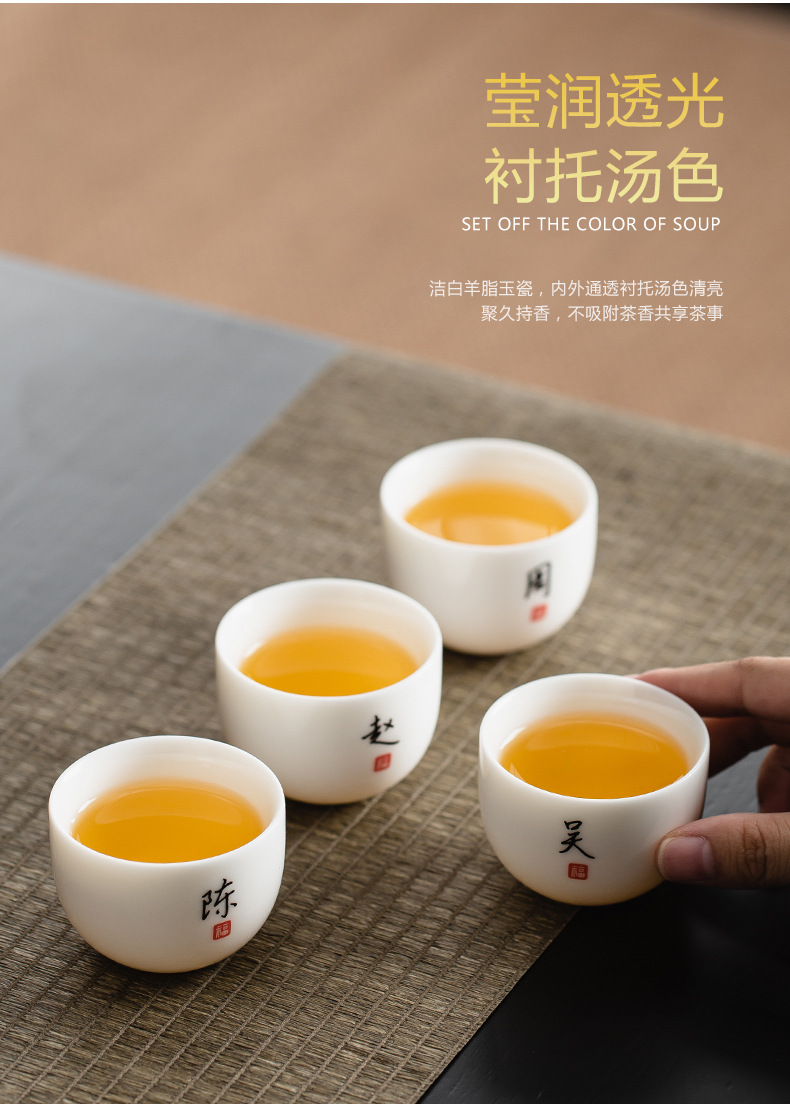 양 뚱뚱한 옥 흰색 도자기 백 가족 이름 차 컵 쿵푸 차 세트 세트 차 컵 사무실 홈 성격 마스터 컵스토어 가기