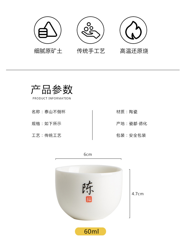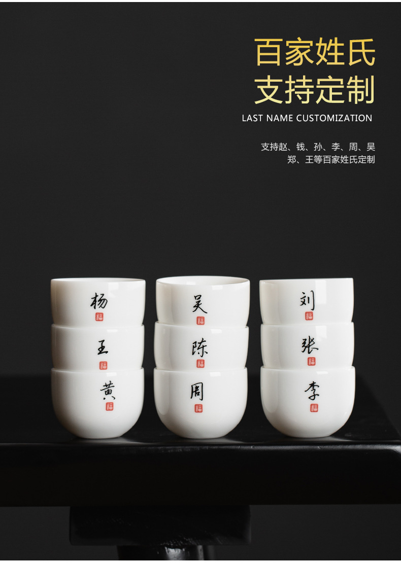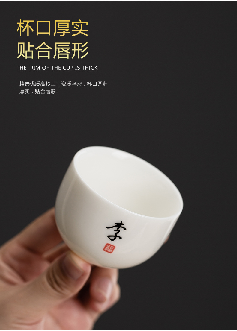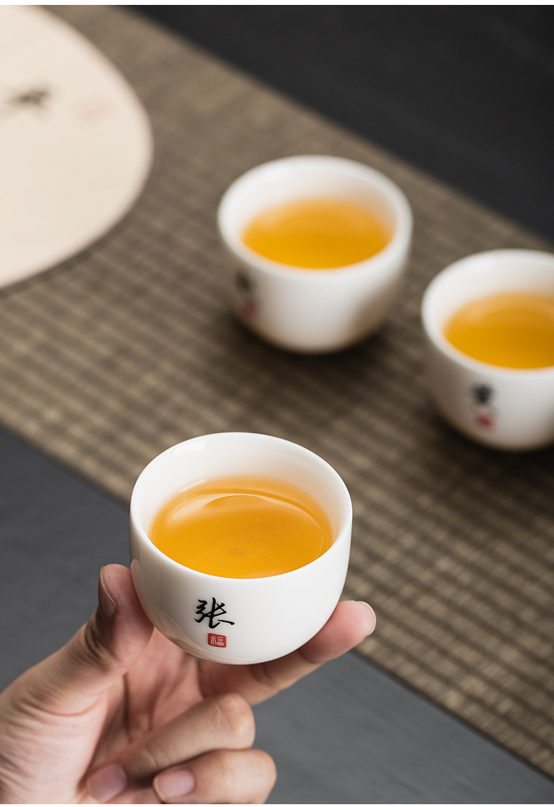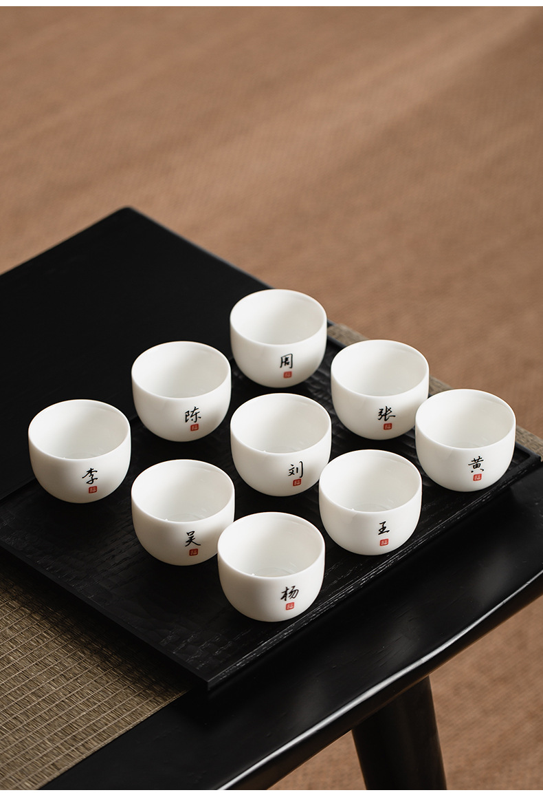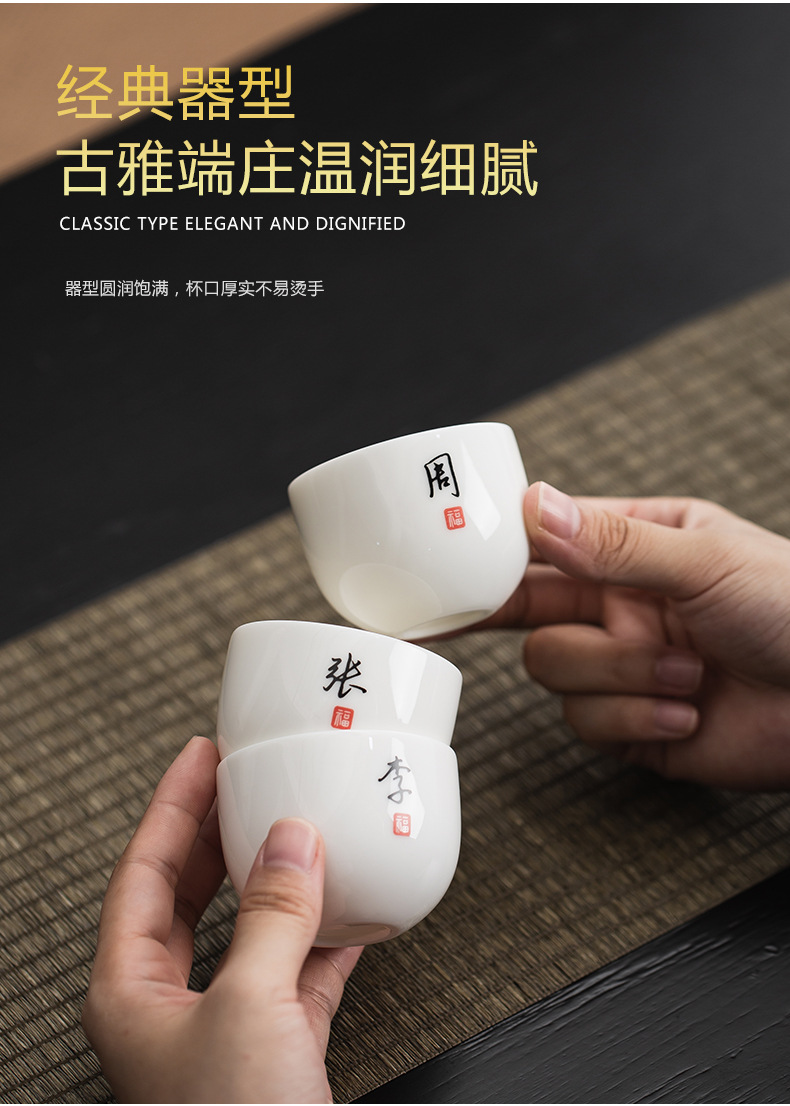 양 뚱뚱한 옥 흰색 도자기 백 가족 이름 차 컵 쿵푸 차 세트 세트 차 컵 사무실 홈 성격 마스터 컵