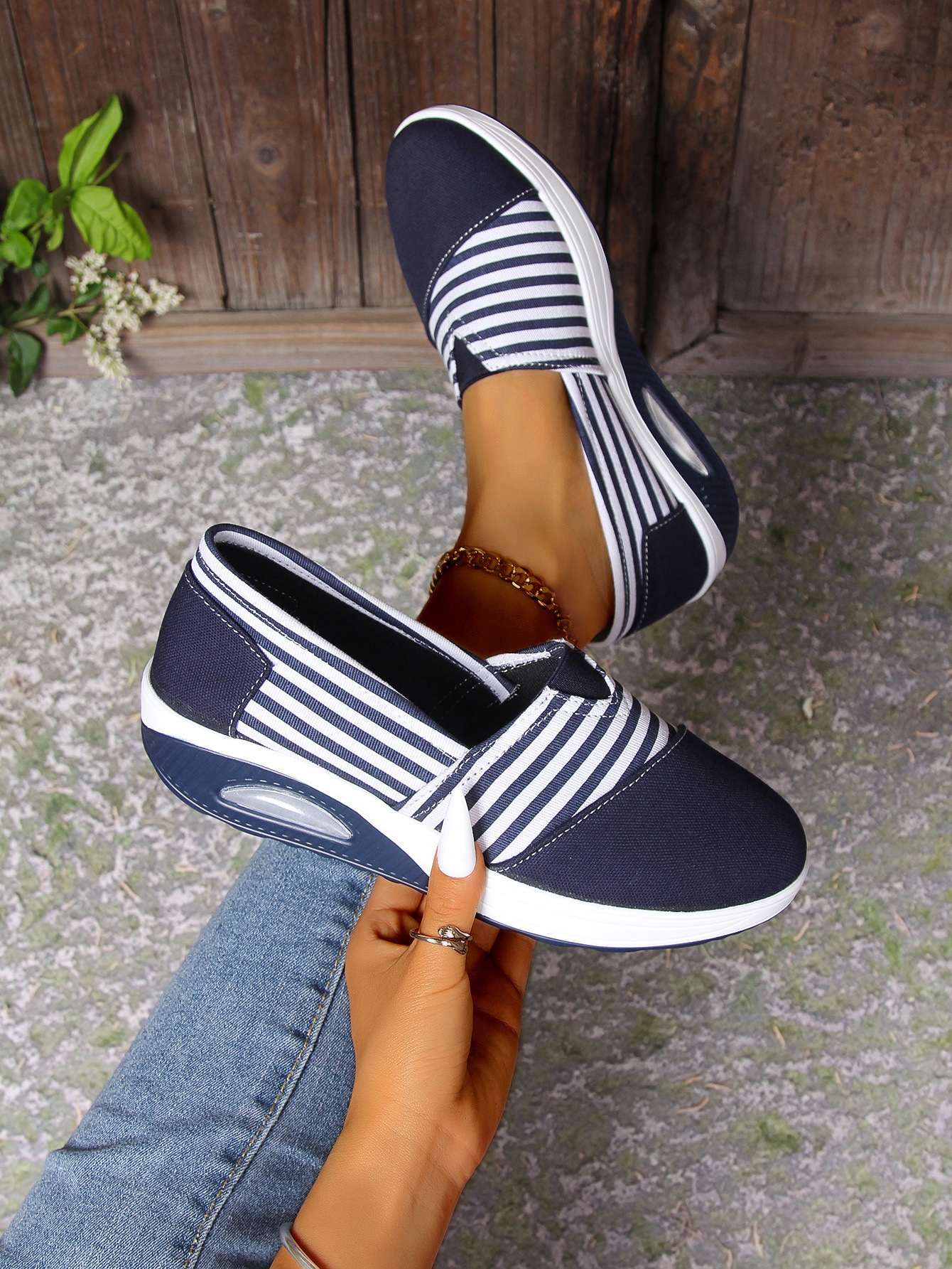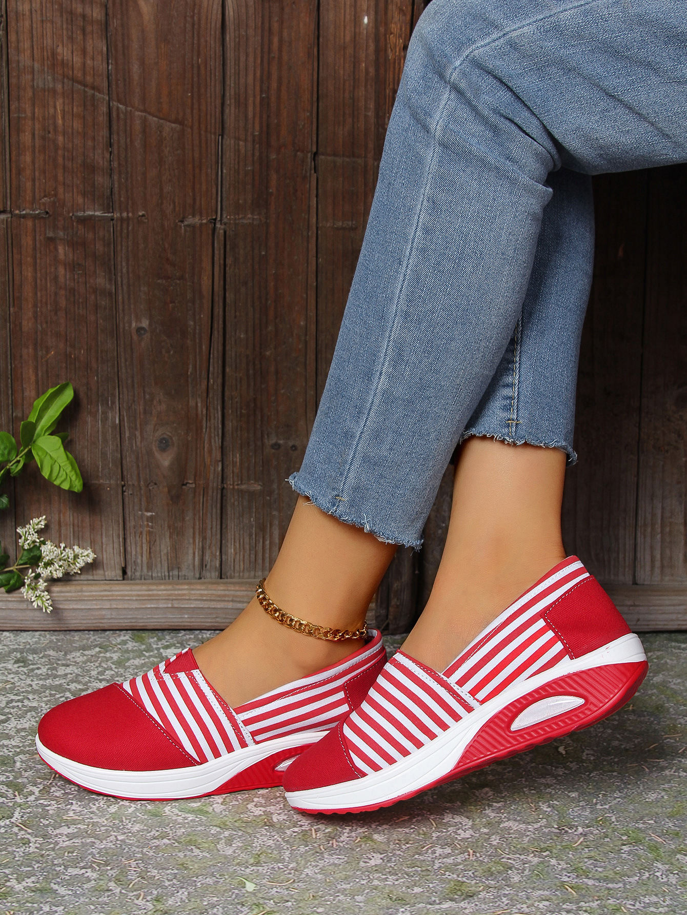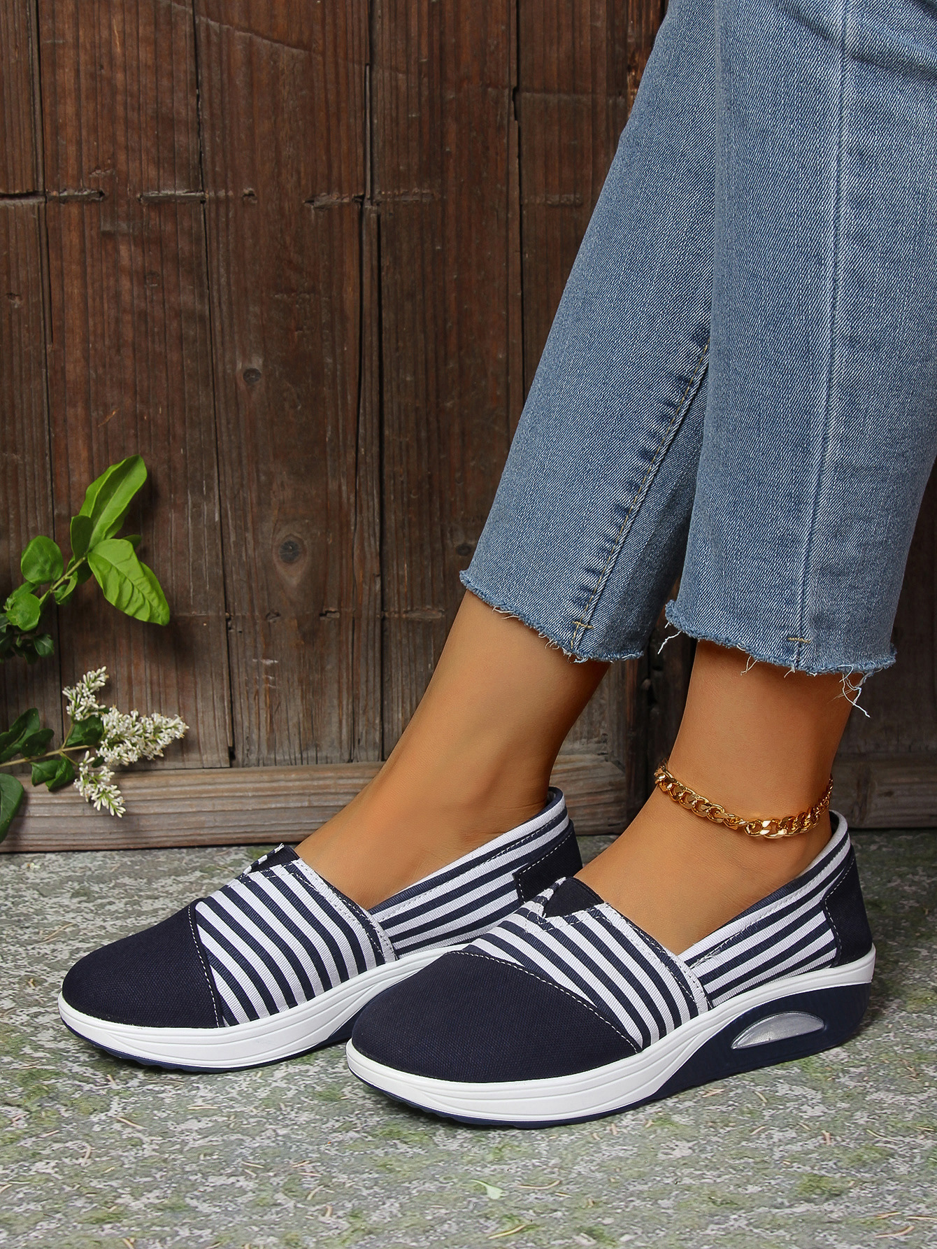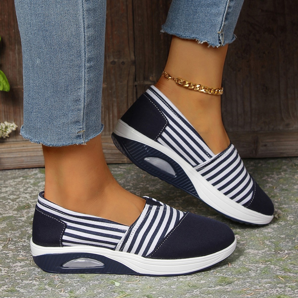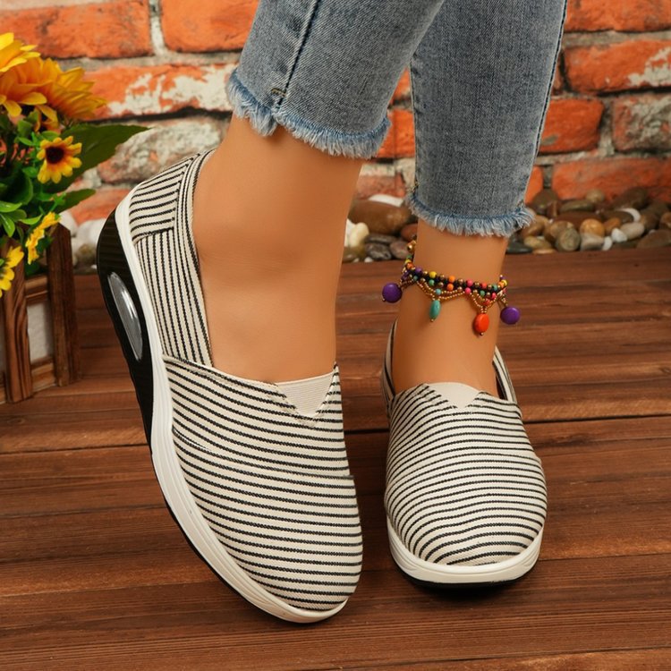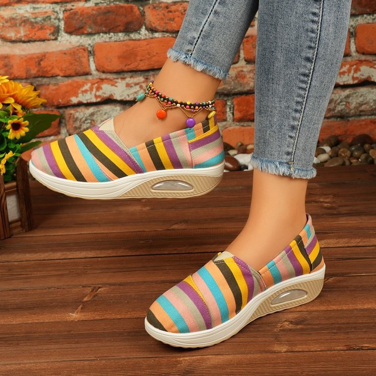 2024 년 여름과 가을 새로운 줄무늬 캔버스 신발 캐주얼 라운드 헤드 쉐이크 신발 편안한 어머니 신발 크로스 보더 플러스 사이즈 여성 신발