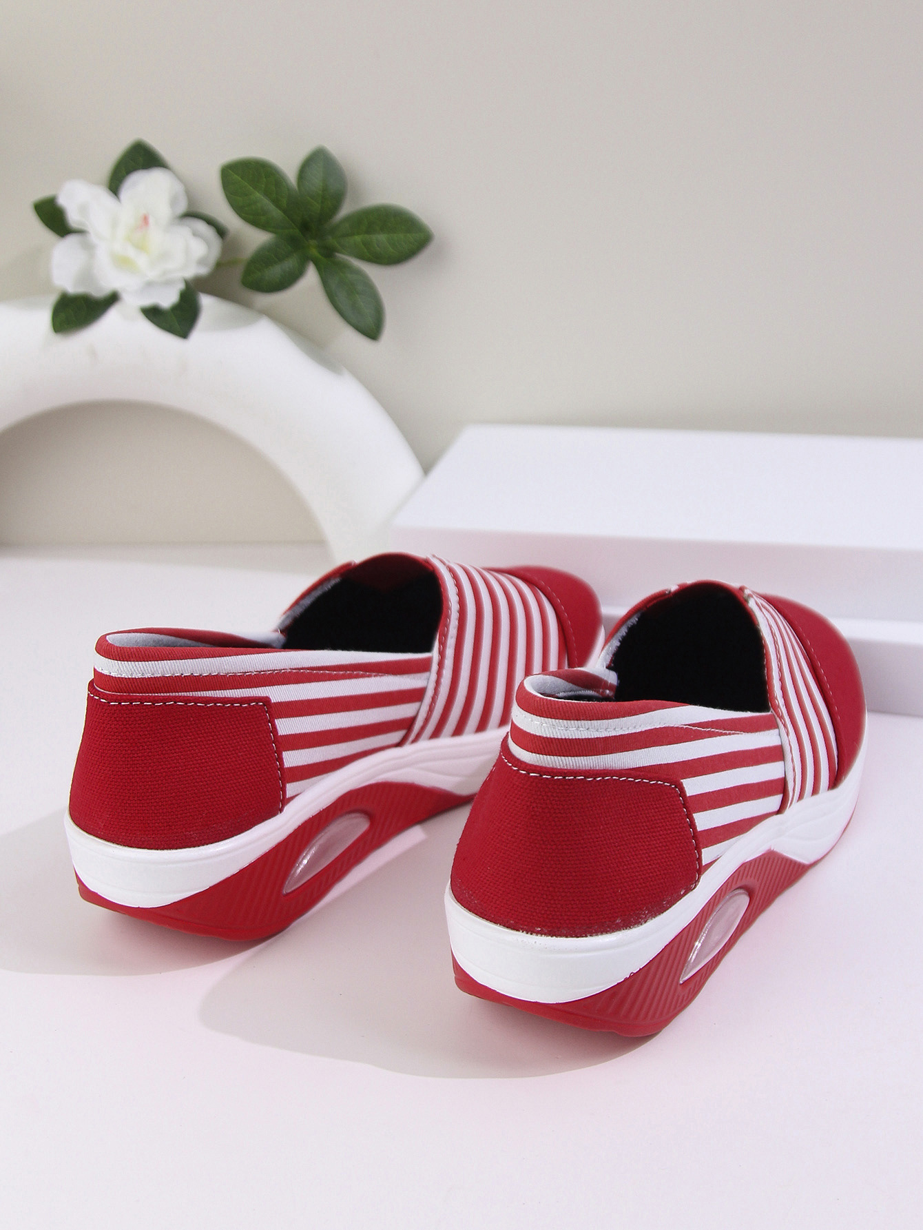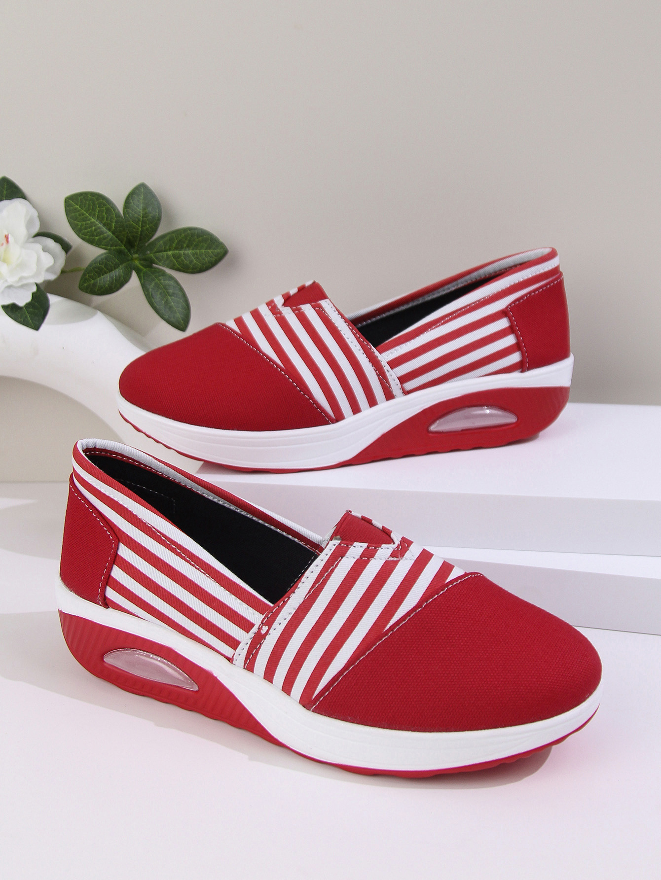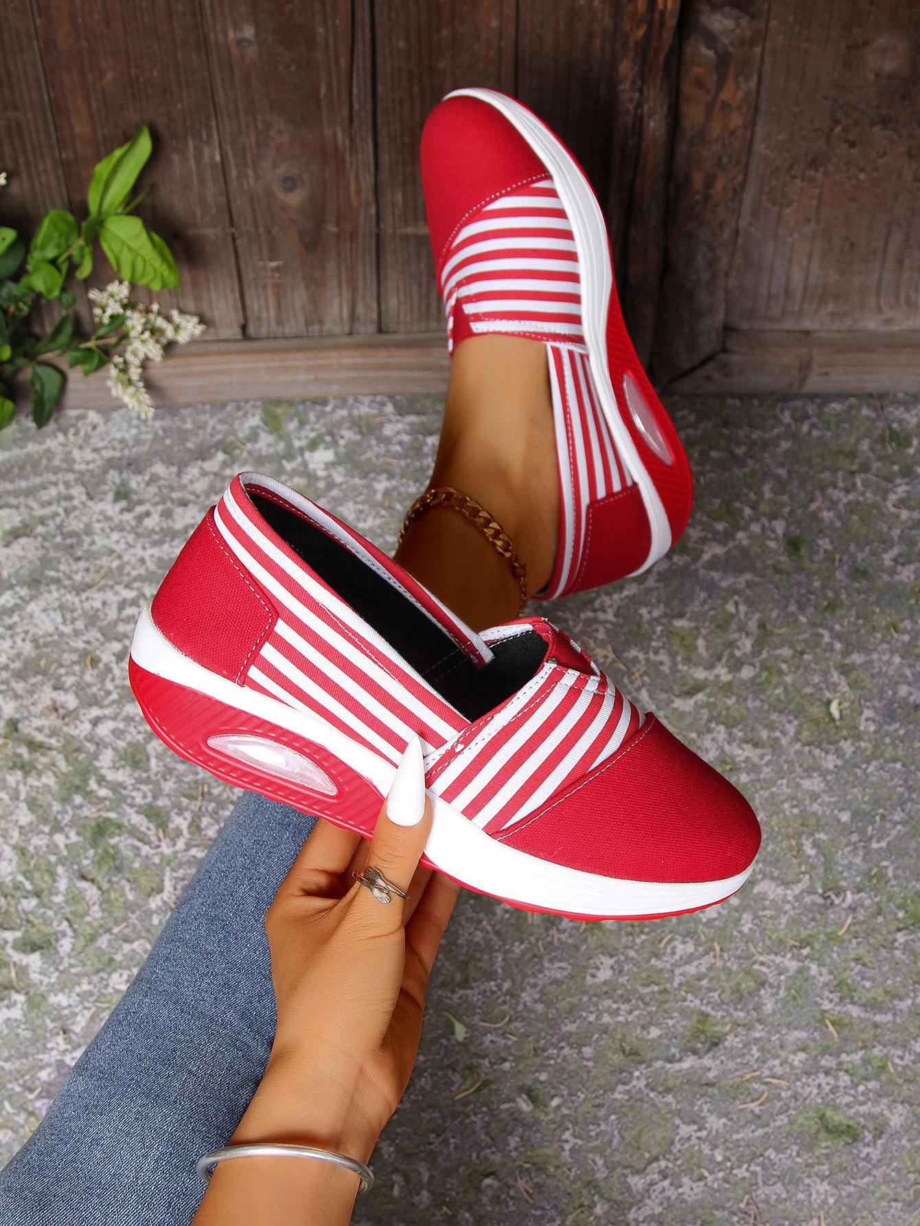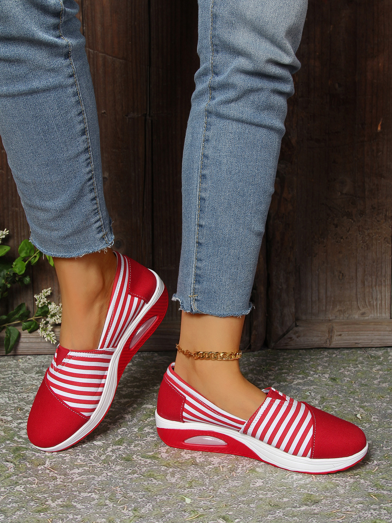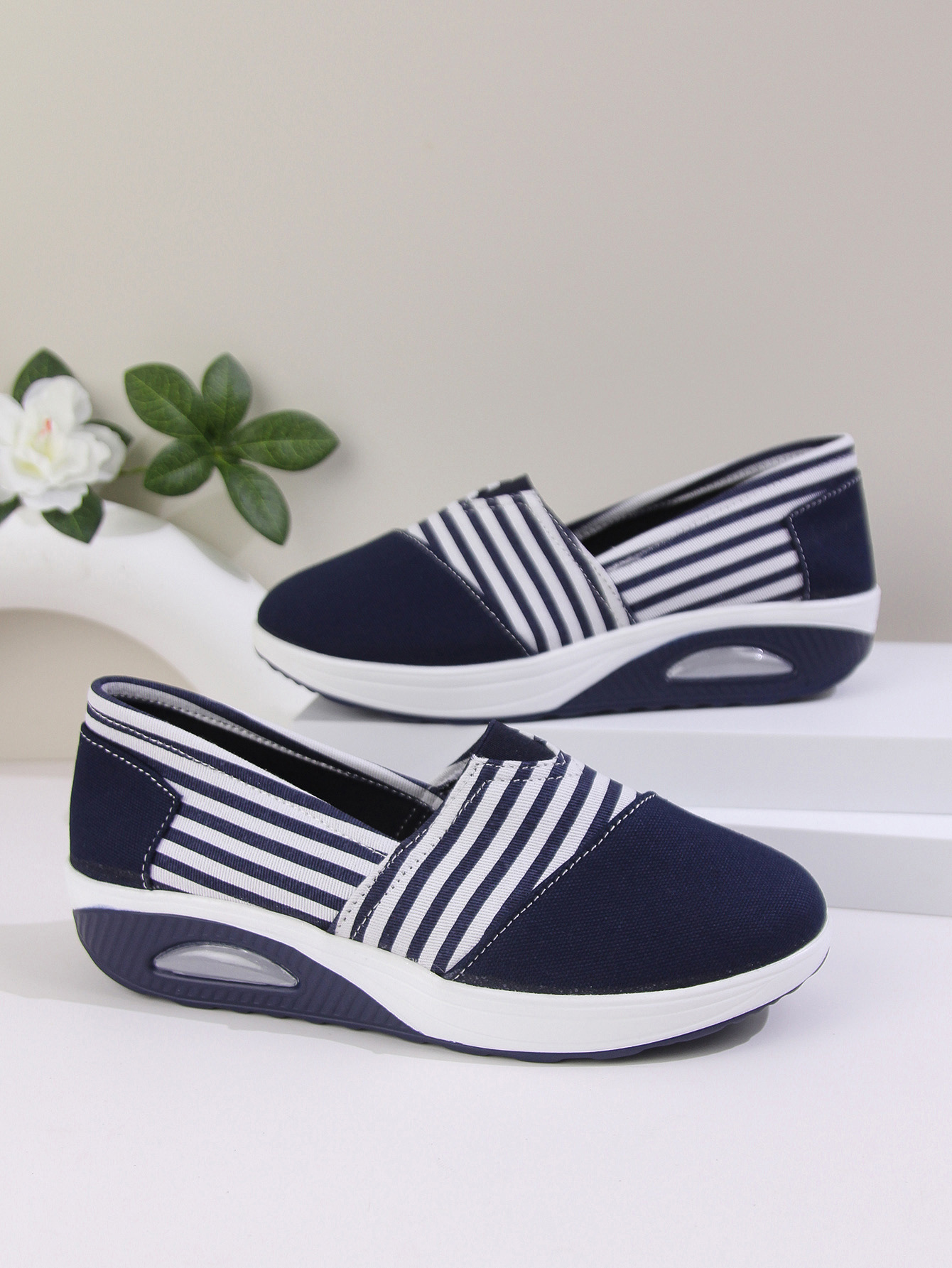 2024 년 여름과 가을 새로운 줄무늬 캔버스 신발 캐주얼 라운드 헤드 쉐이크 신발 편안한 어머니 신발 크로스 보더 플러스 사이즈 여성 신발