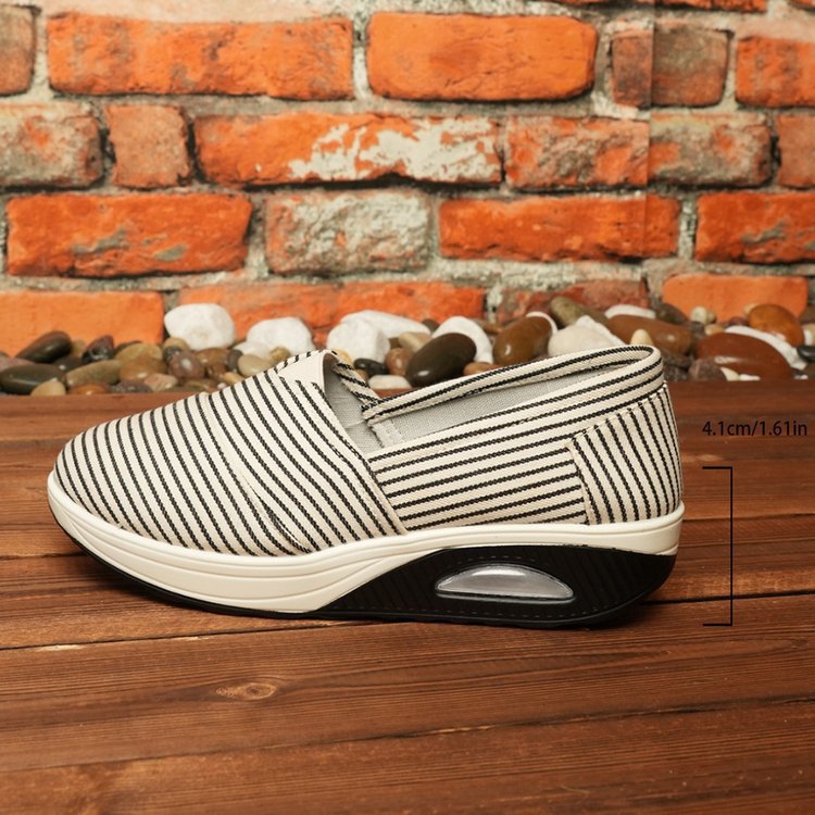2024 년 여름과 가을 새로운 줄무늬 캔버스 신발 캐주얼 라운드 헤드 쉐이크 신발 편안한 어머니 신발 크로스 보더 플러스 사이즈 여성 신발스토어 가기