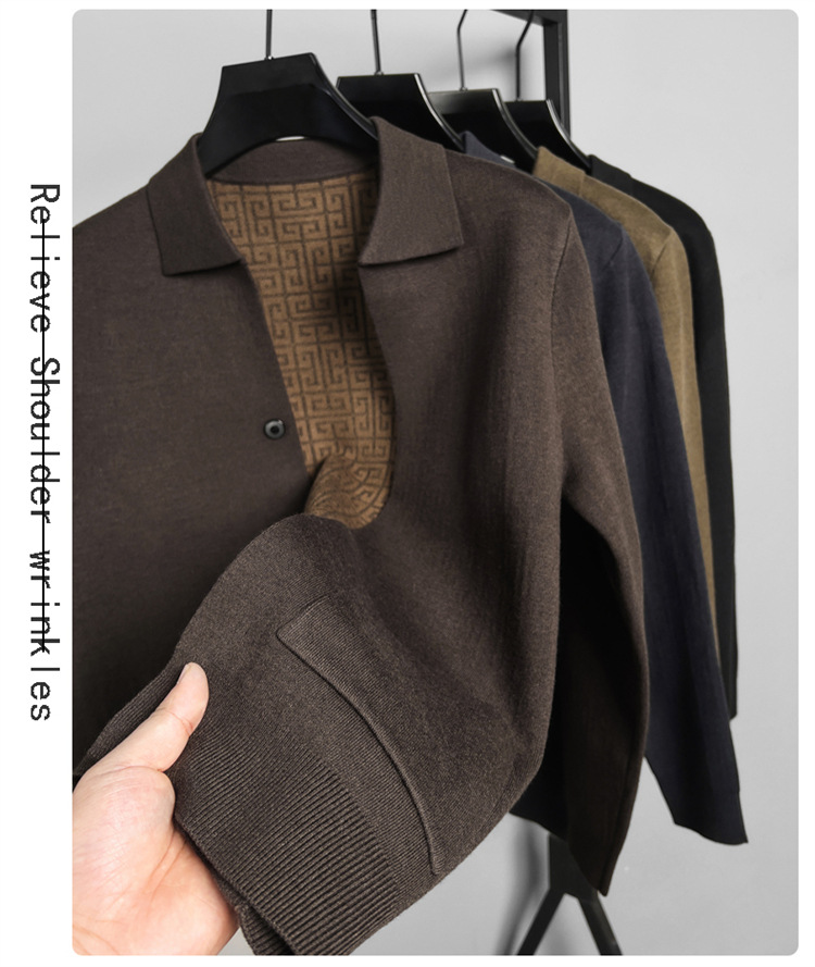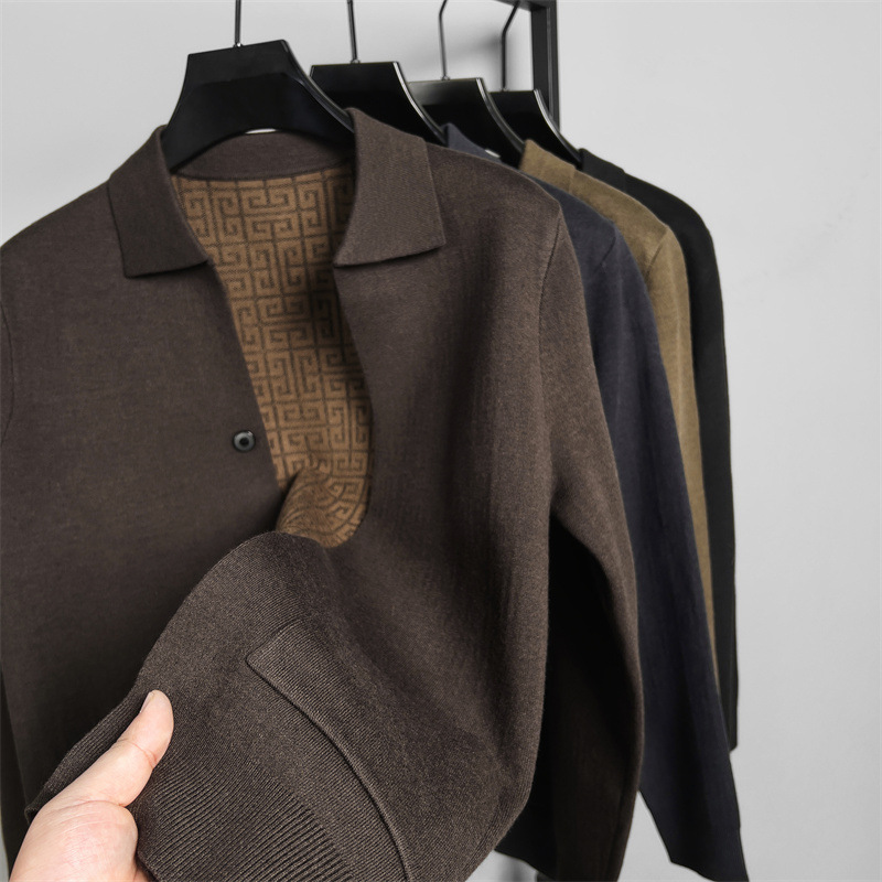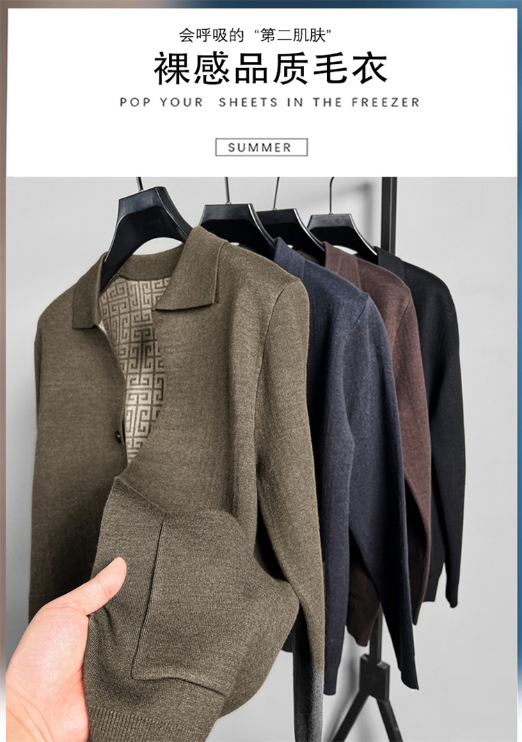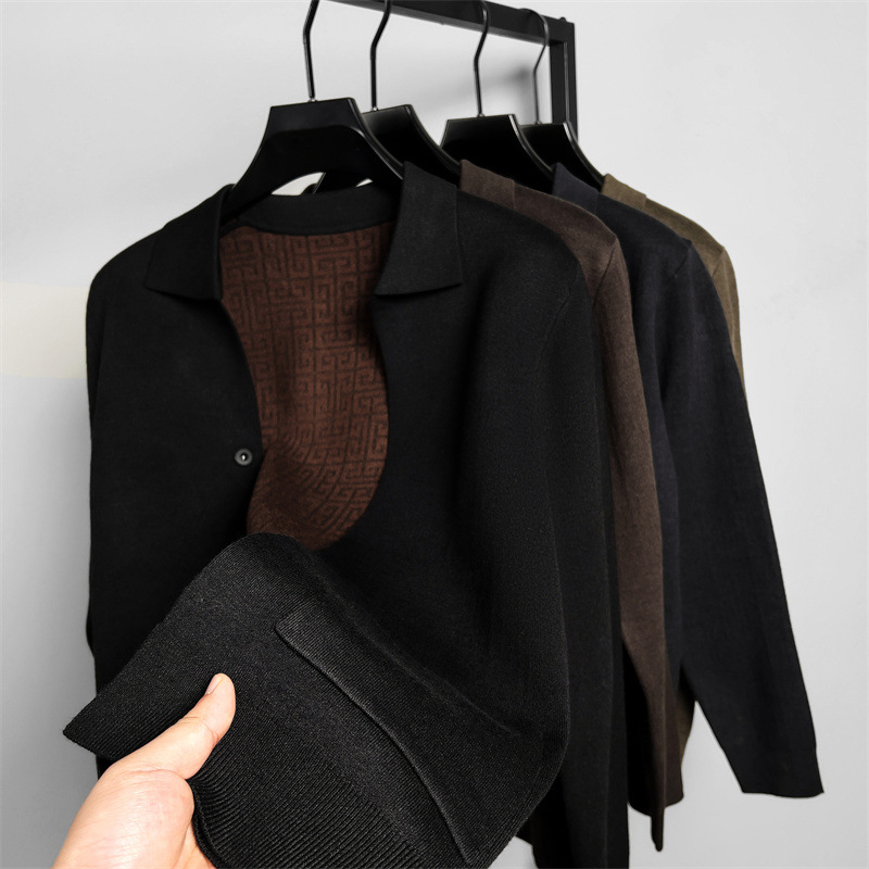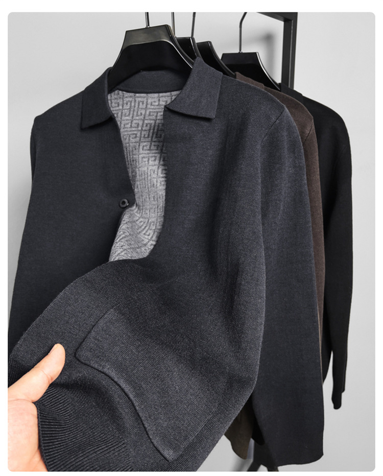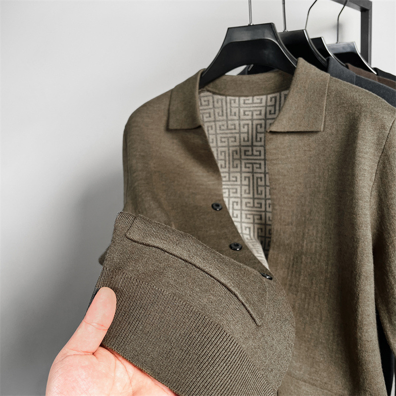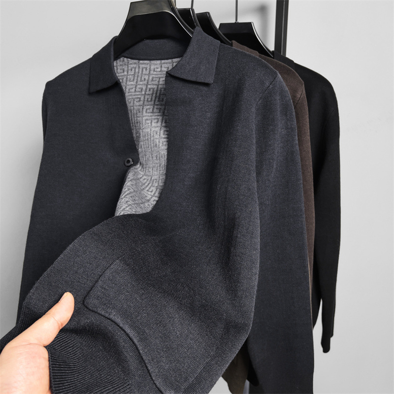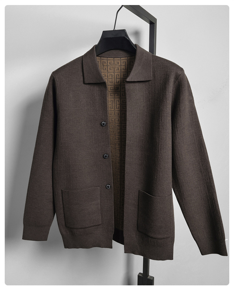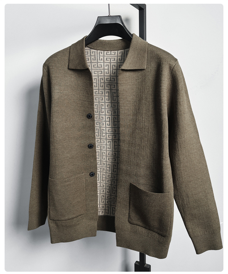 하이 엔드 새로운 가을과 겨울 옷깃 카디건 남성용 트렌디 한 포켓 단색 올 매치 코트 스웨터 패션 긴 소매
