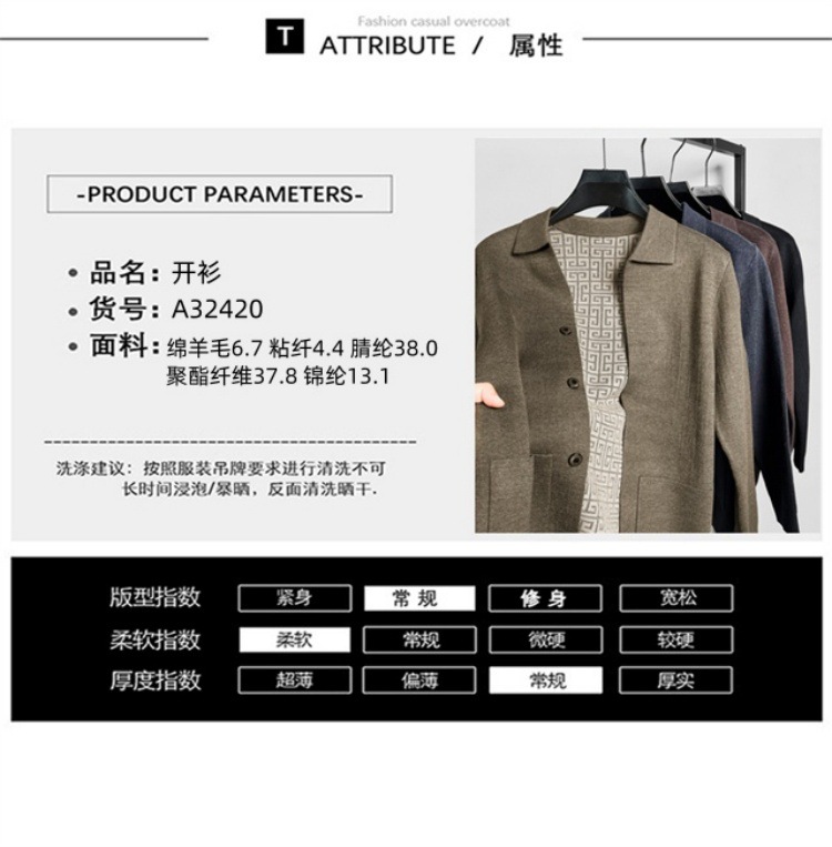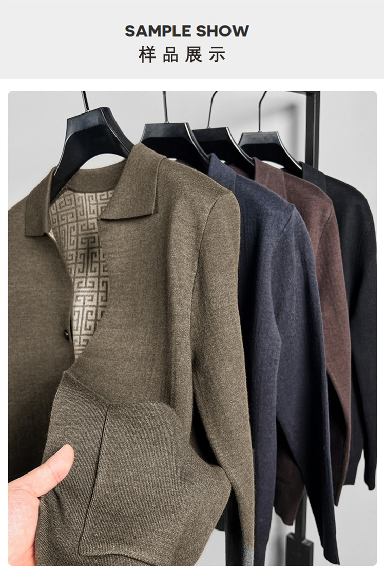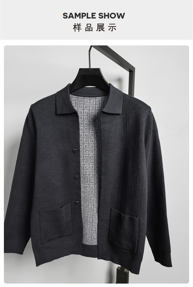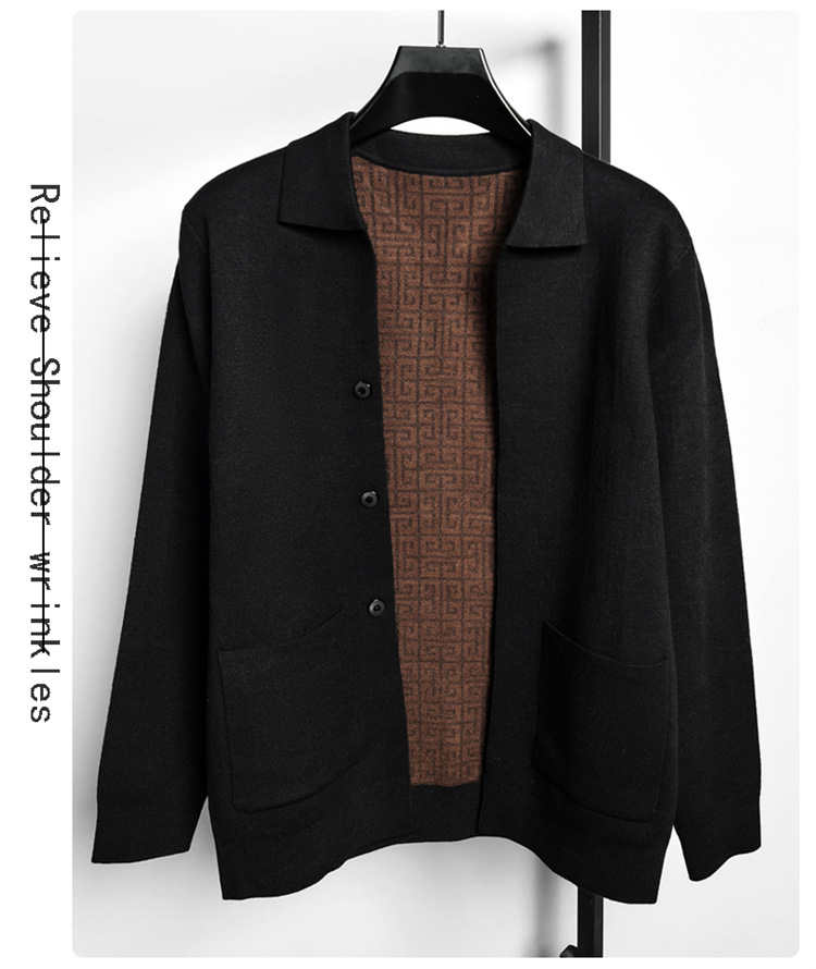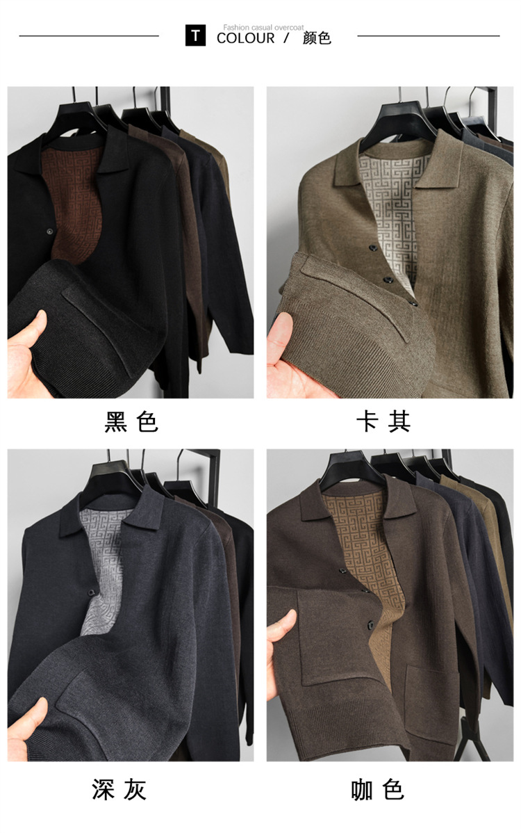 하이 엔드 새로운 가을과 겨울 옷깃 카디건 남성용 트렌디 한 포켓 단색 올 매치 코트 스웨터 패션 긴 소매스토어 가기