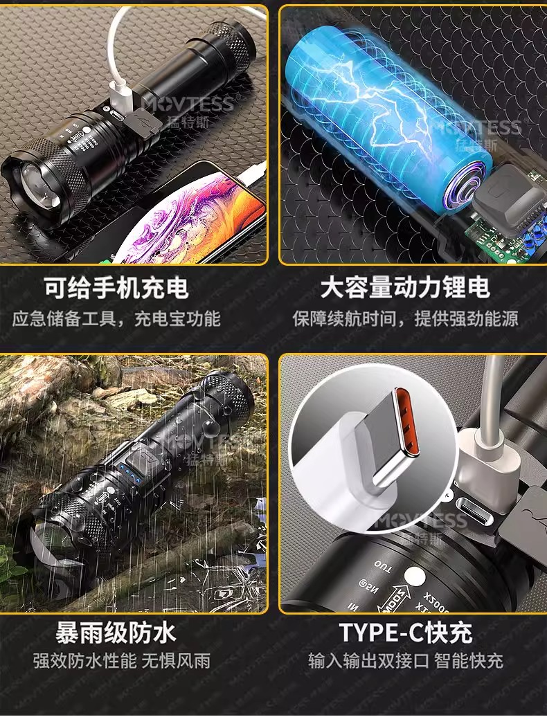 손전등 강한 빛 장거리 긴 배터리 수명 충전식 휴대용 초고휘도 소형 손전등 배터리 야외 밝은 작업 조명스토어 가기