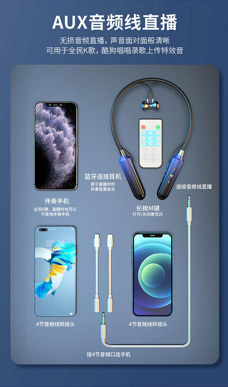 새로운 5.1, 귀 반환 다기능 라이브 K-노래 블루투스 헤드셋 교수형 블루투스 무선 올인원 개인 모델 헤드셋