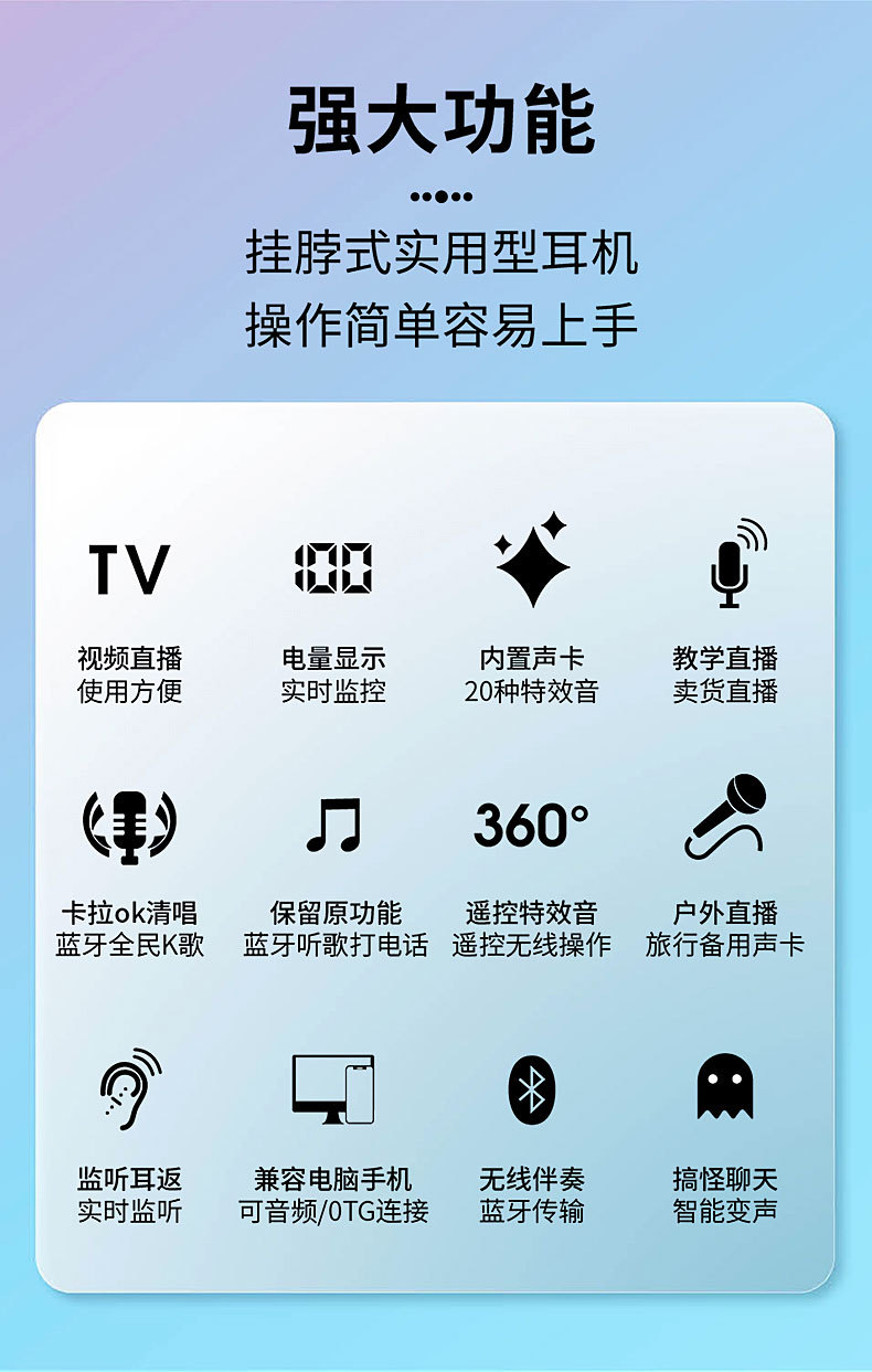 새로운 5.1, 귀 반환 다기능 라이브 K-노래 블루투스 헤드셋 교수형 블루투스 무선 올인원 개인 모델 헤드셋스토어 가기